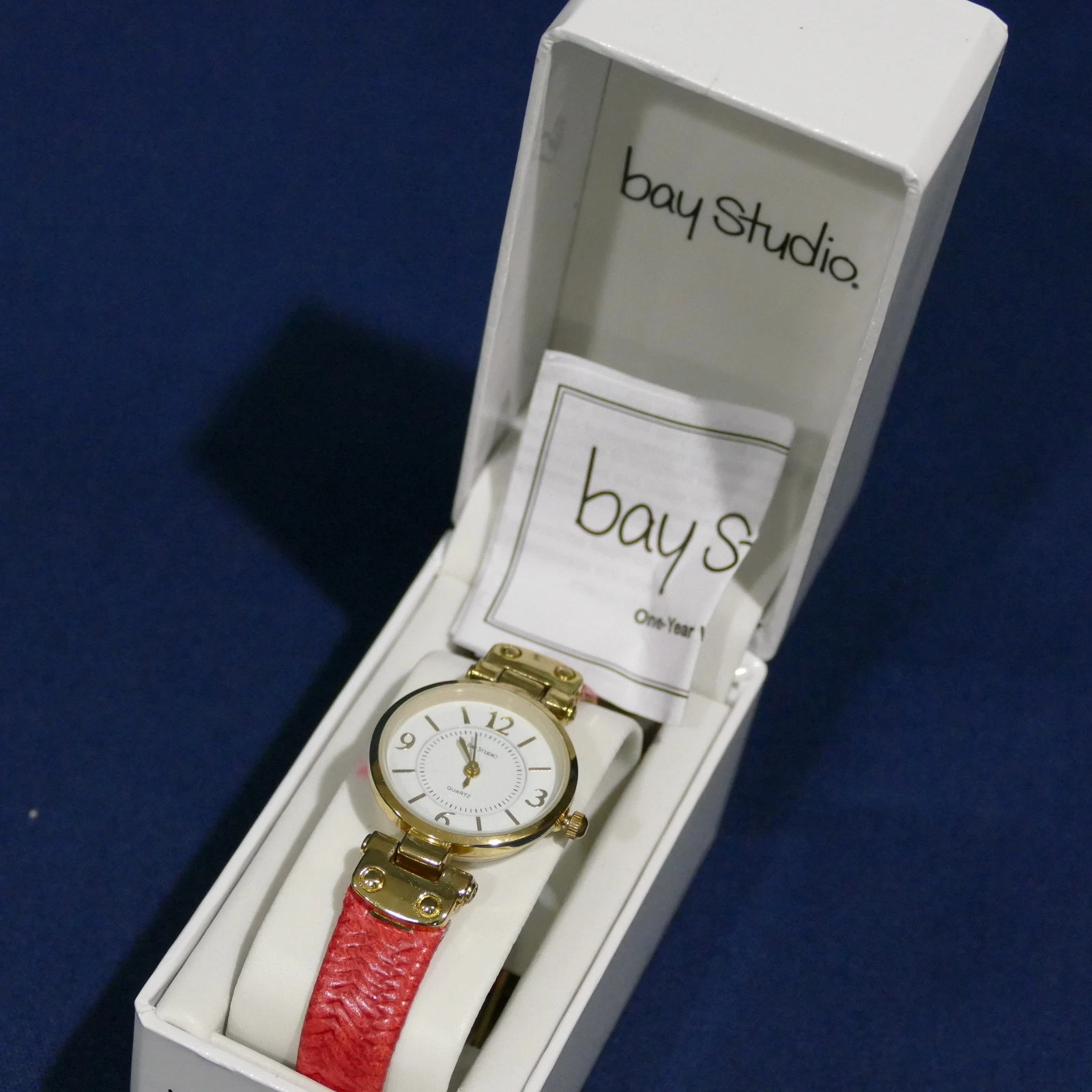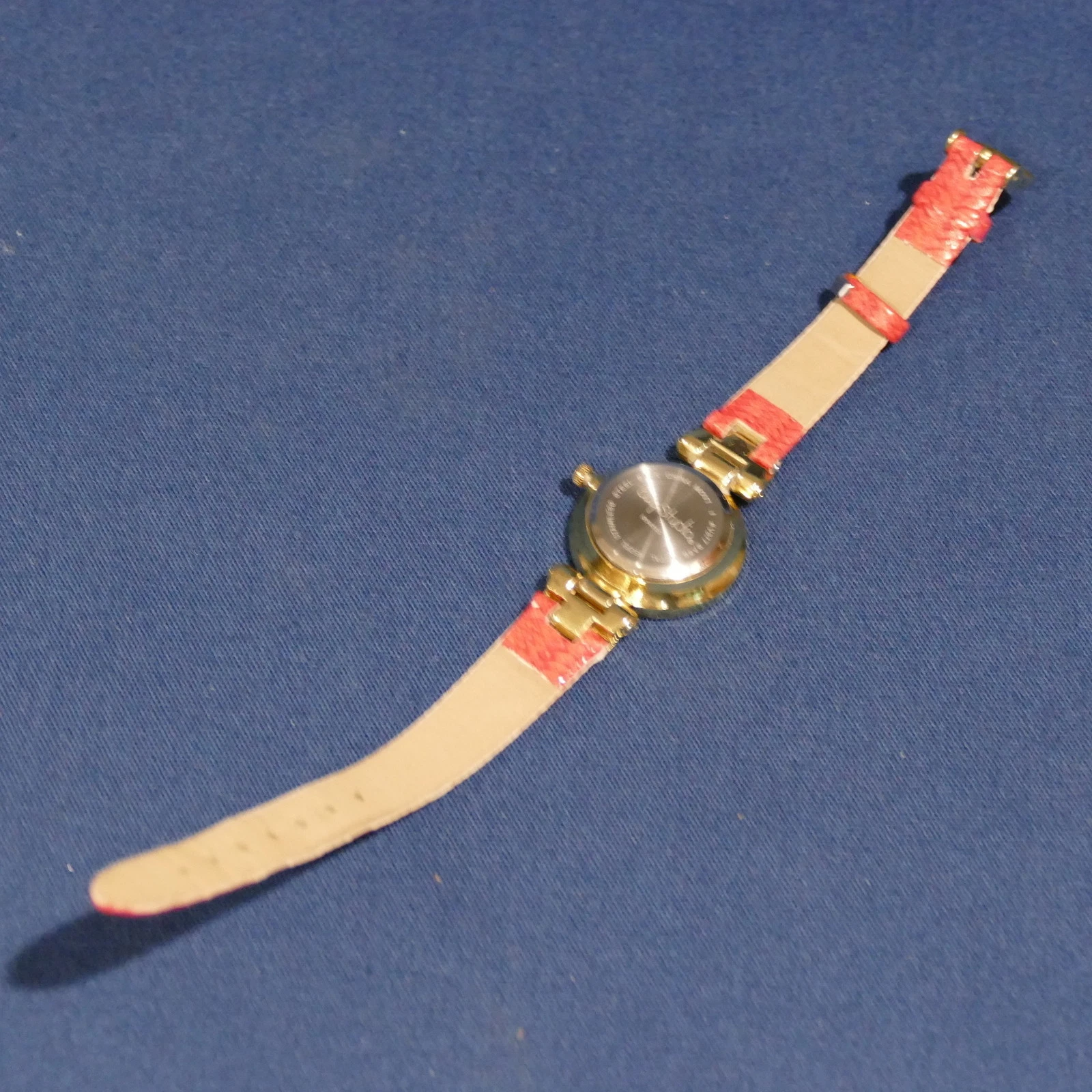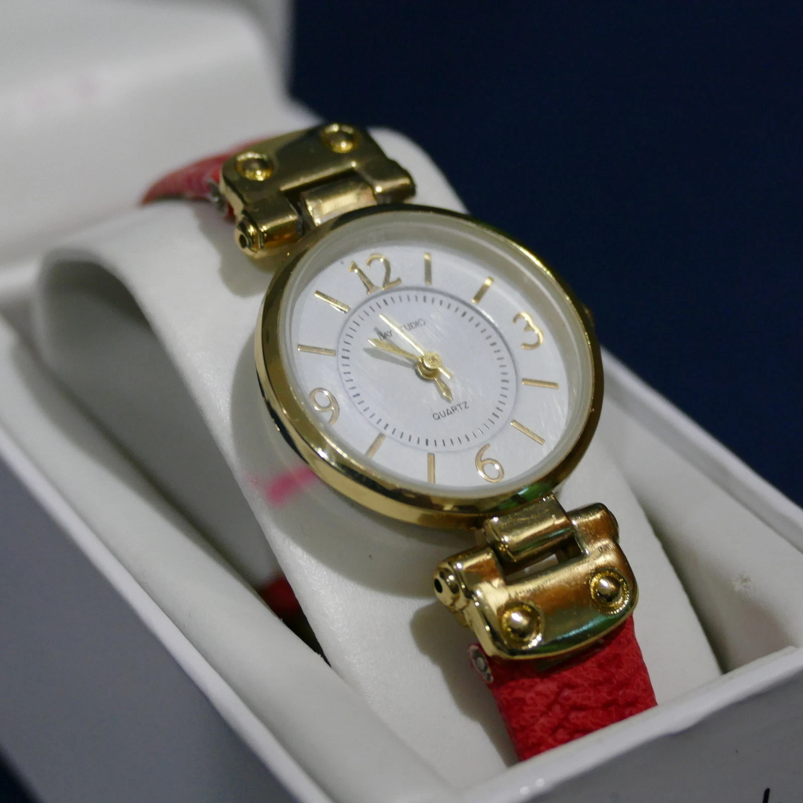 Ladies Bay Studio Quartz Analogue Wrist Watch ~ Red Band Gold Tone