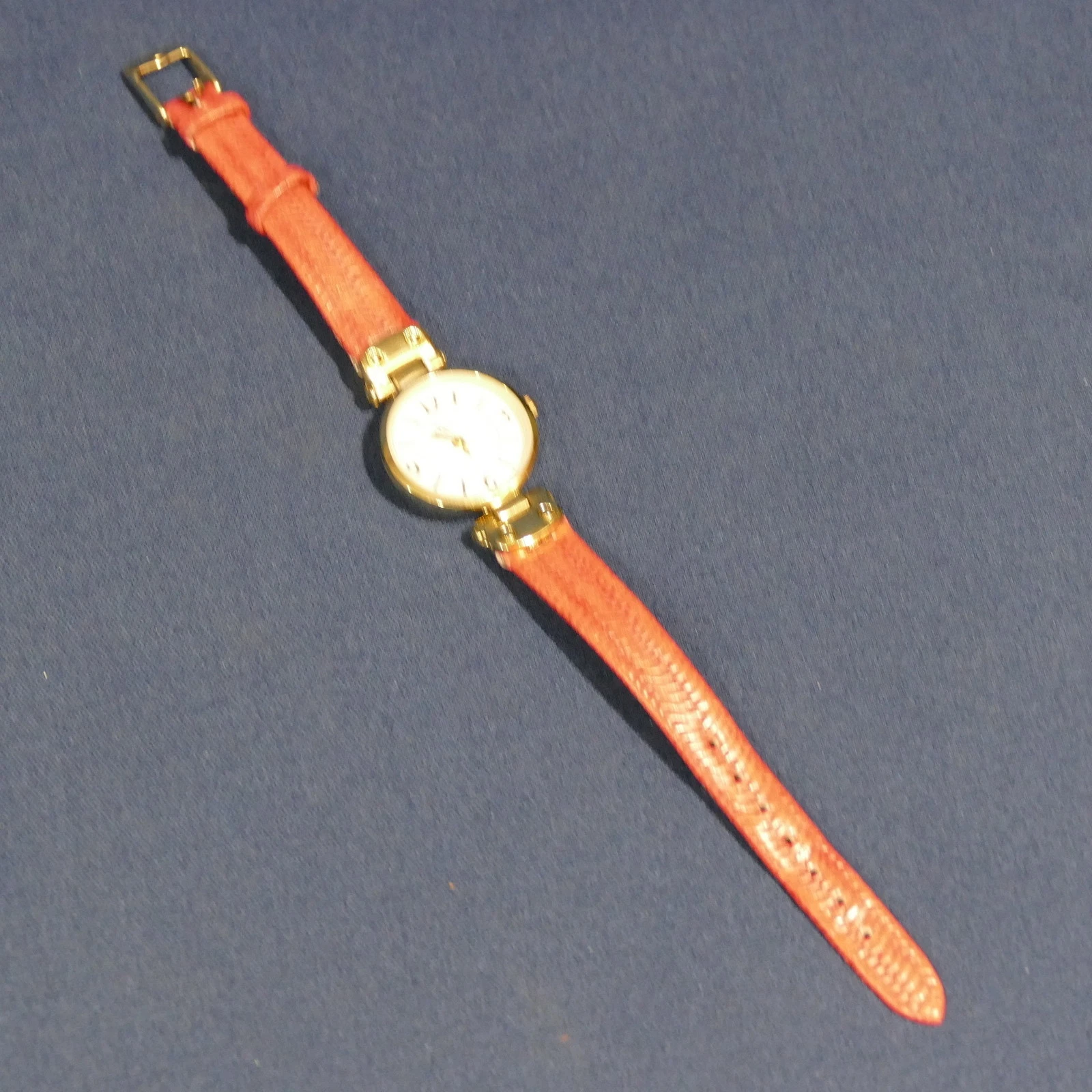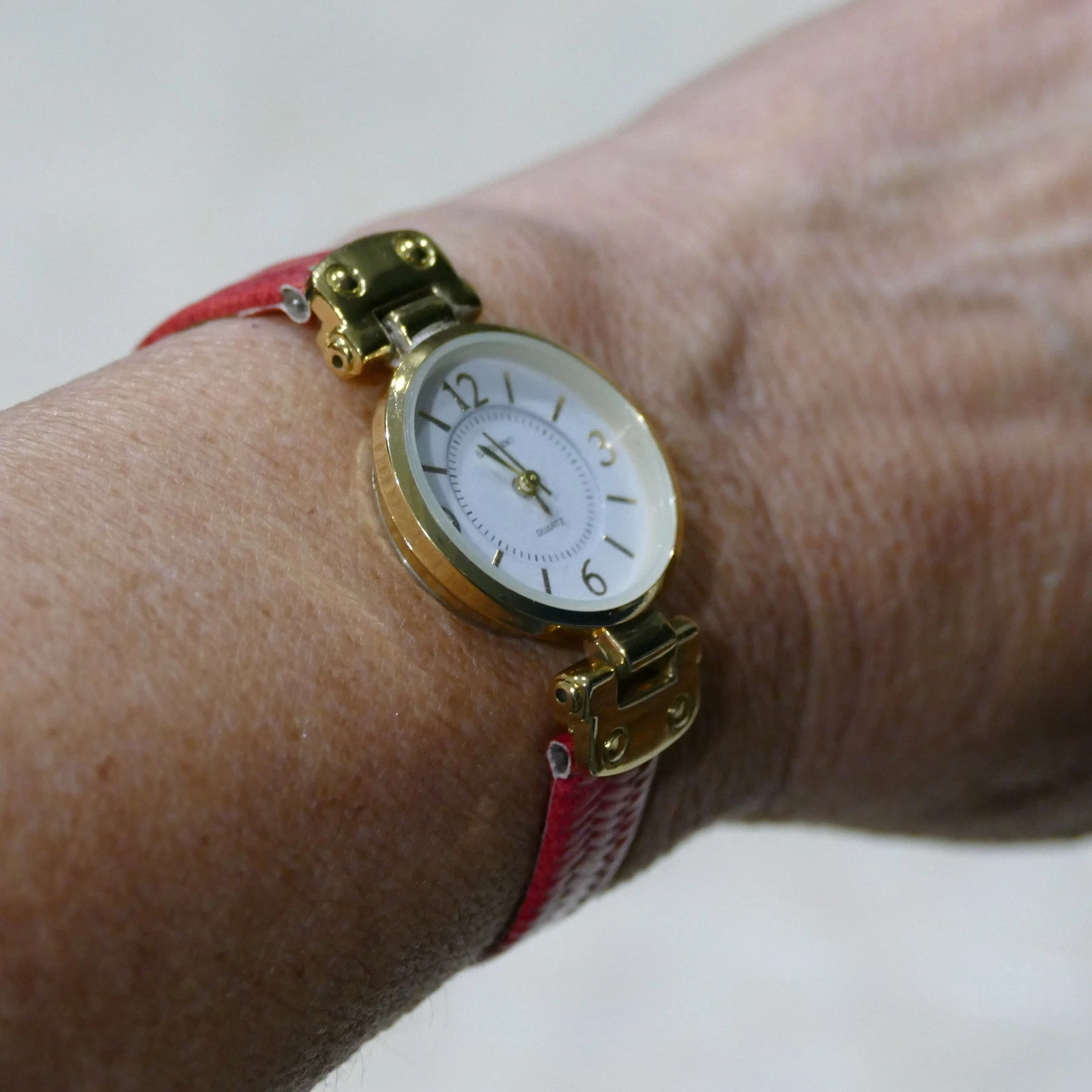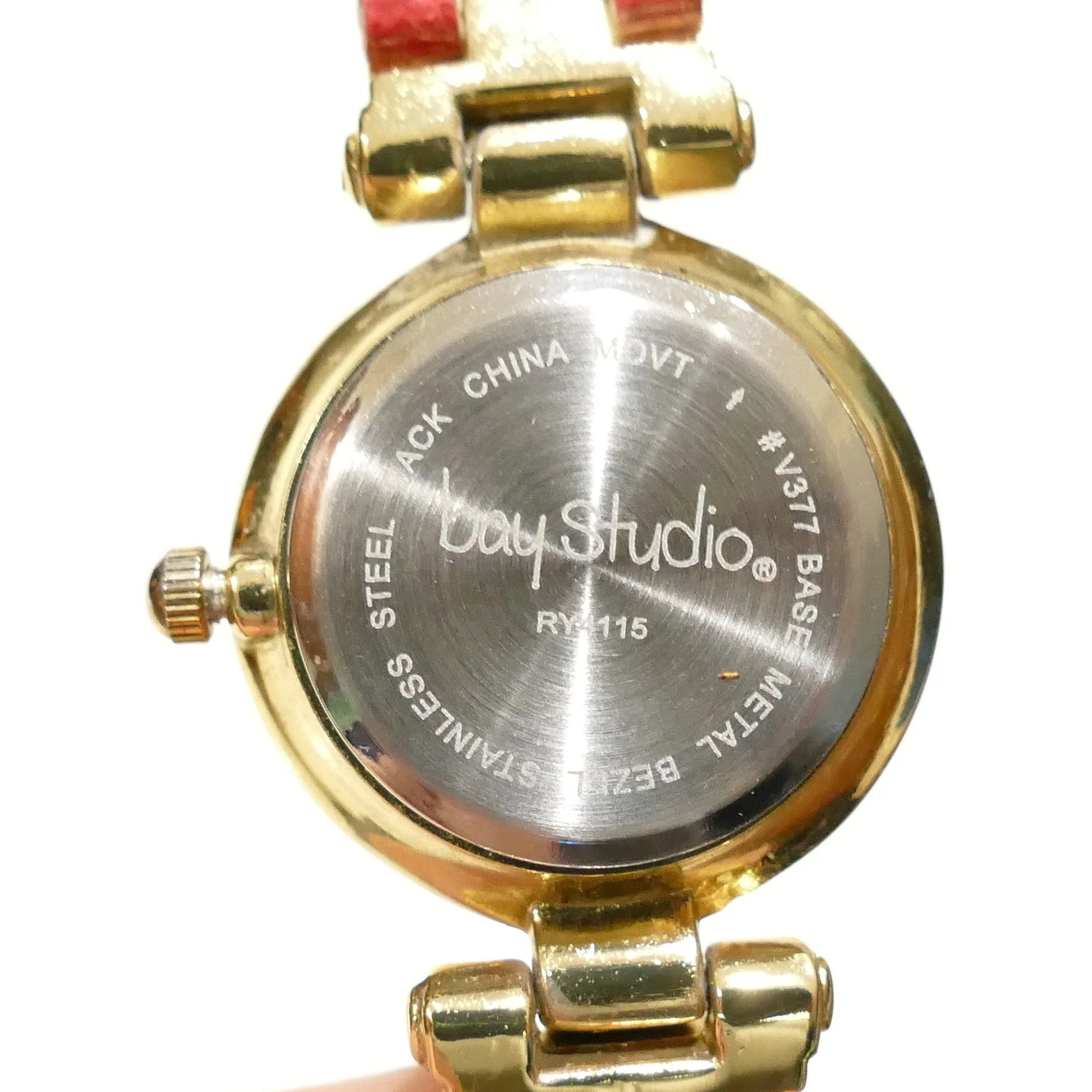 Ladies Bay Studio Quartz Analogue Wrist Watch ~ Red Band Gold Tone