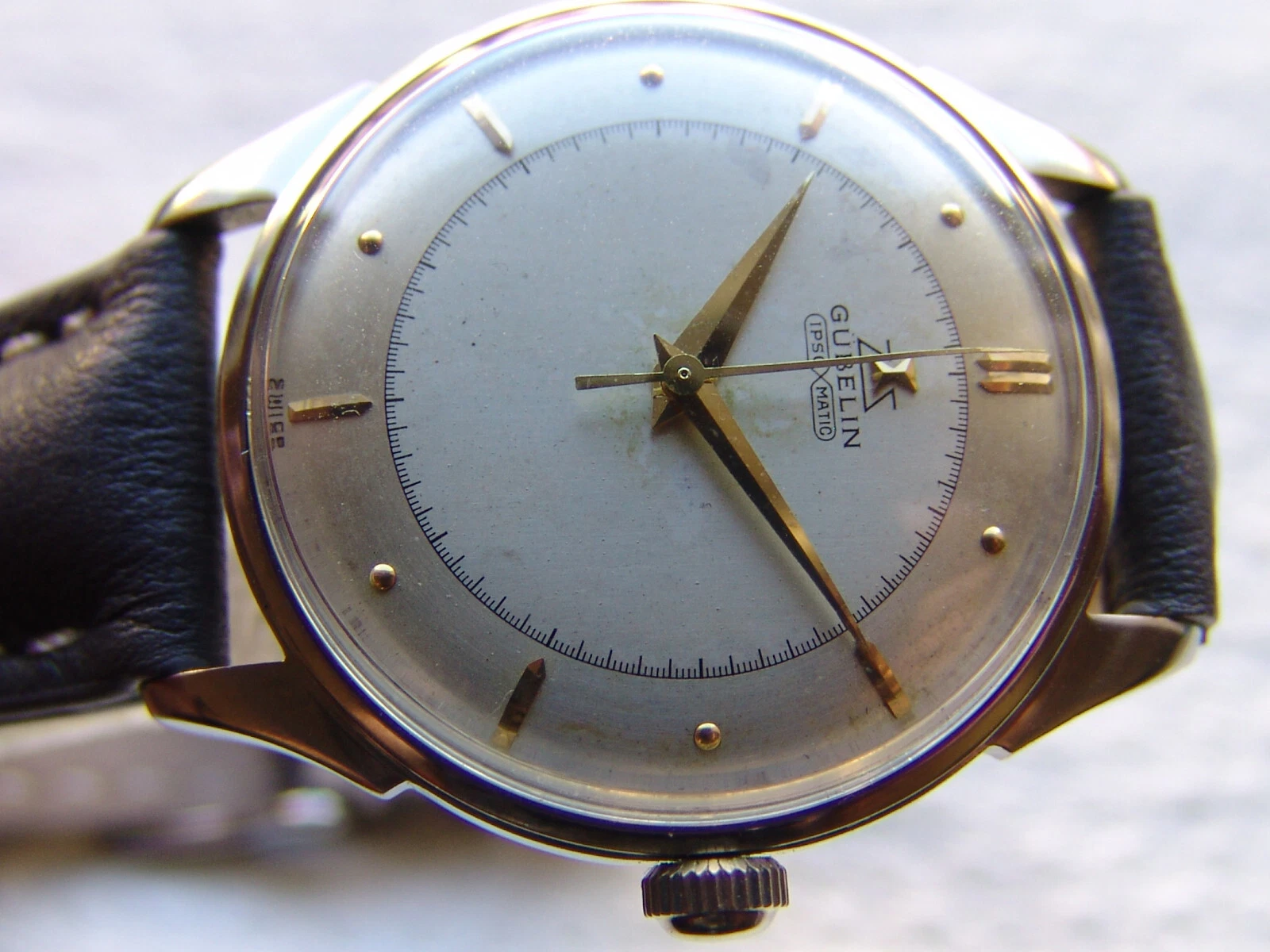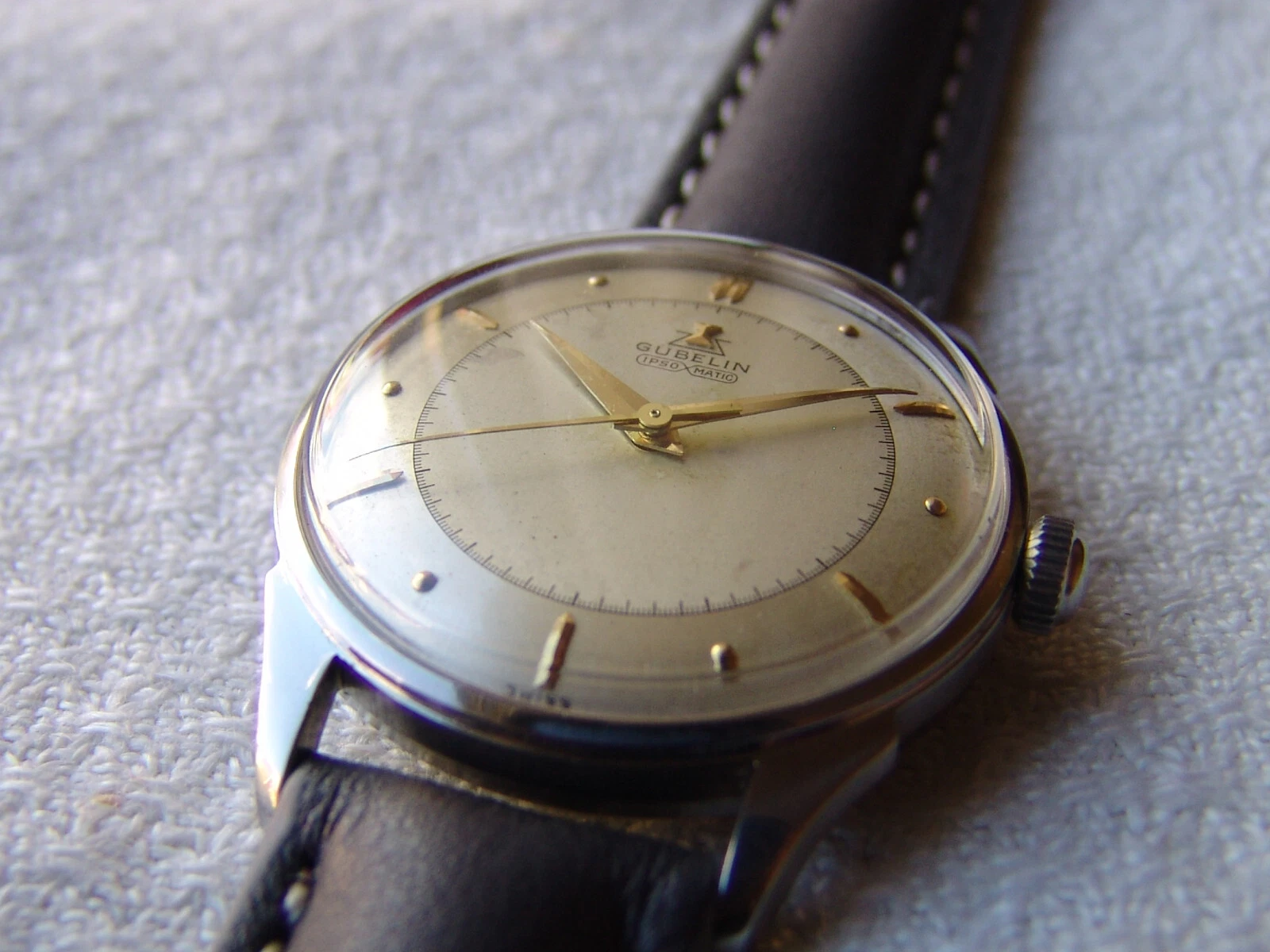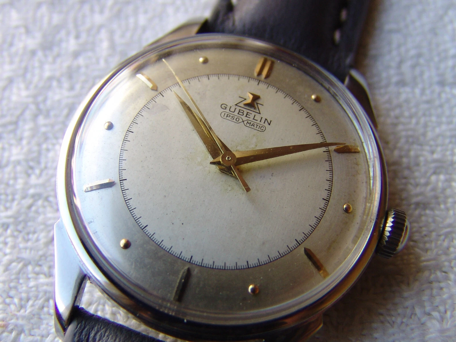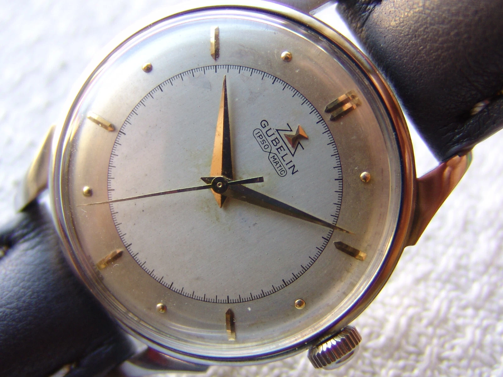 VINTAGE 34 mm WWII ERA men's GUBELIN IPSO MATIC steel WRISTWATCH GOOD CONDITION