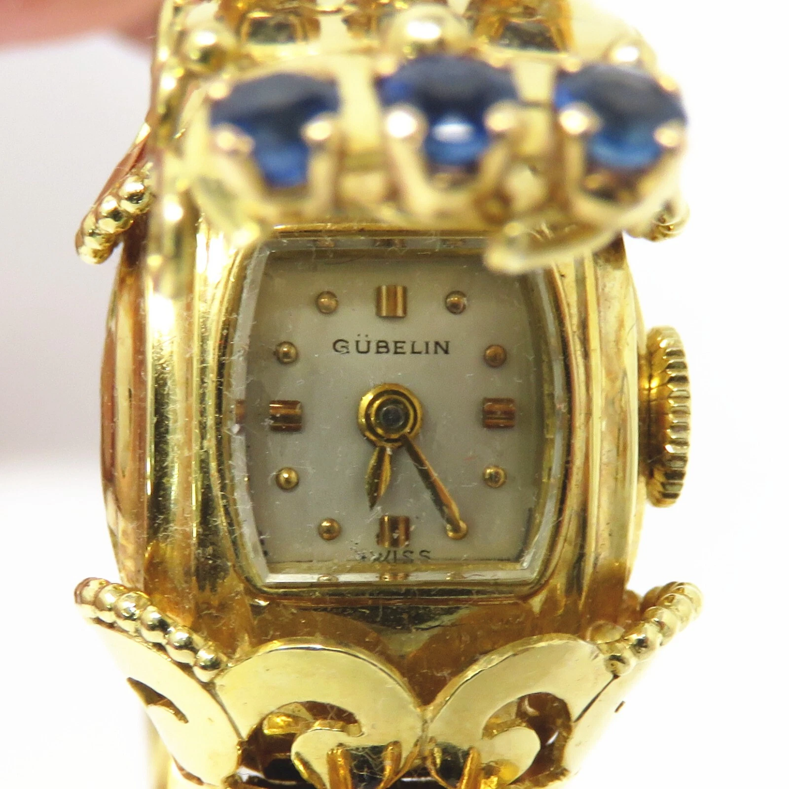 NYJEWEL Gubelin 18k Yellow Gold 1.8ct Natural Sapphire Wind Up Watch Bracelet 6"