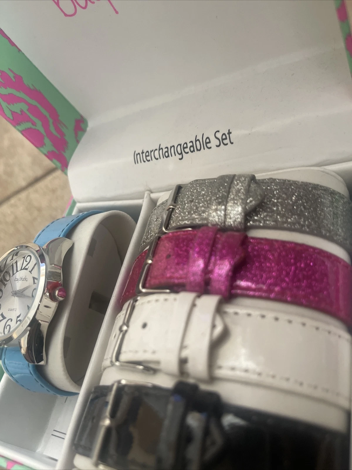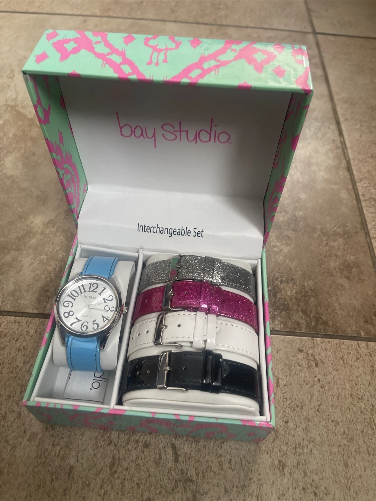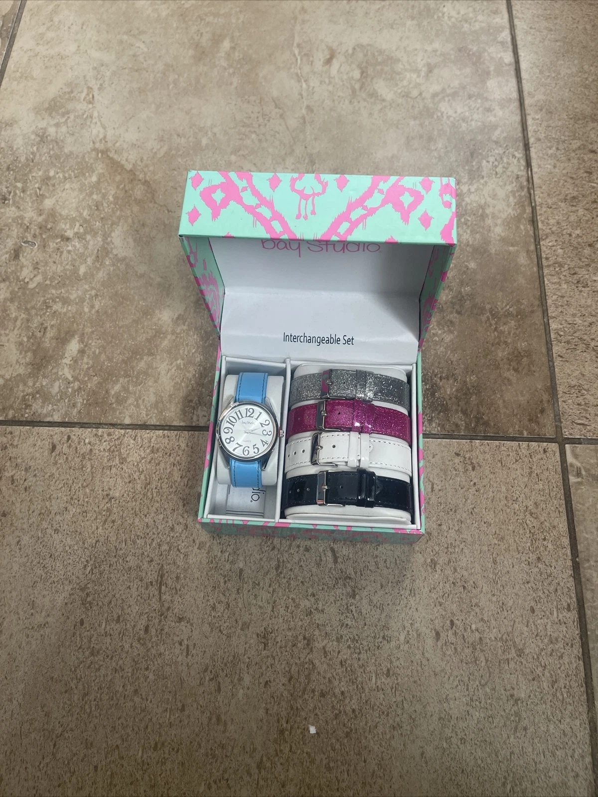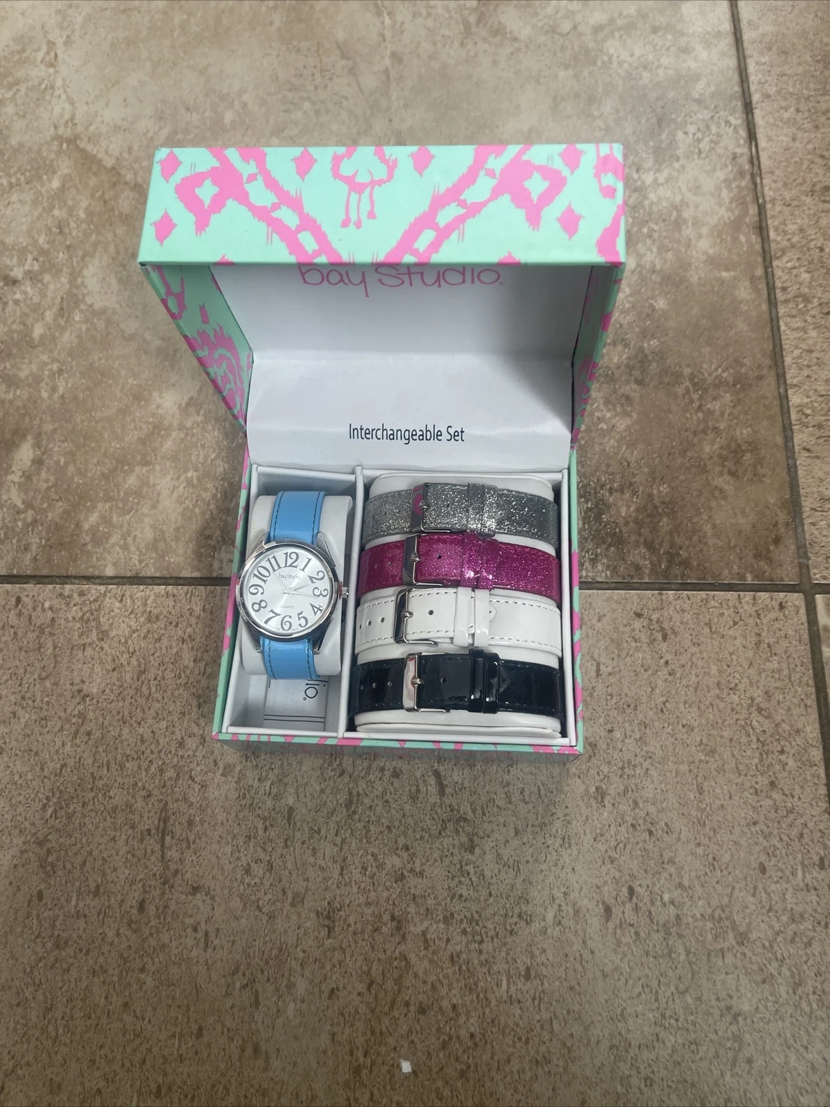WOMAN'S BAY STUDIO WATCH W/ 4 DIFFERENT COLOR BANDS NEW IN BOX
