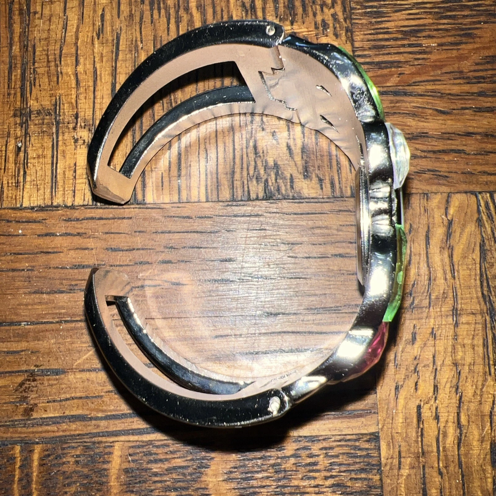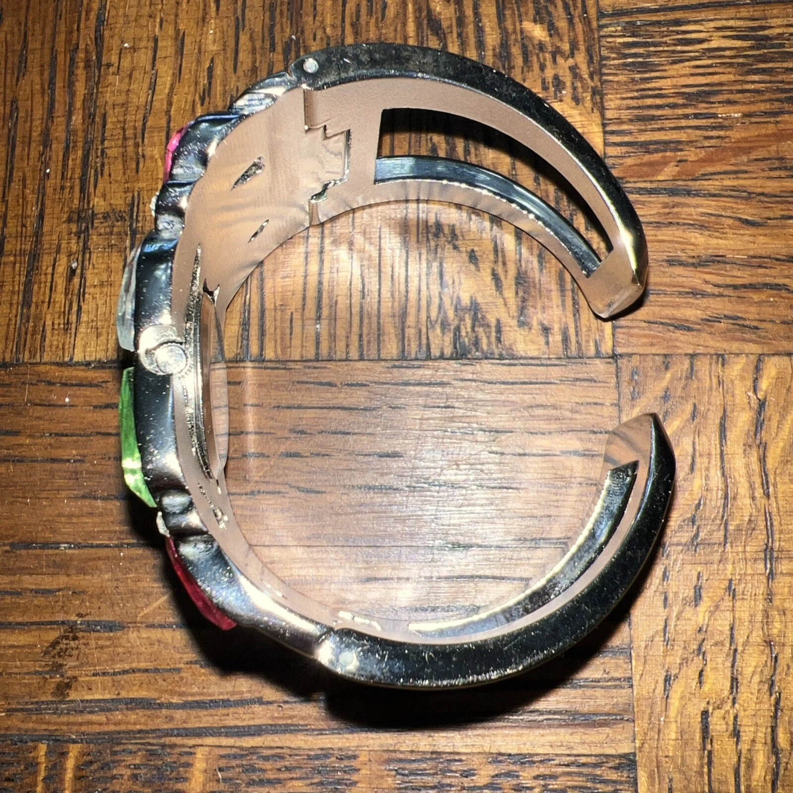 Women’s Hinge Cuff Watch-Silver Tone with Glass jewels-New Battery-Bay Studio