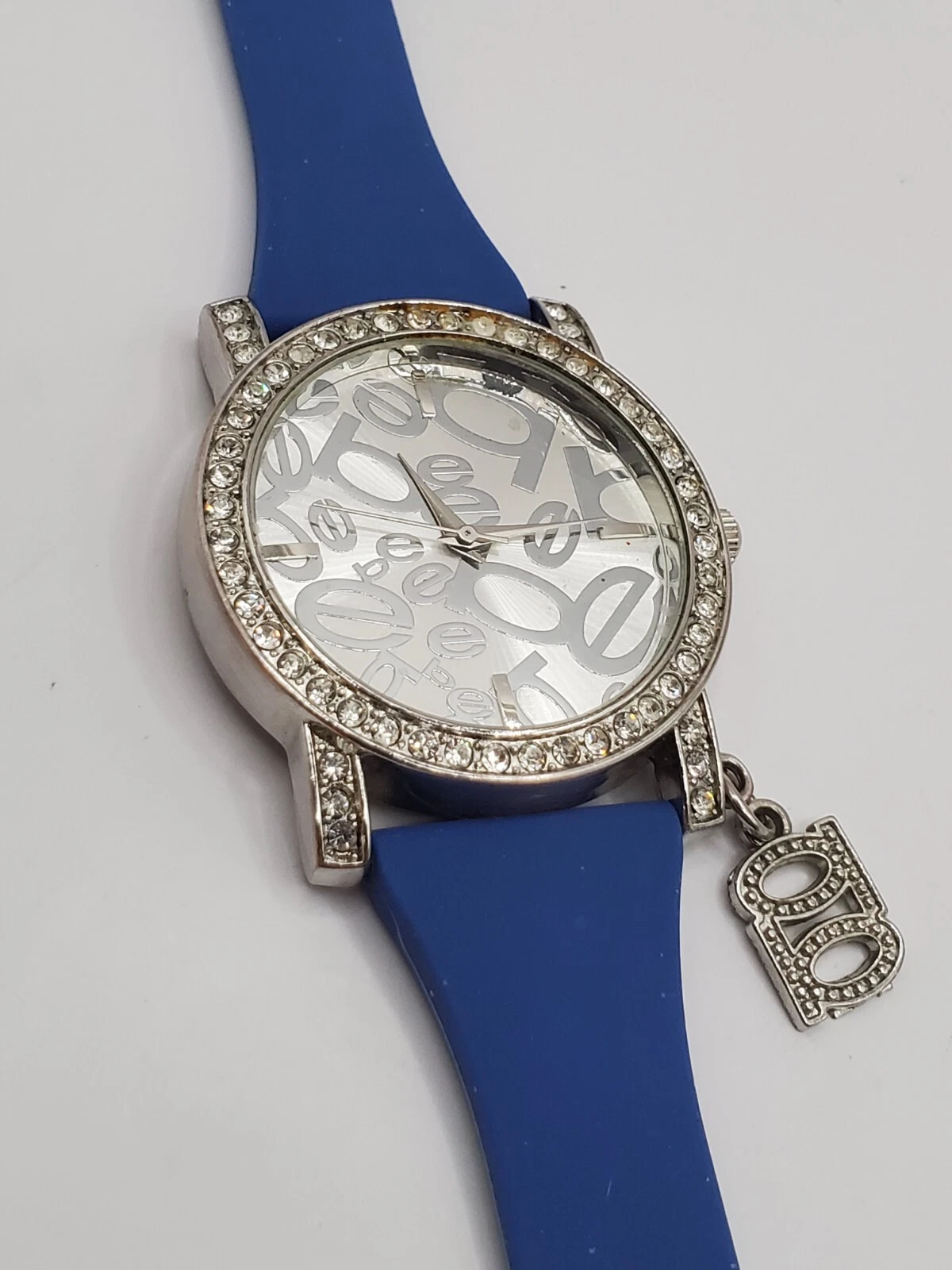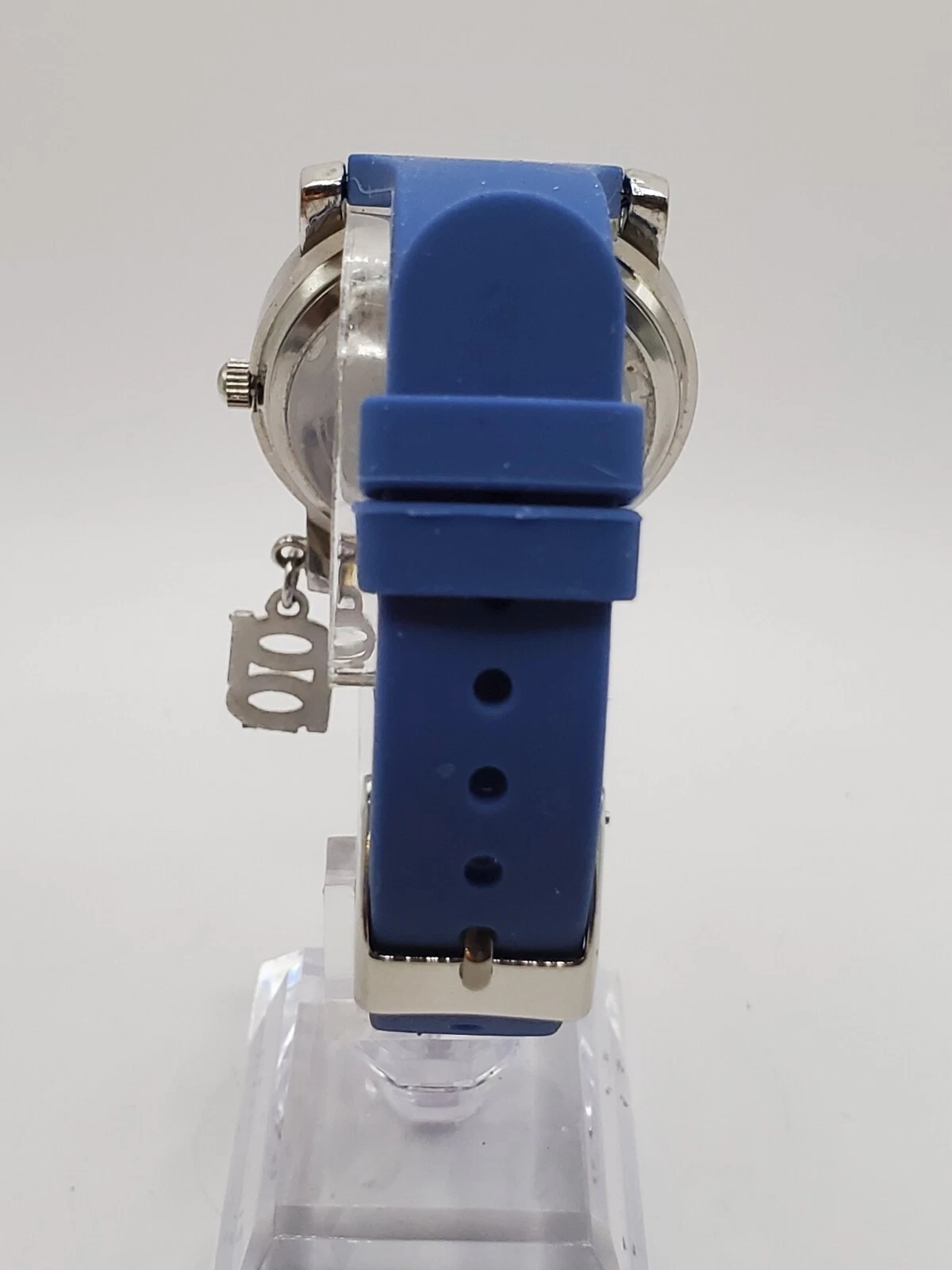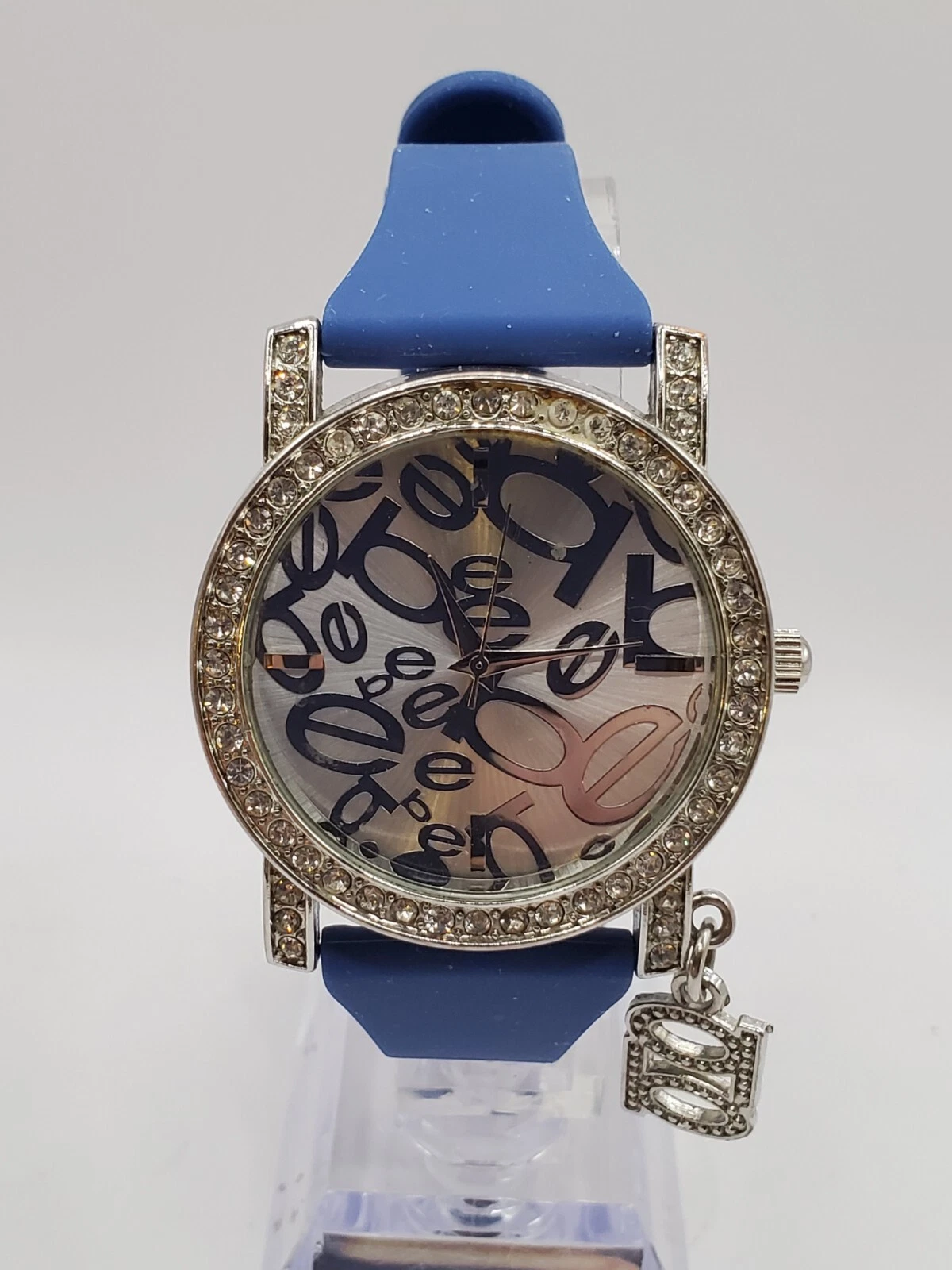 BeBe Ladies Gemmed Quartz Watch 39mm Round Silver Tone Blue Silicone Band