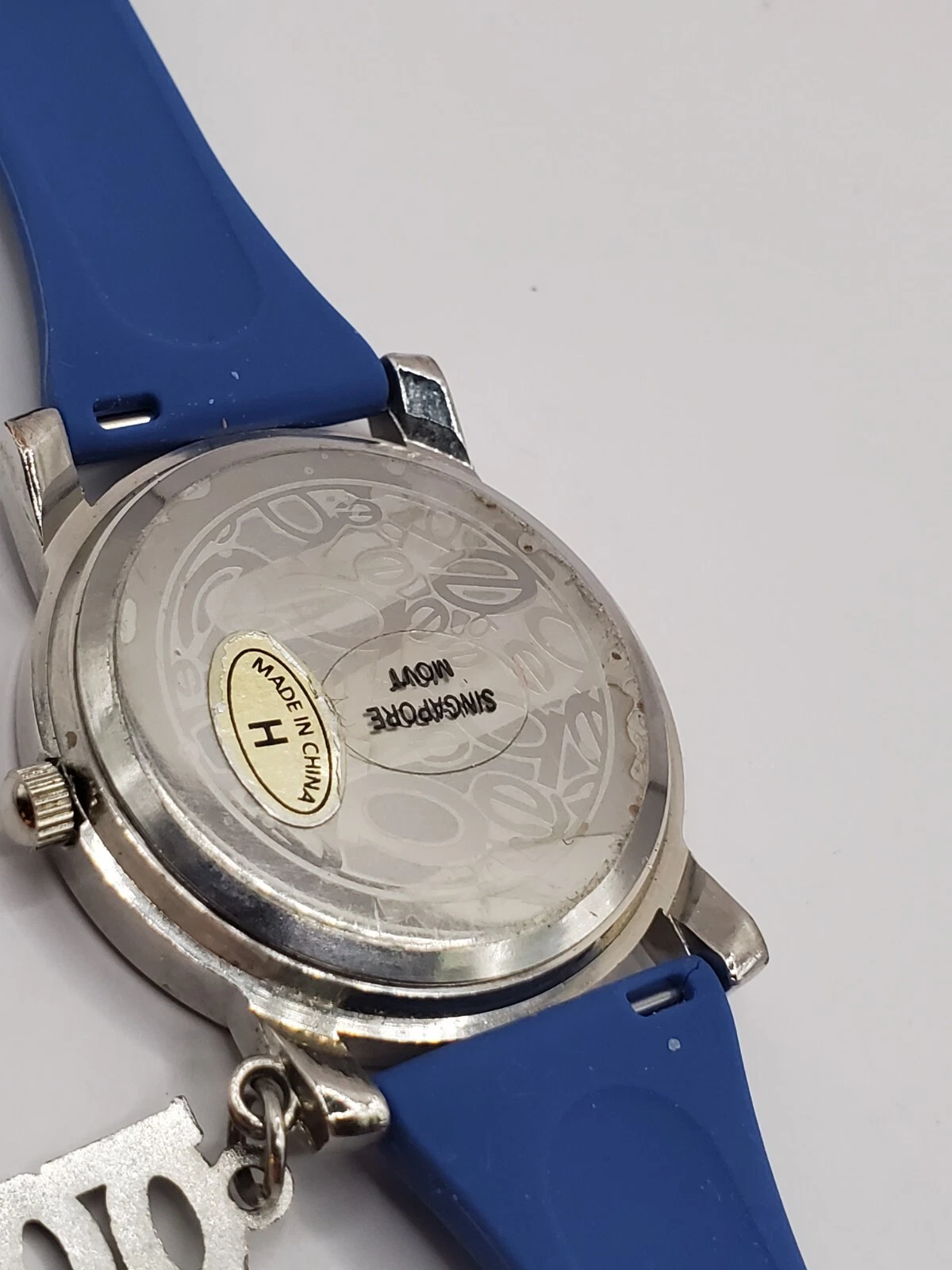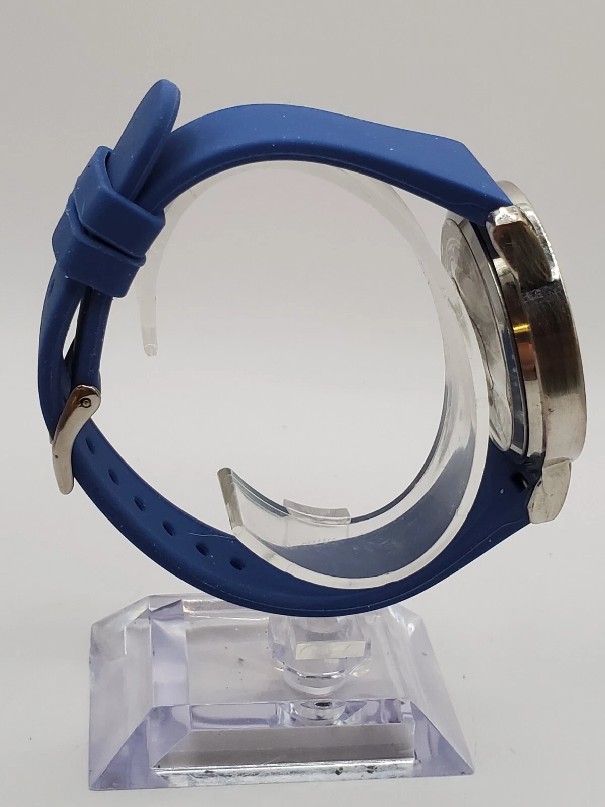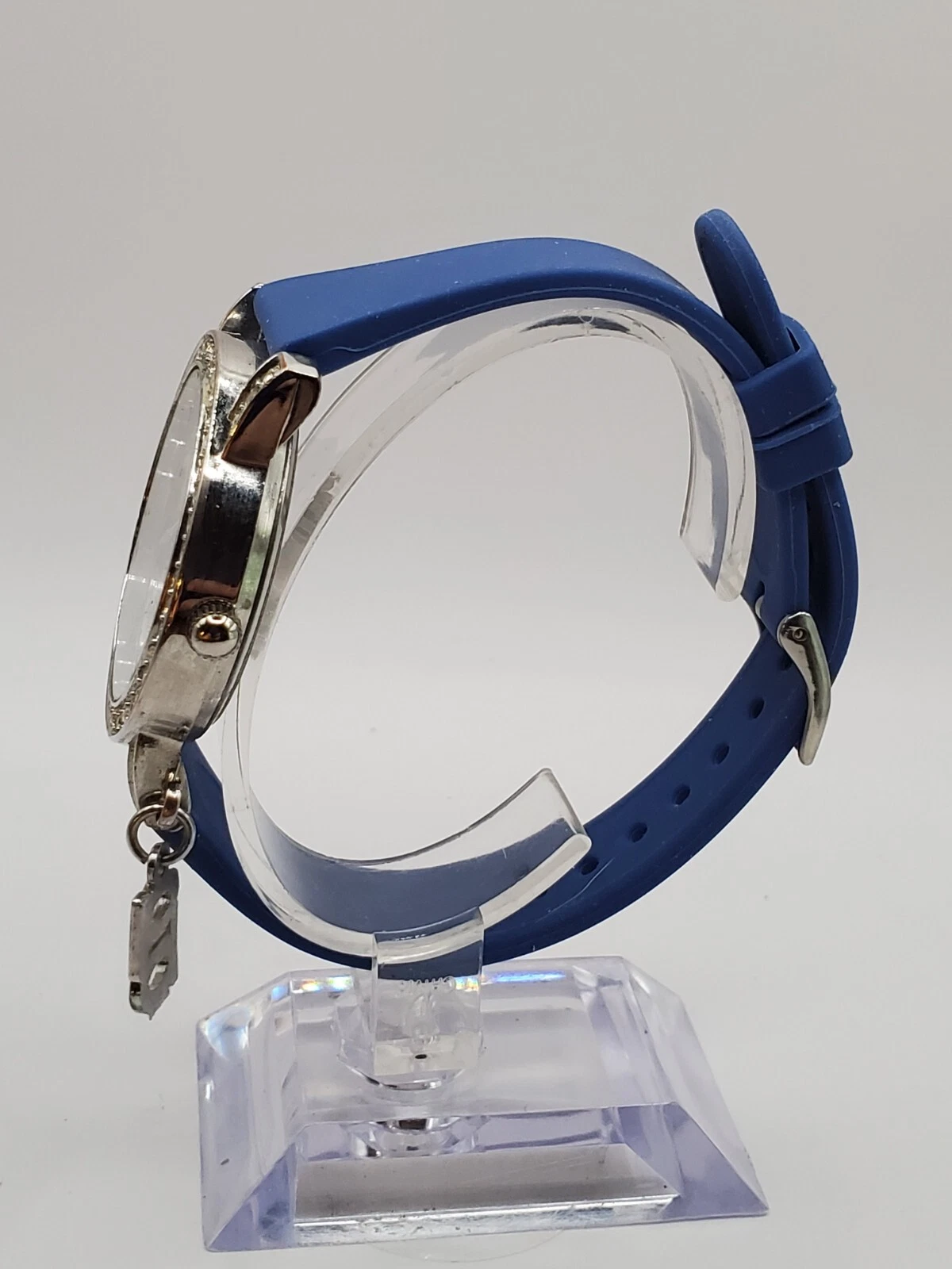 BeBe Ladies Gemmed Quartz Watch 39mm Round Silver Tone Blue Silicone Band