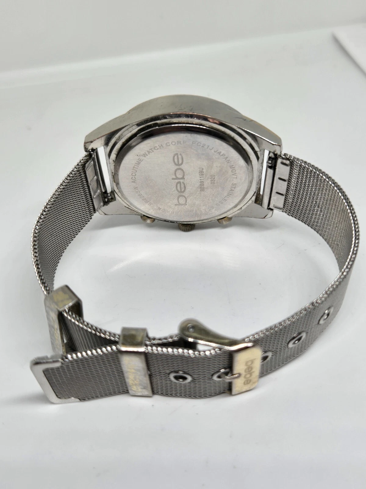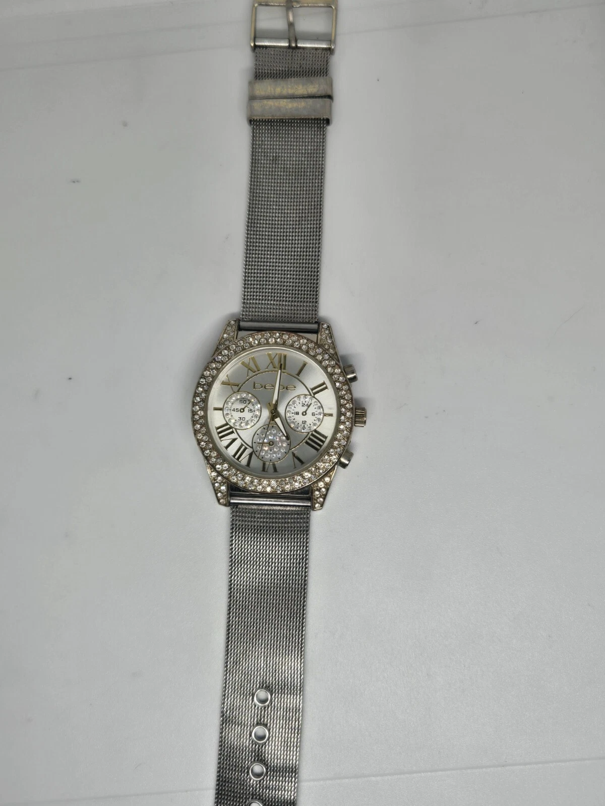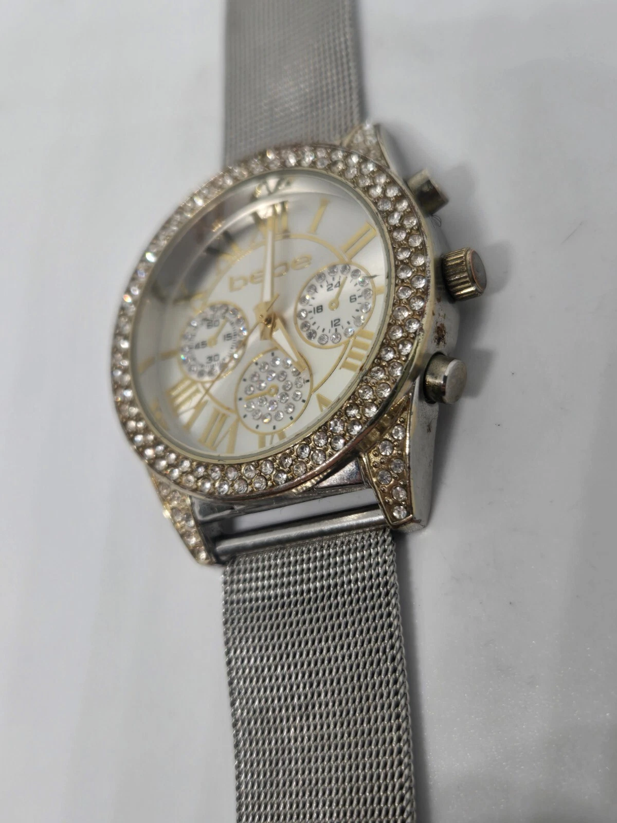 Bebe Ladies' Silver/Gold Toned Rhinestone Analog Watch. New battery.