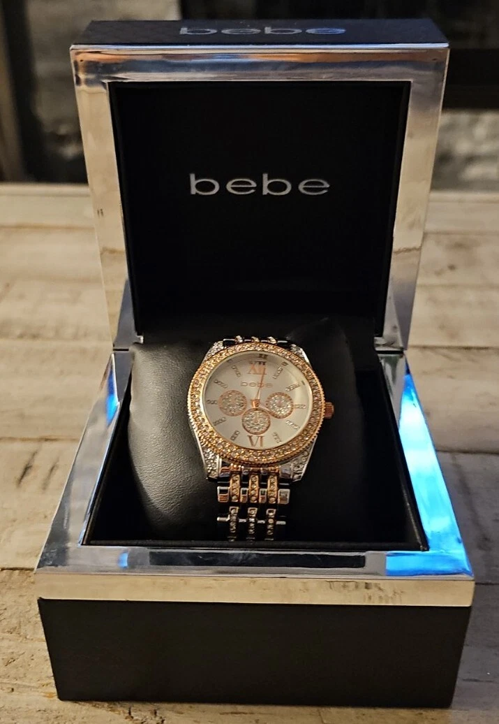 bebe Rose Gold color Stainless Steel Bling Womens Watch Gift for Wife Girlfriend