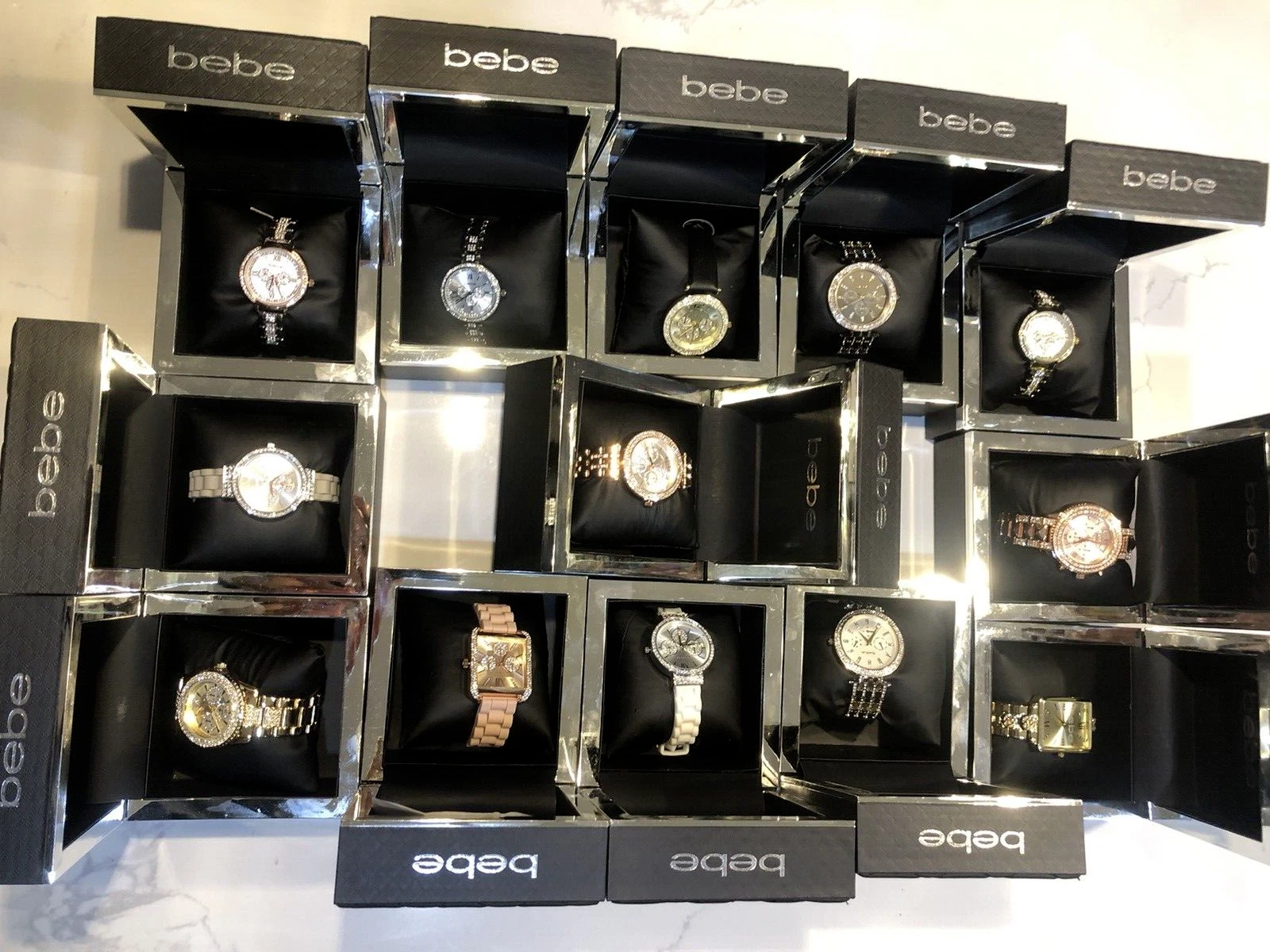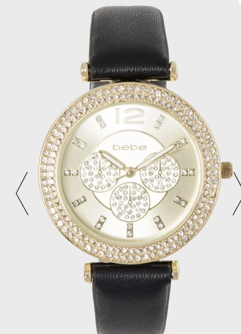 NWT BEBE BLACK & GOLD CRYSTAL BEZEL WATCH Modern & glamorous!!