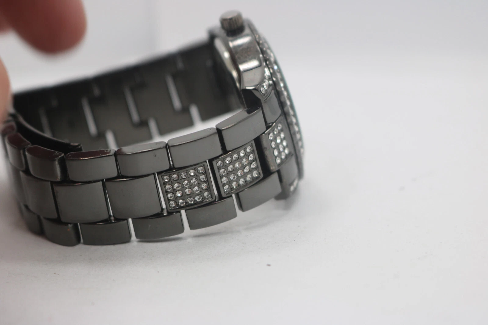 Womens BEBE beb9045bu Black Crystal Watch Day Date New Battery