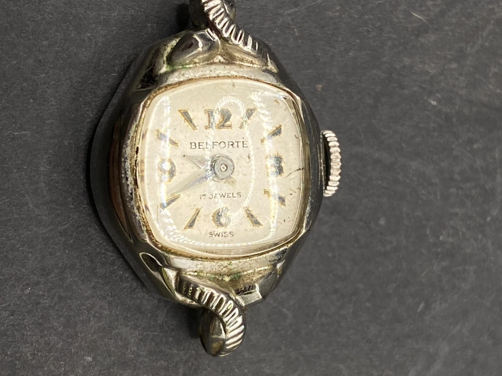 Vintage Belforte 17 Jewels Swiss Made Women's Watch Silver Tone No Band