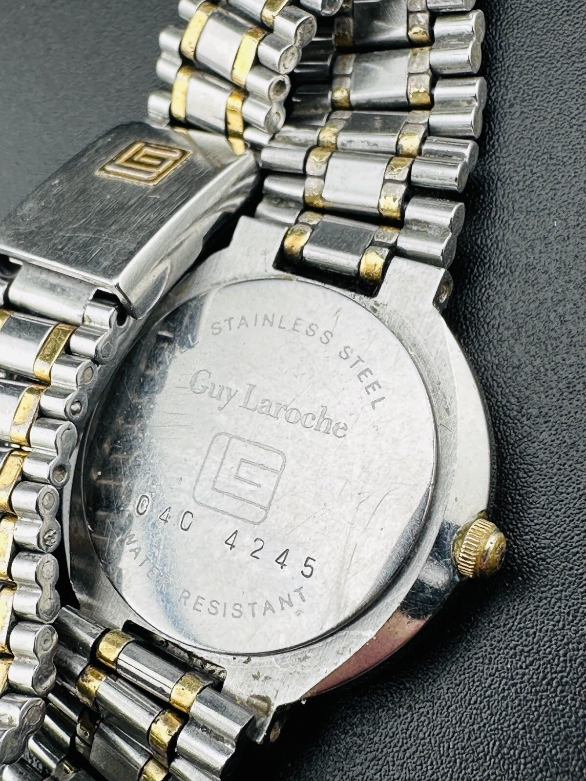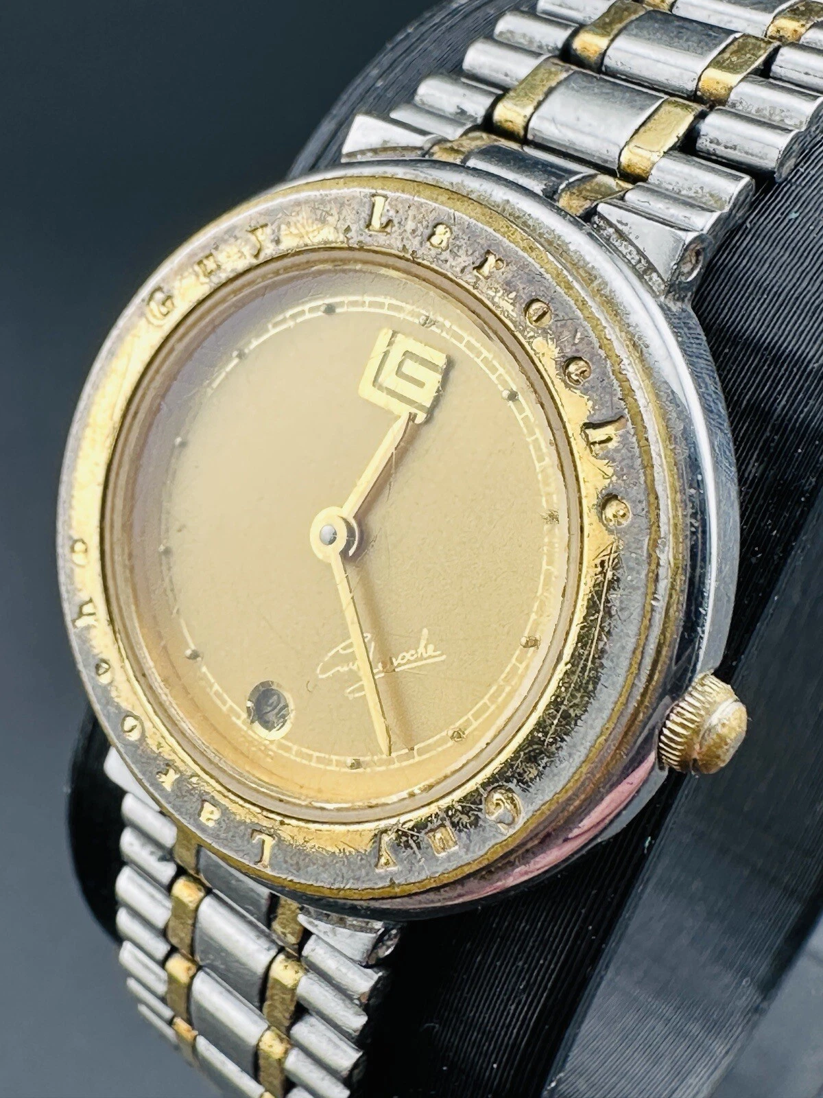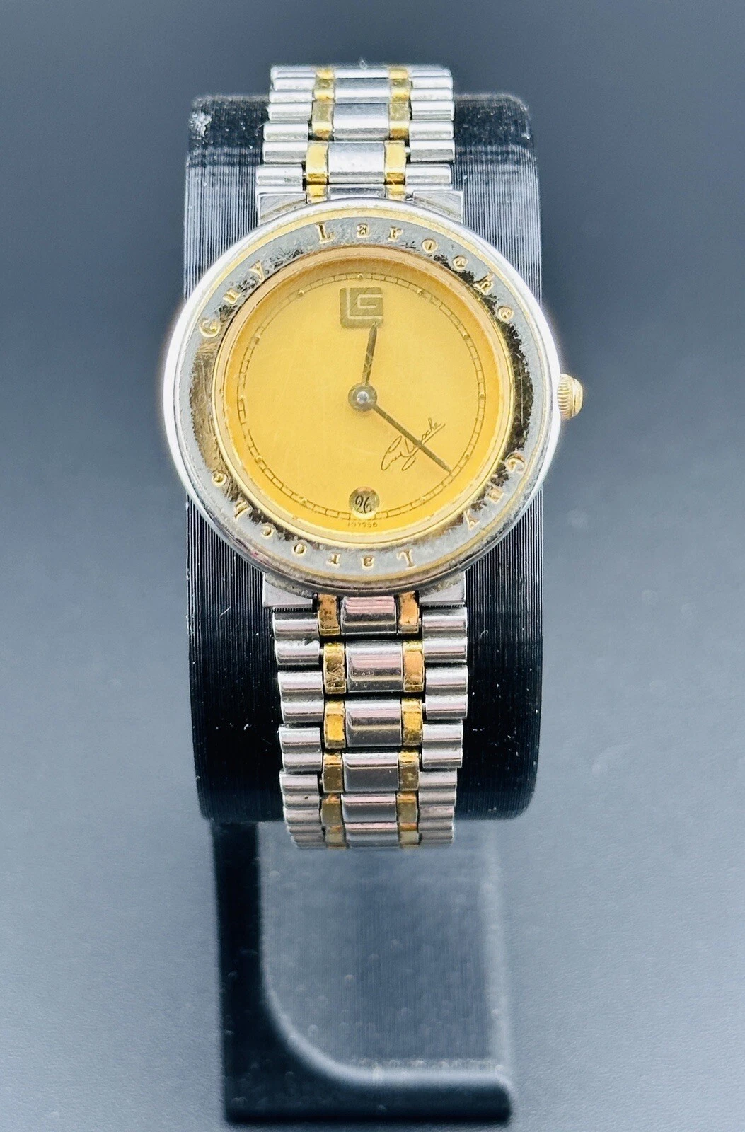 WORKING VINTAGE "GUY LAROCHE" DESIGNER LADIES WATCH GOLD SILVER TONE Date/Day i3
