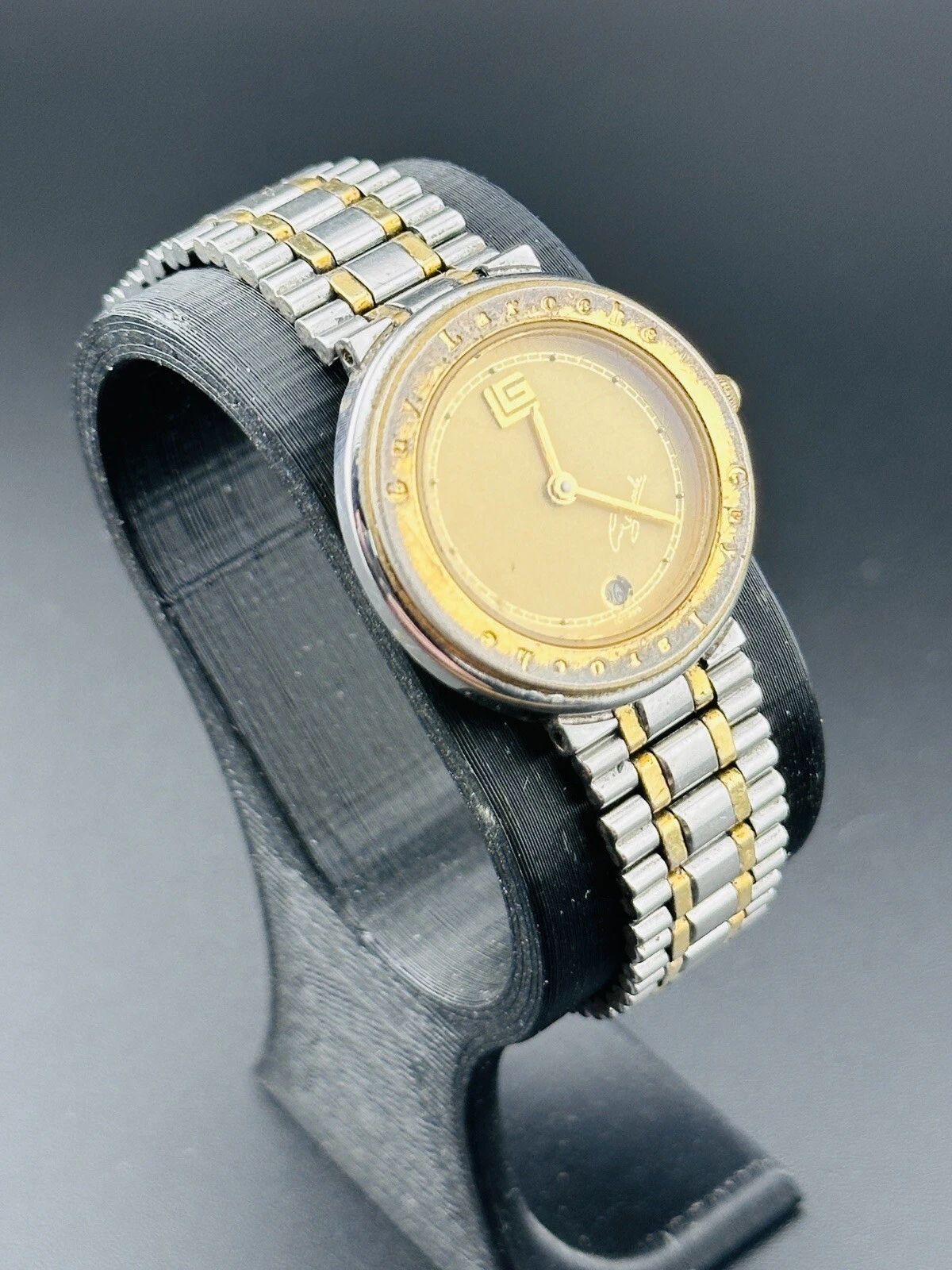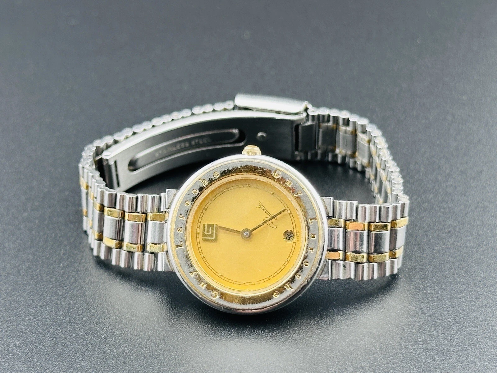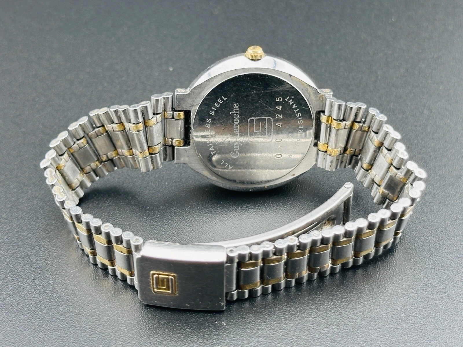 WORKING VINTAGE "GUY LAROCHE" DESIGNER LADIES WATCH GOLD SILVER TONE Date/Day i3