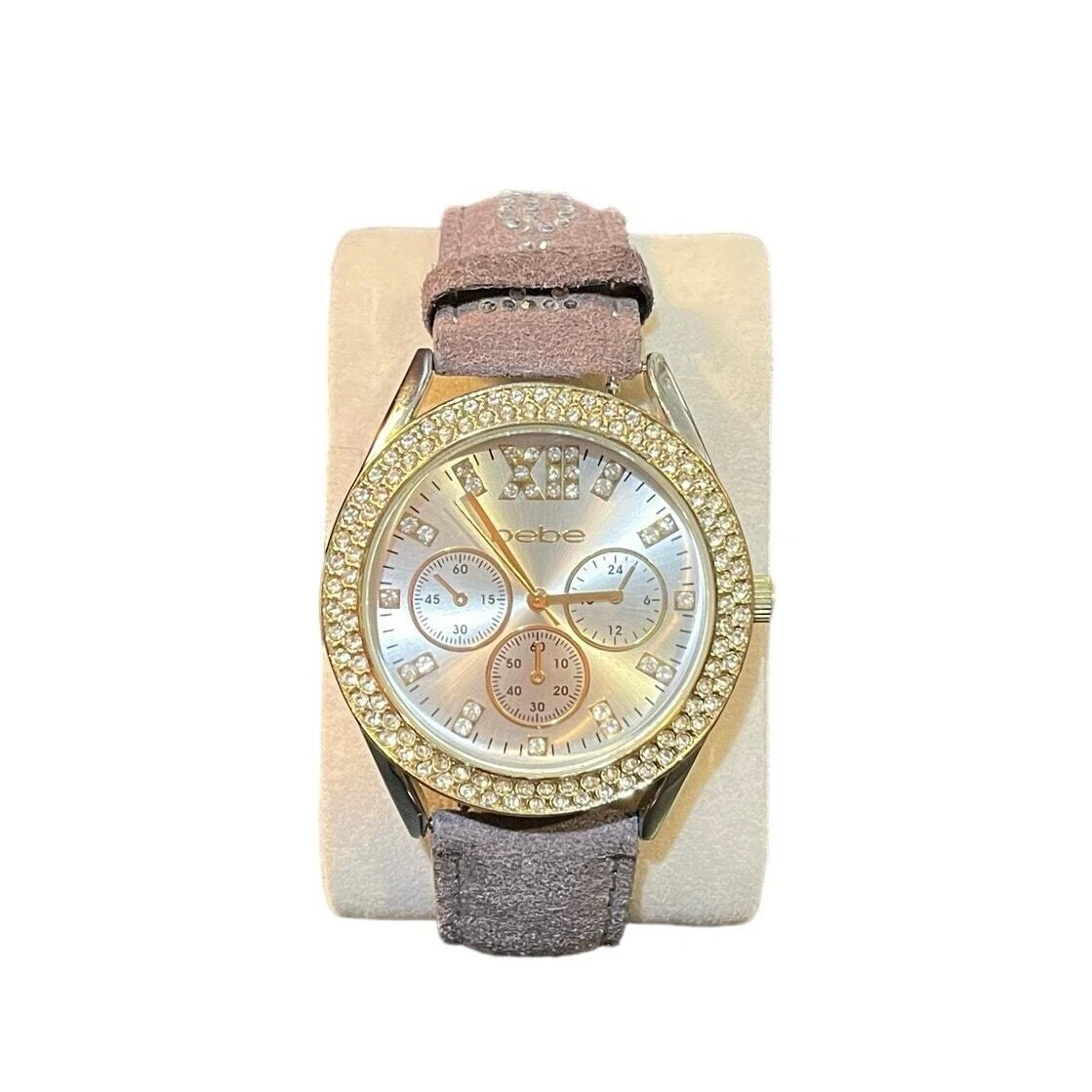 Faux Leather bebe Rhinestone Decorated Ladies Watch