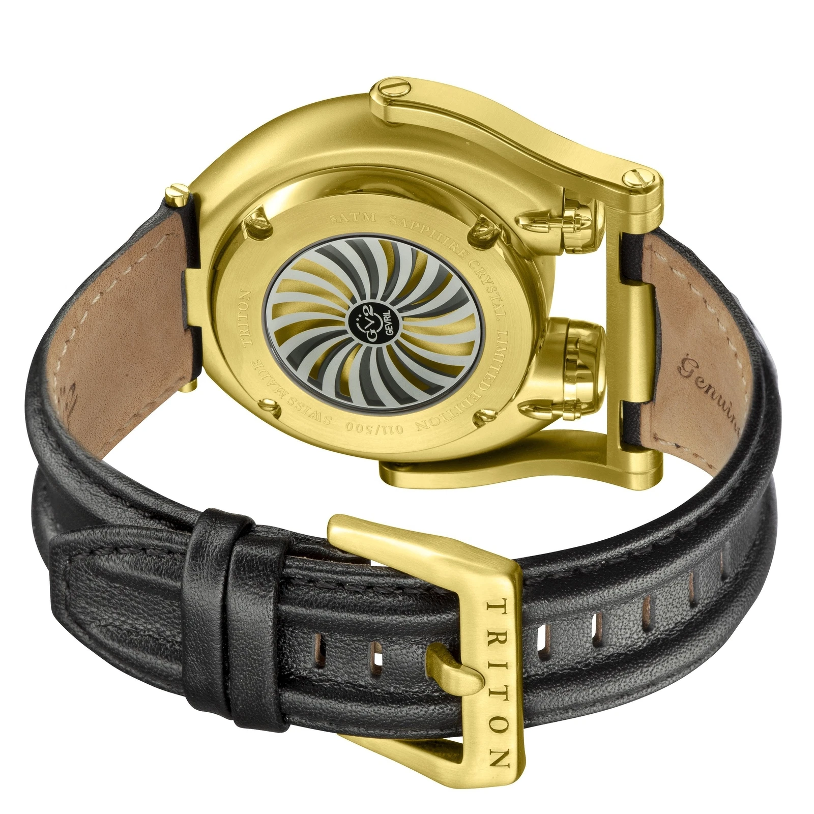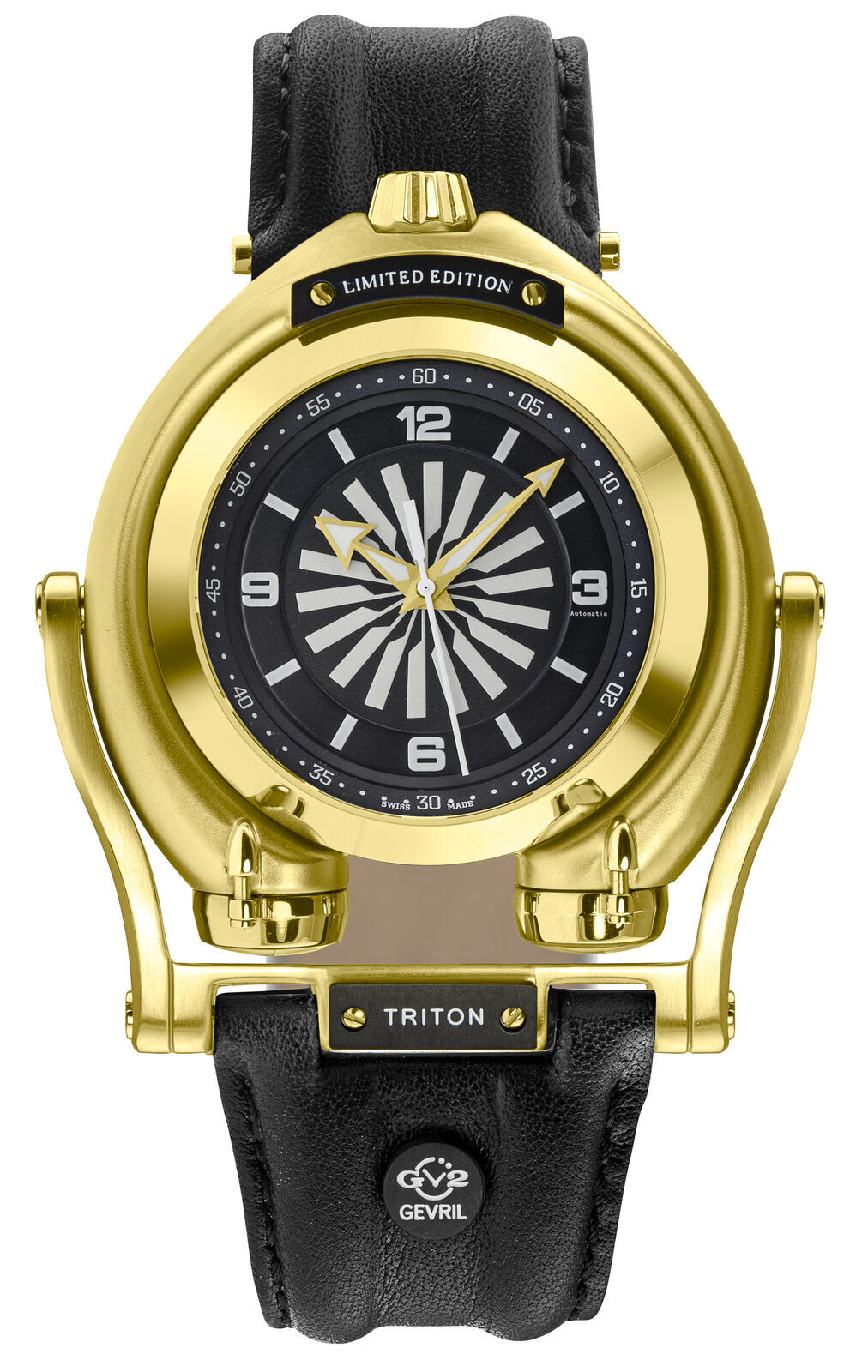 GV2 48 mm Gold Stainless Steel Case with Black Leather Strap Men's Wristwatch
