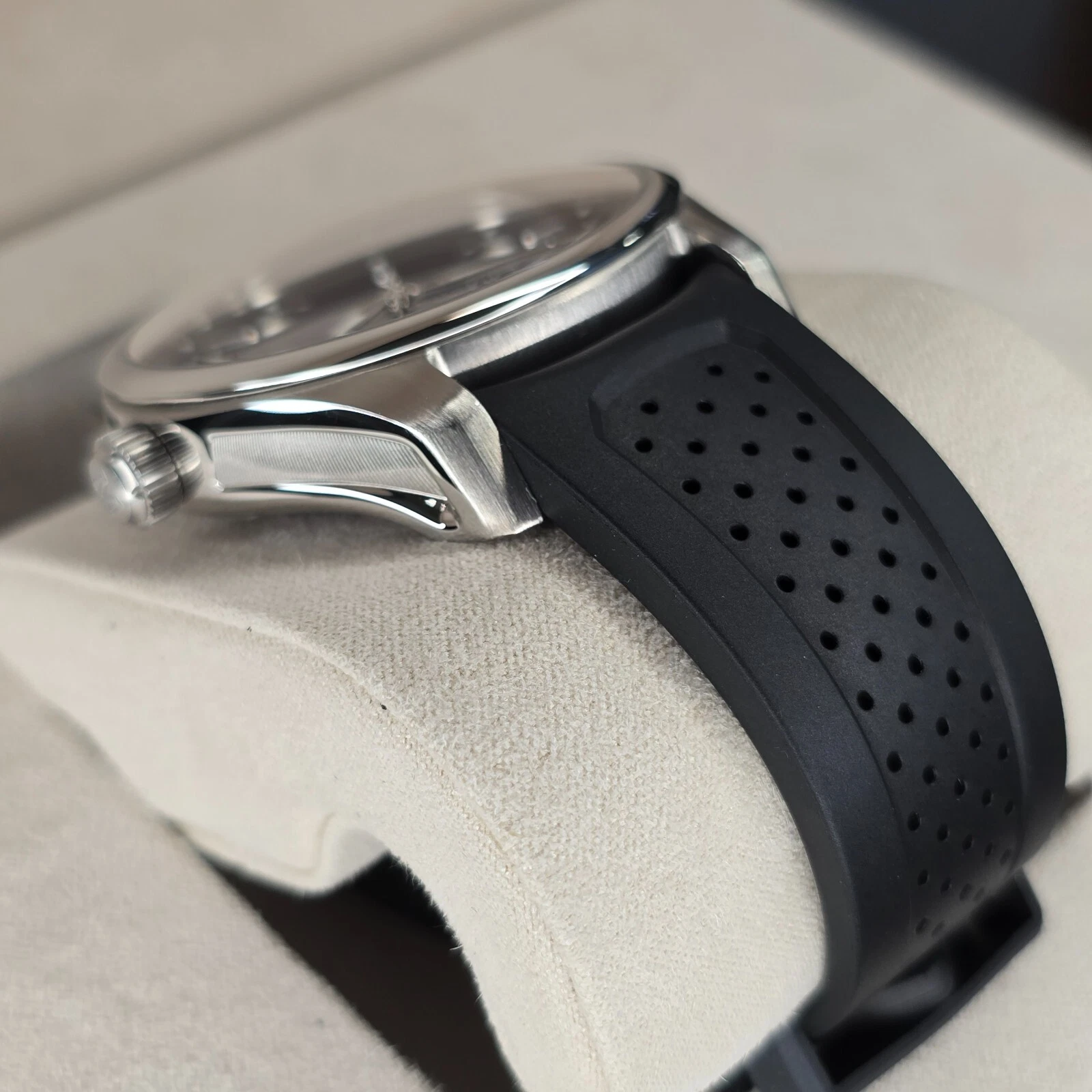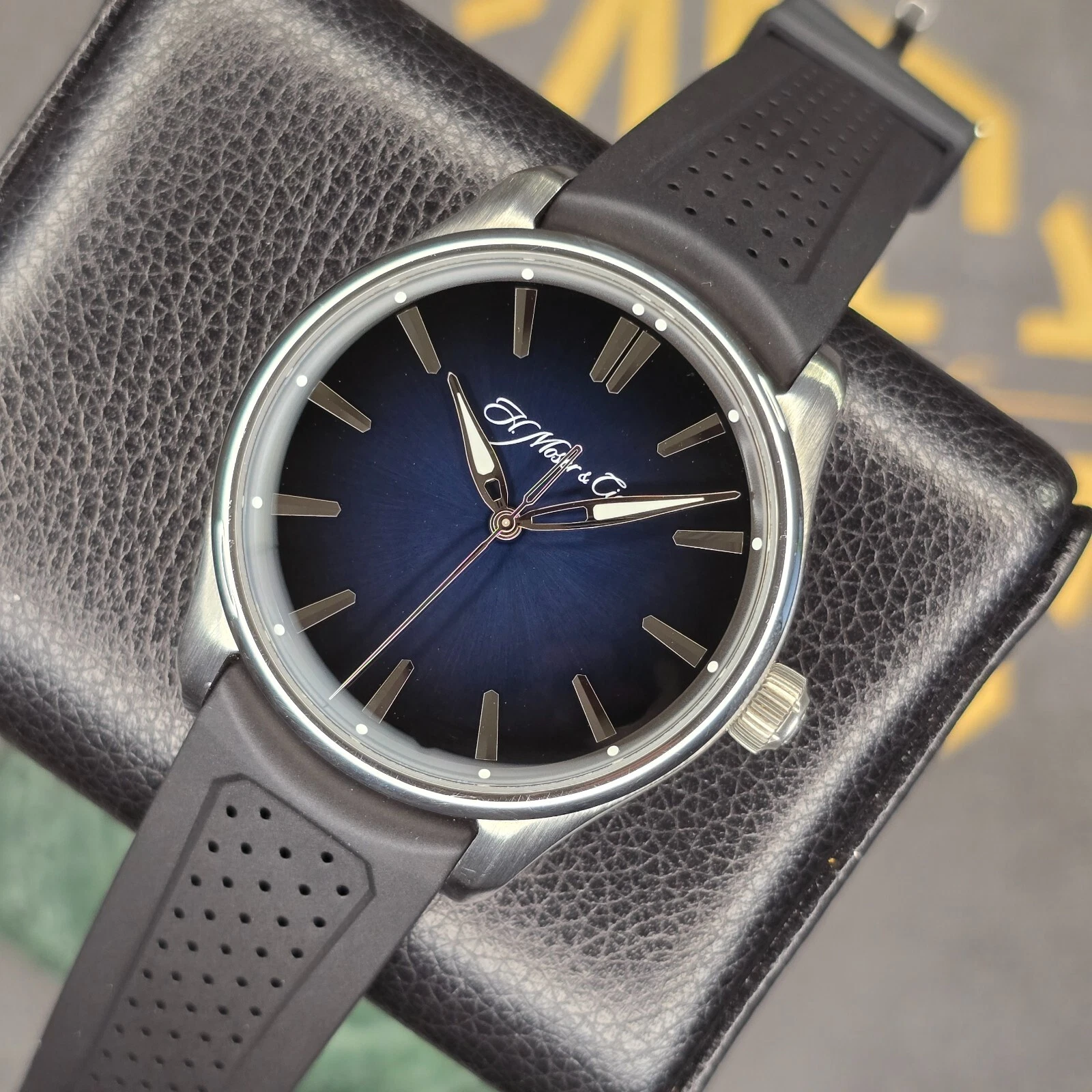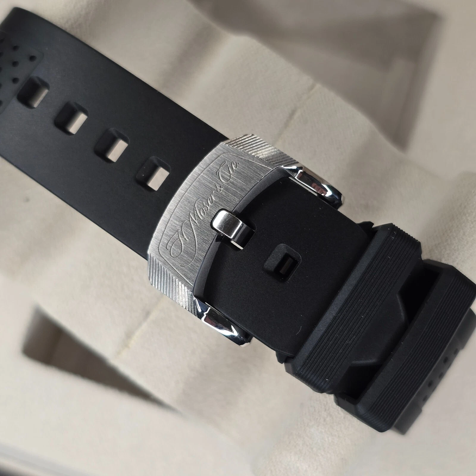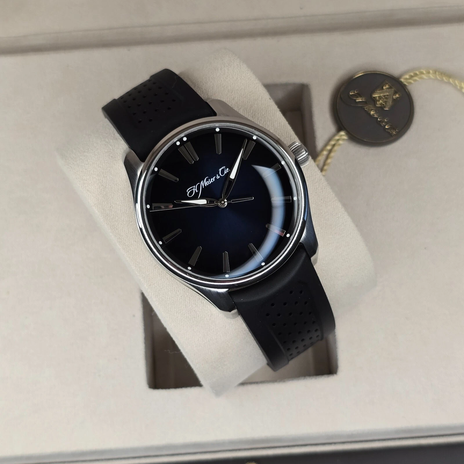 H. MOSER & CIE PIONEER 3200 43MM BLUE FUME SMOKE DIAL STAINLESS STEEL B&P