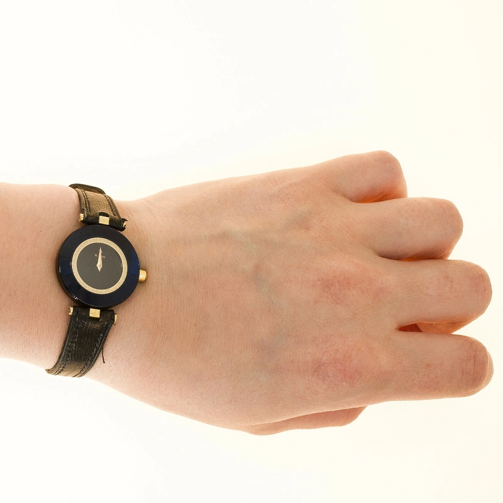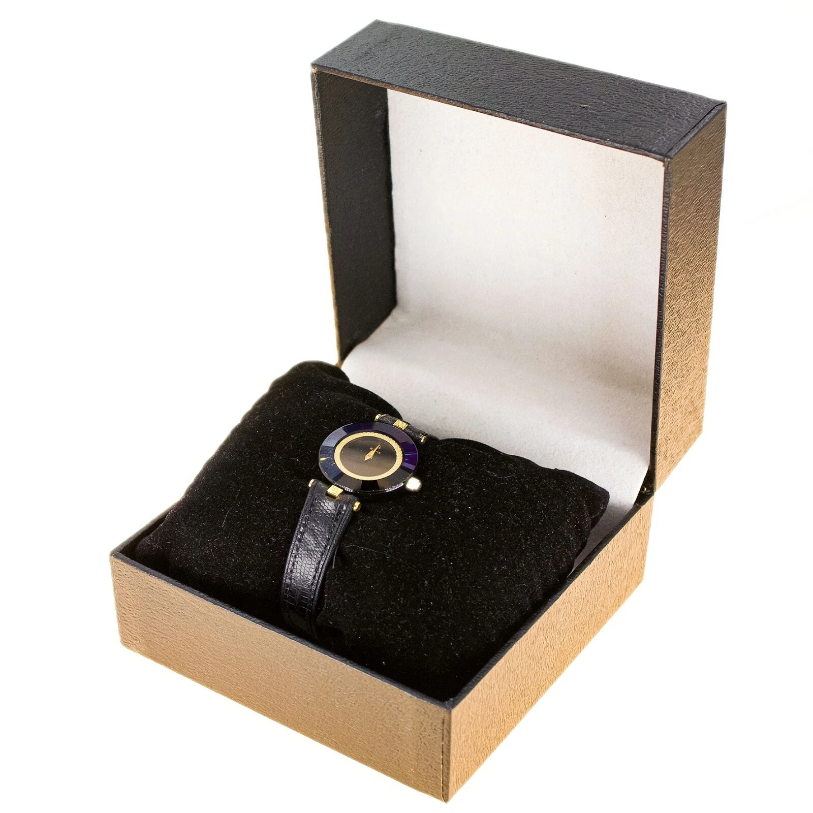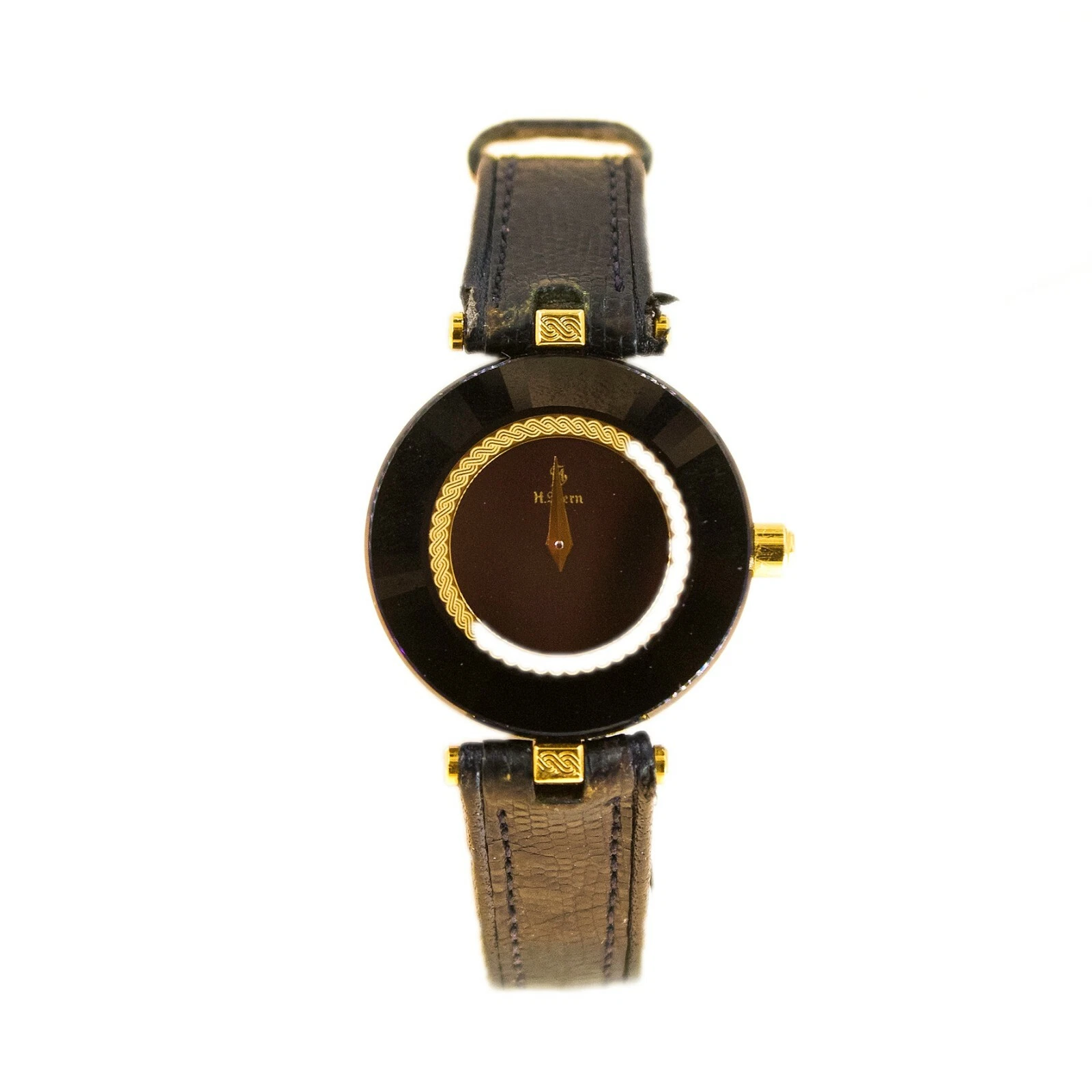 H STERN Sapphire Glass 18k Gold Womens Watch Black Leather Strap UK BHS