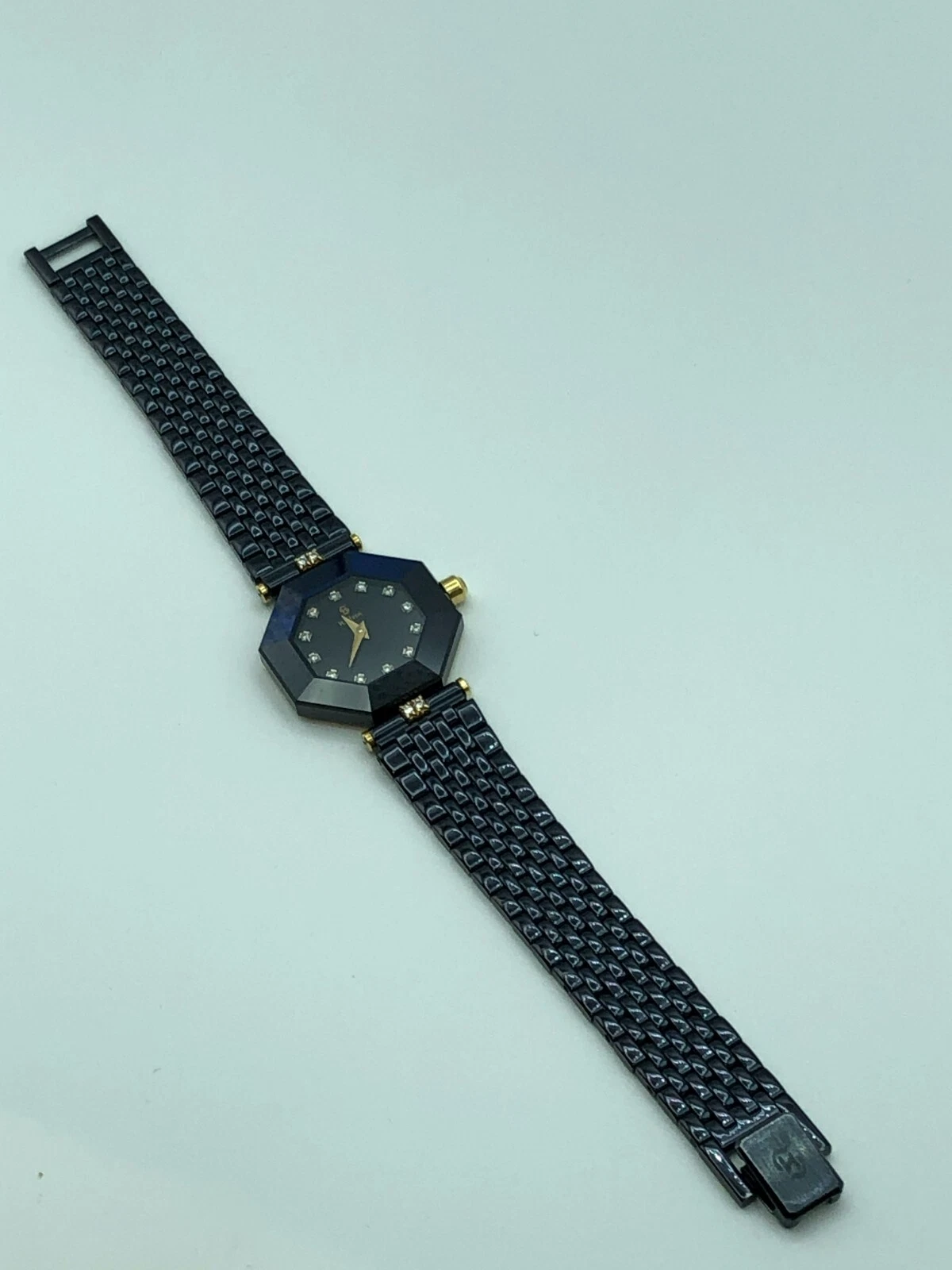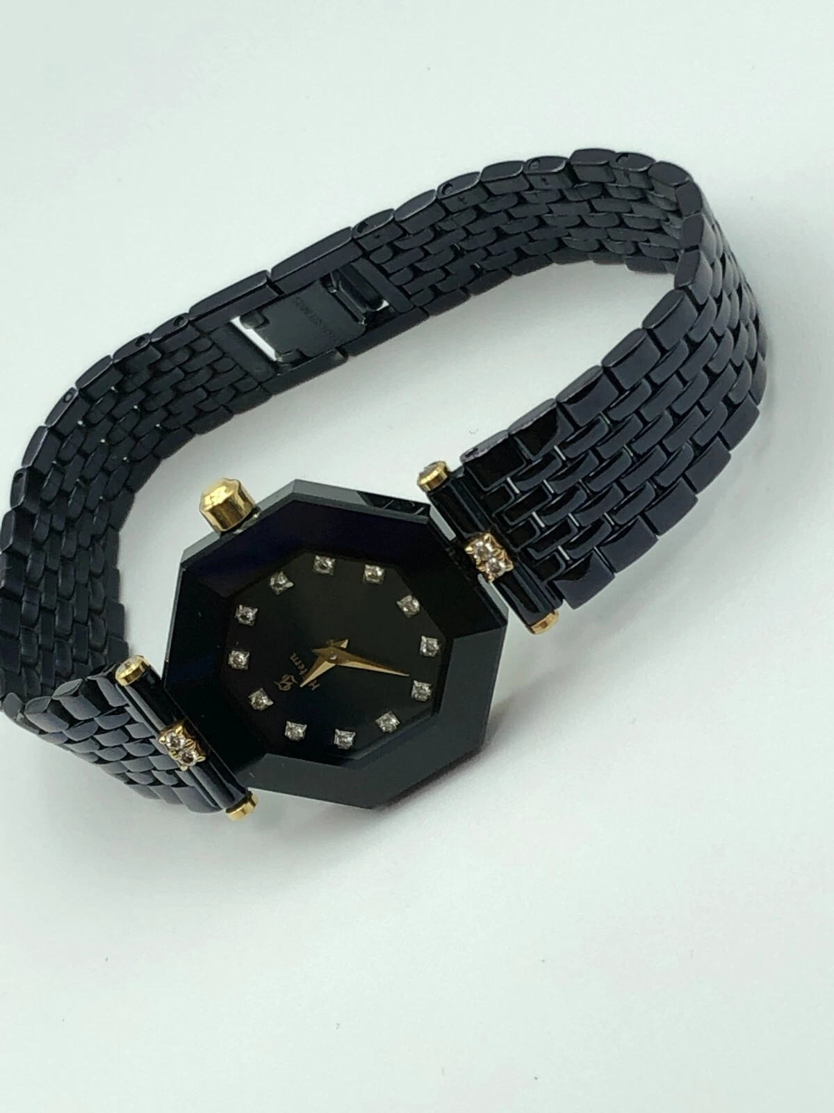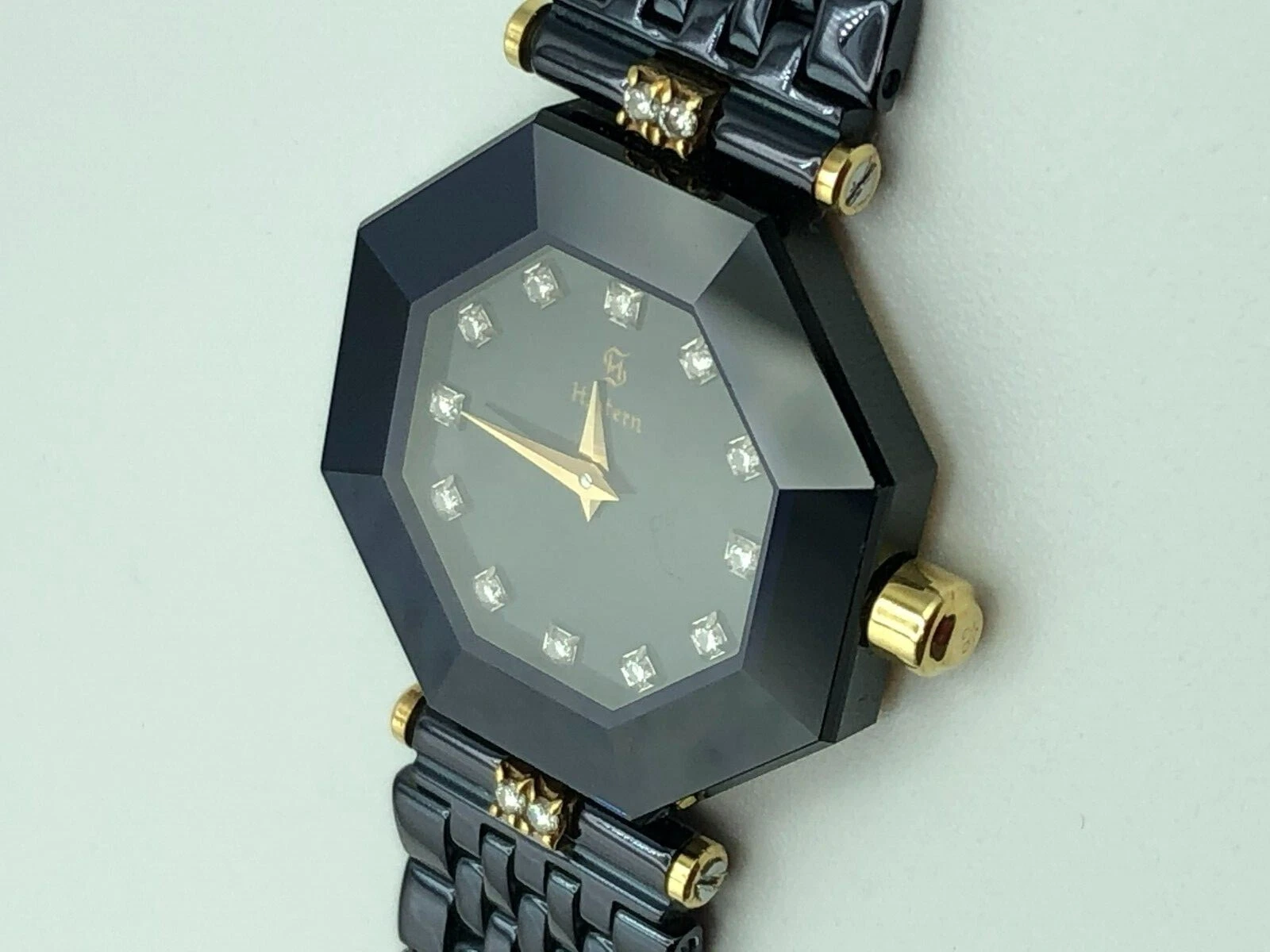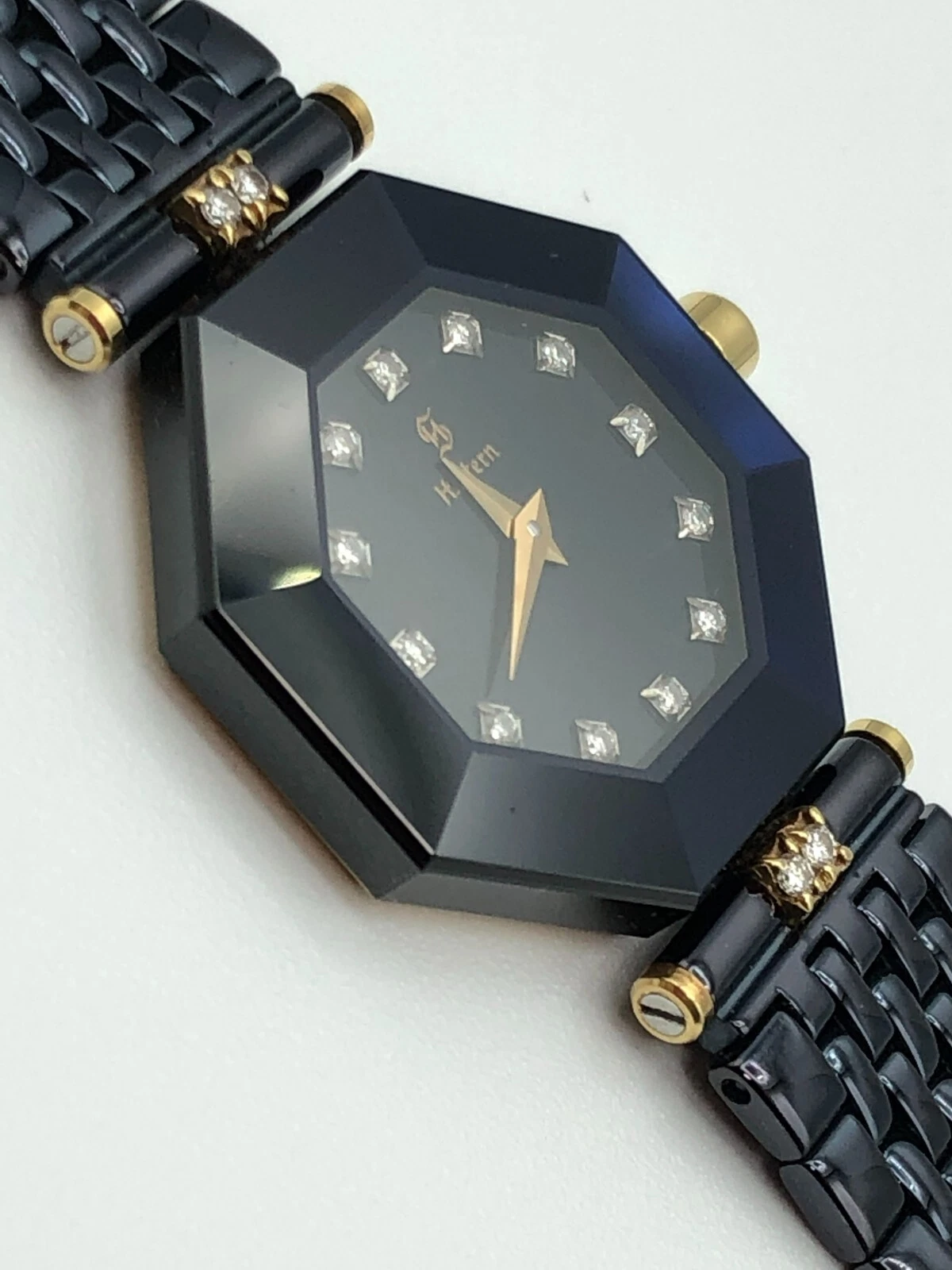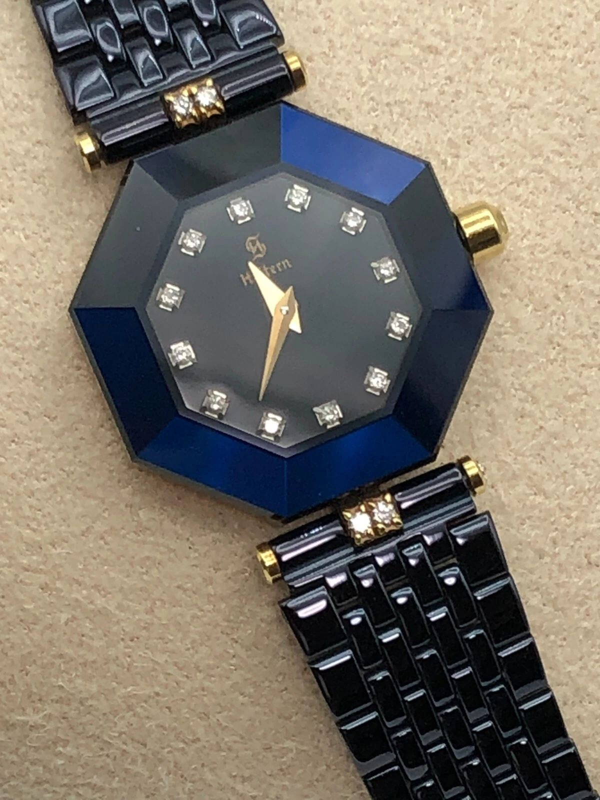 H STERN Watch SAFIRA Yellow Gold Stainless Bracelet Sapphire 16 Diamond Lady SP1