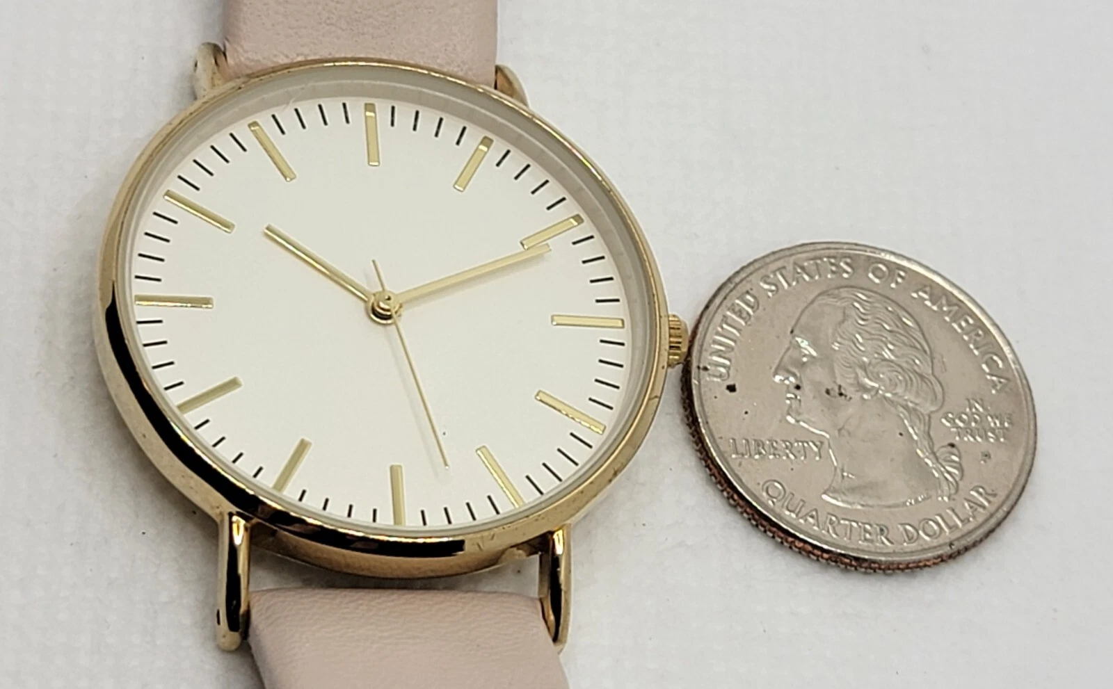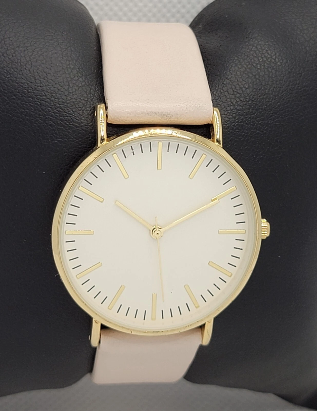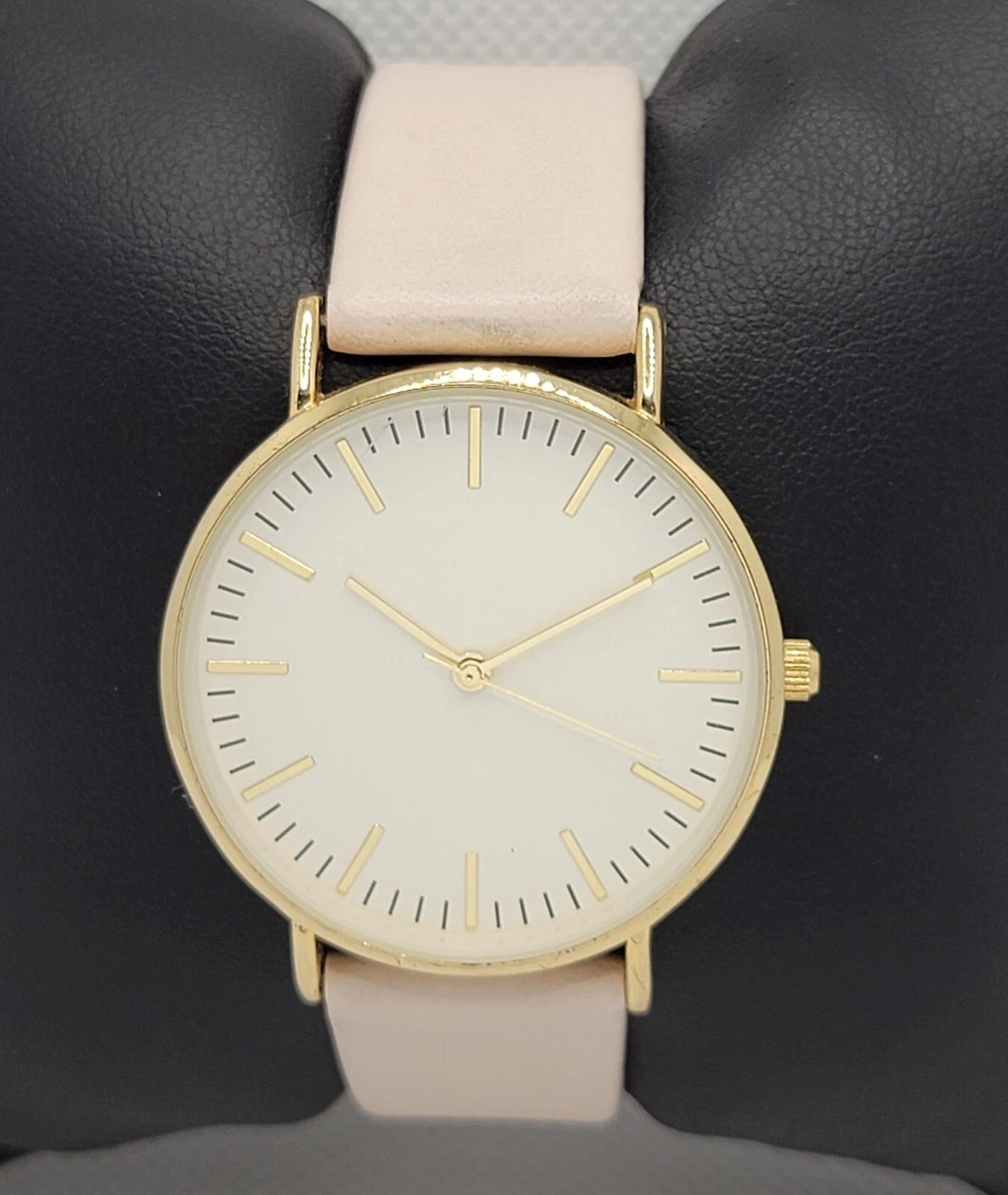 Ladies H&M Minimalistic Round Gold Tone Blush Faux Leather Analog Watch H7