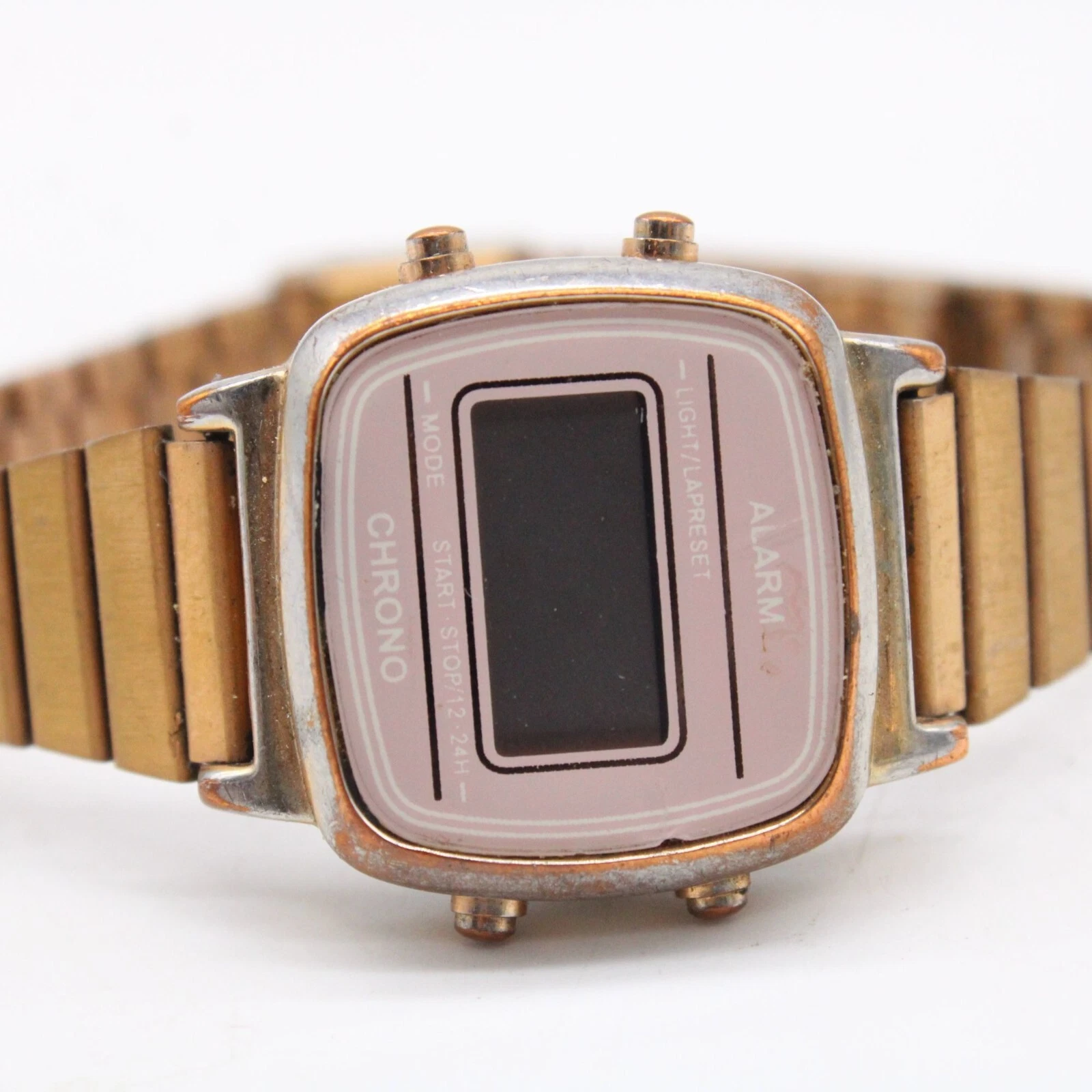 H&M Digital Chrono Watch Womens Bronze Tone Steel Alarm Classic Retro Look