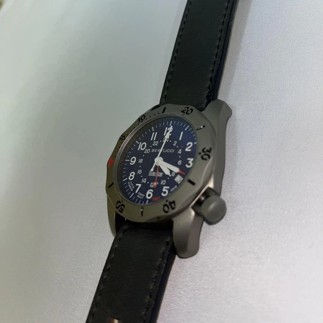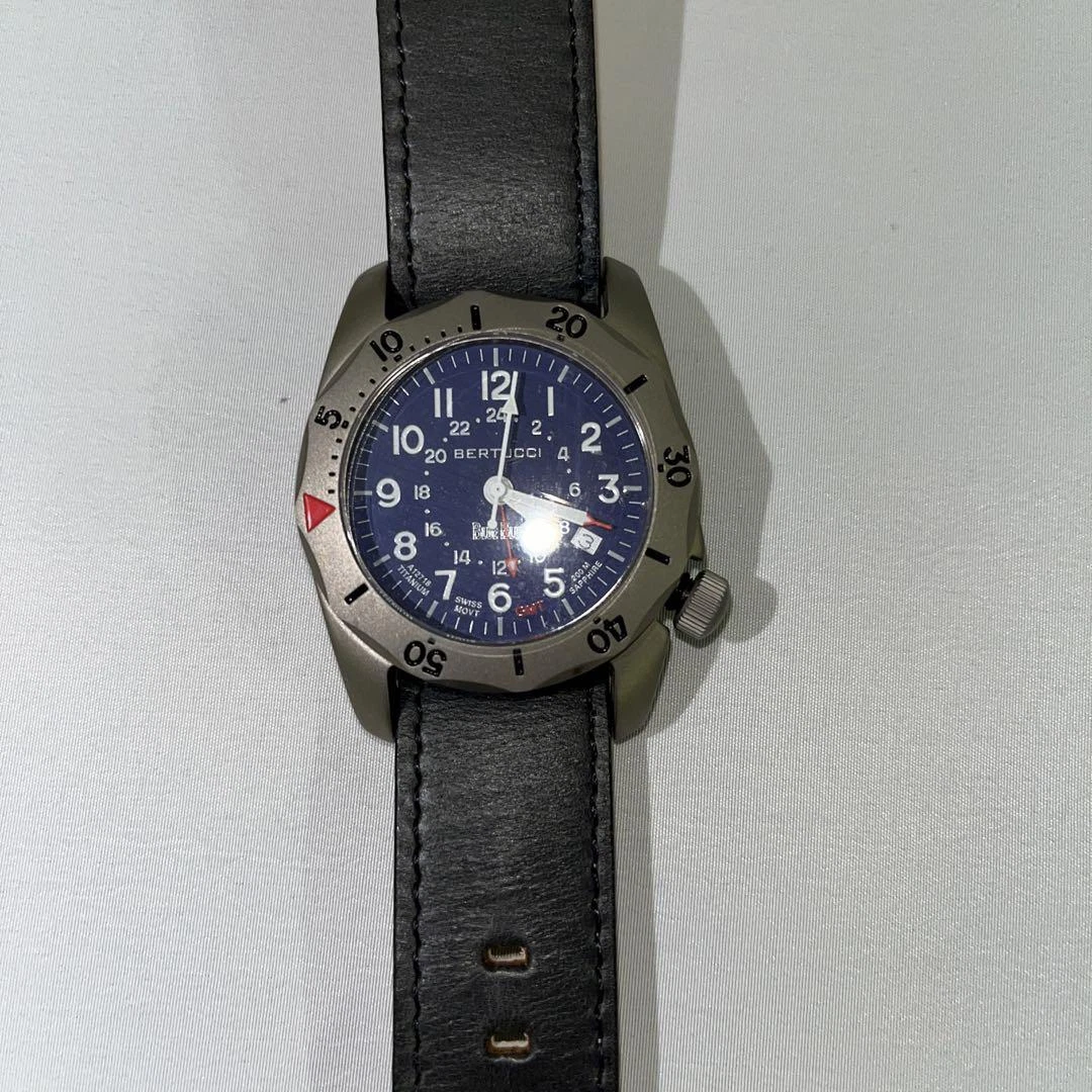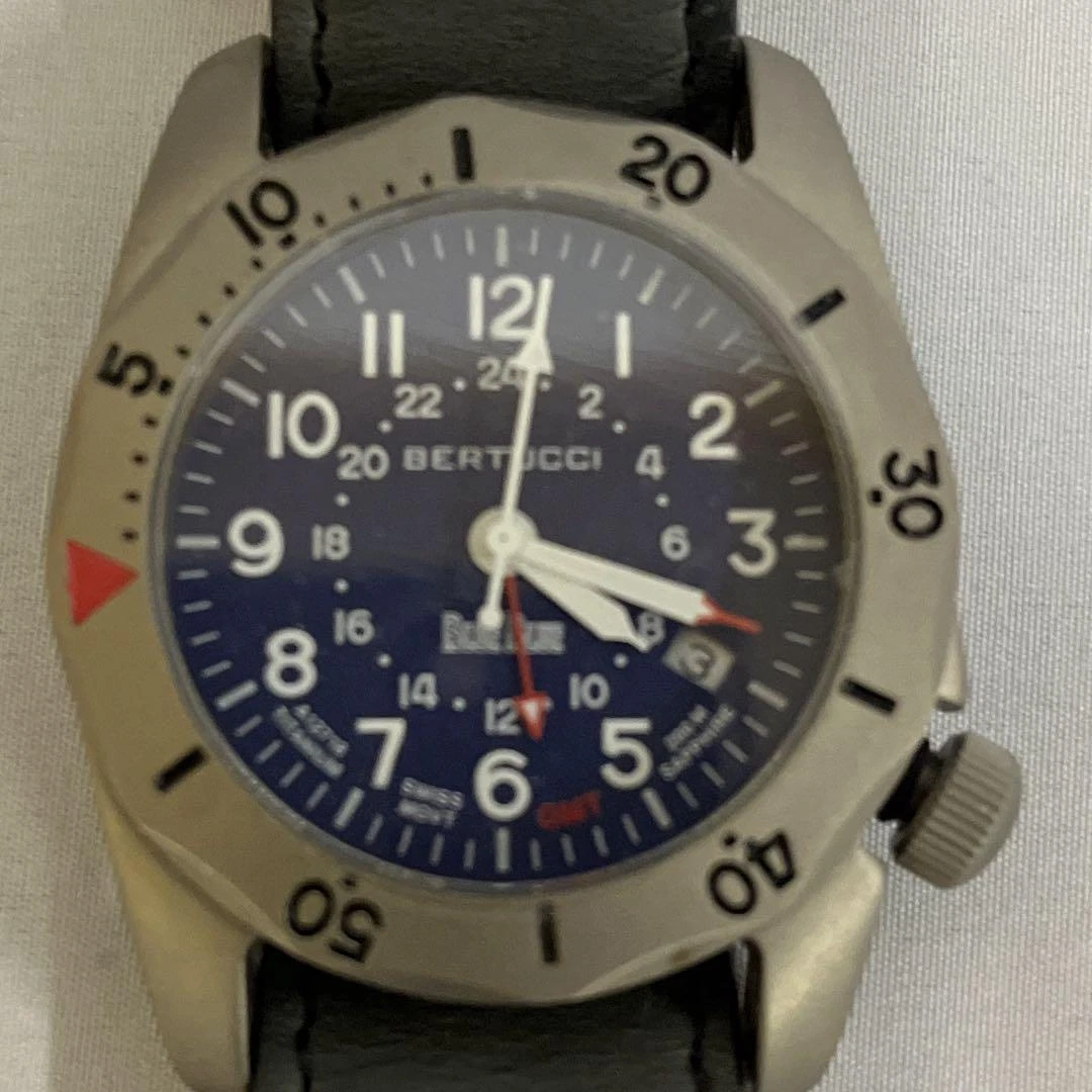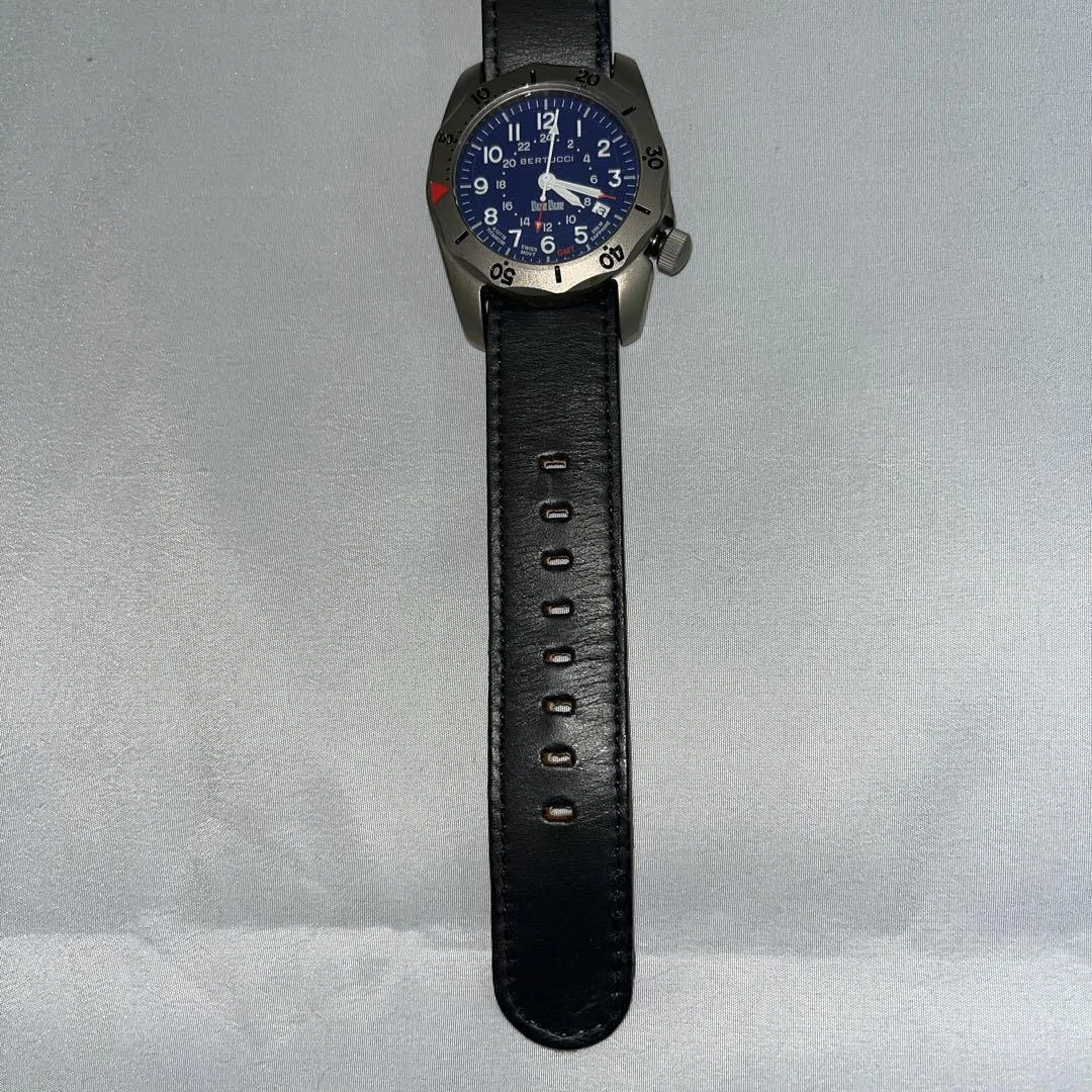 Blue Blue BERTUCCI Watch Quartz Men's Black Dial Swiss Made Round A-2TR Vintage