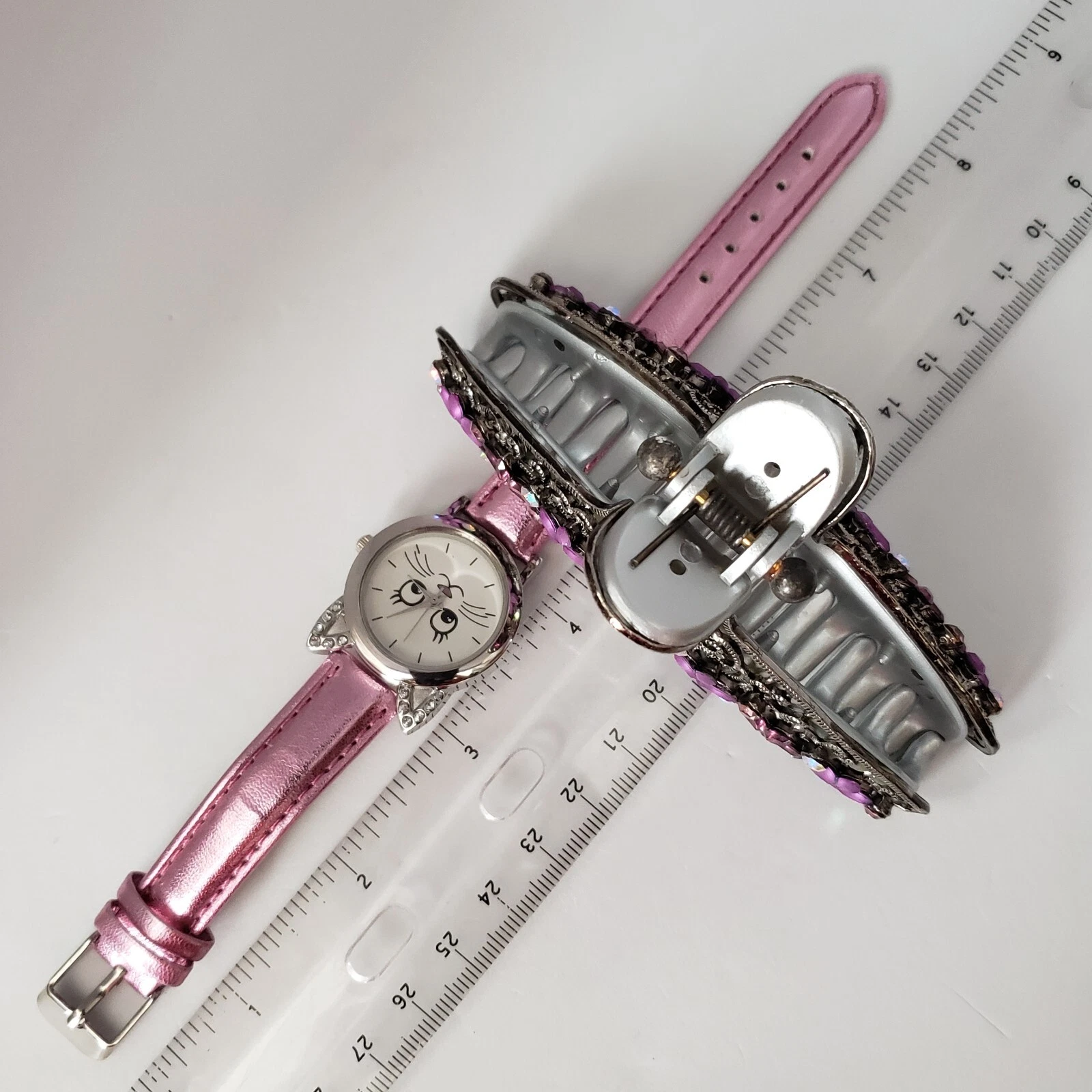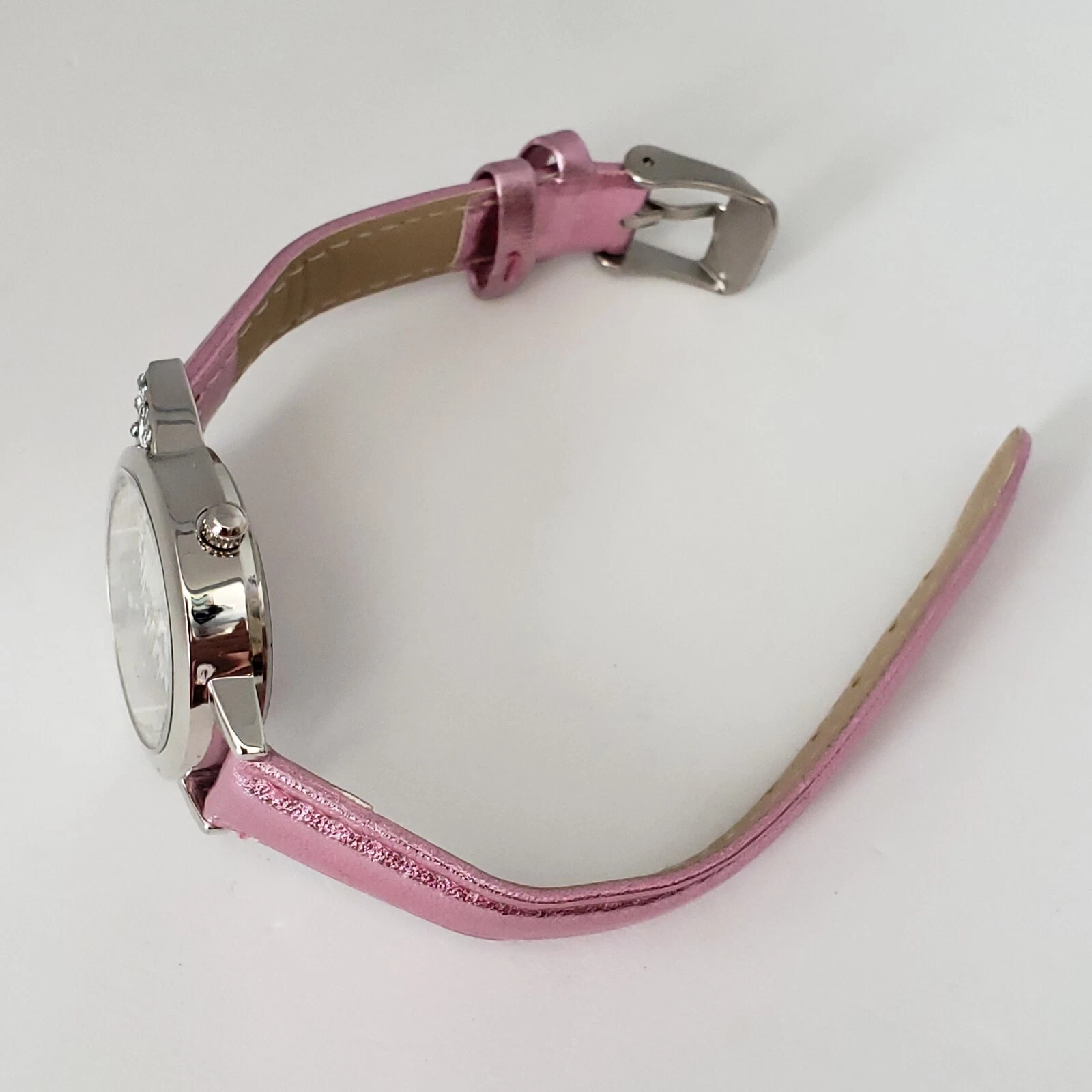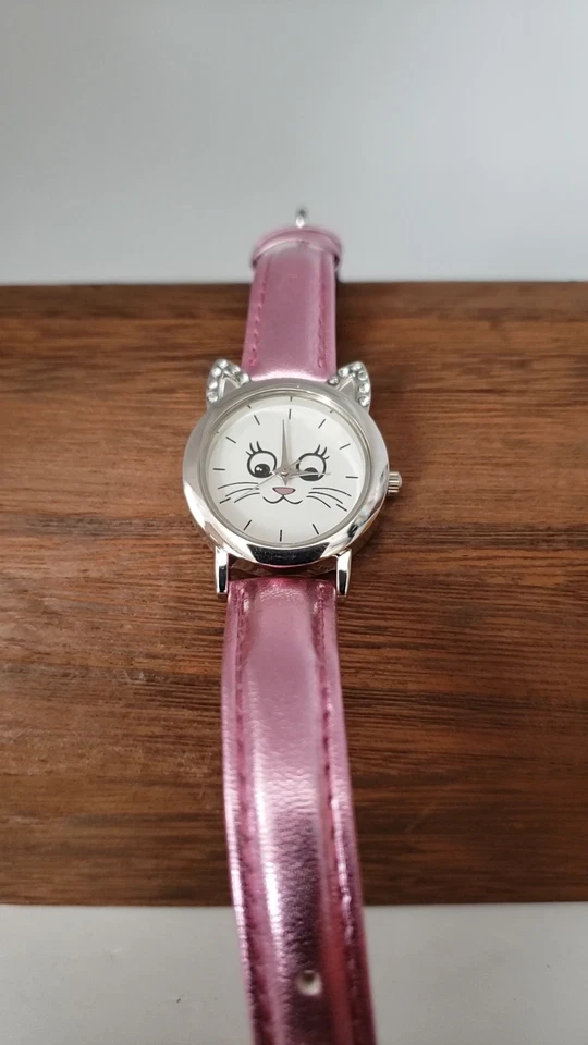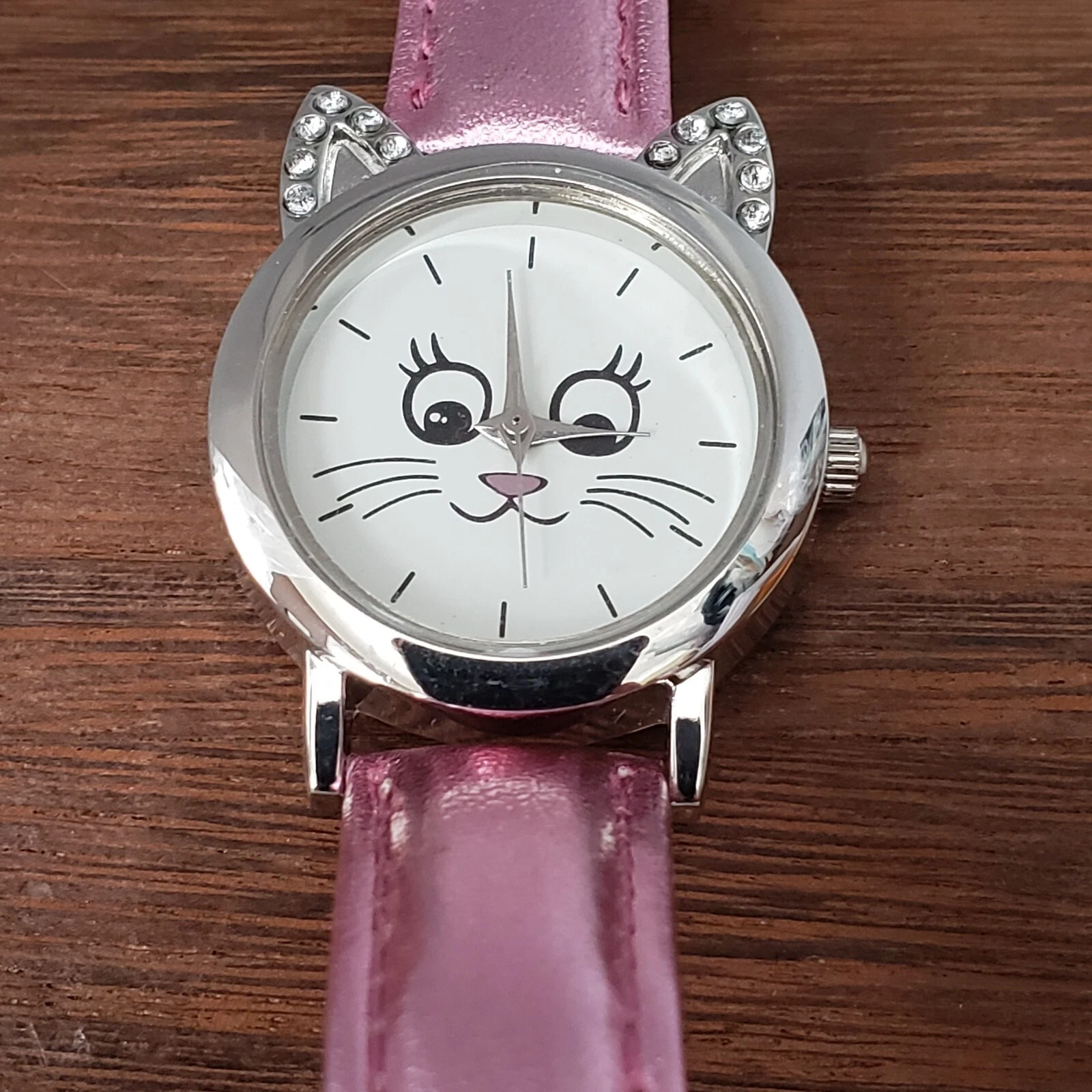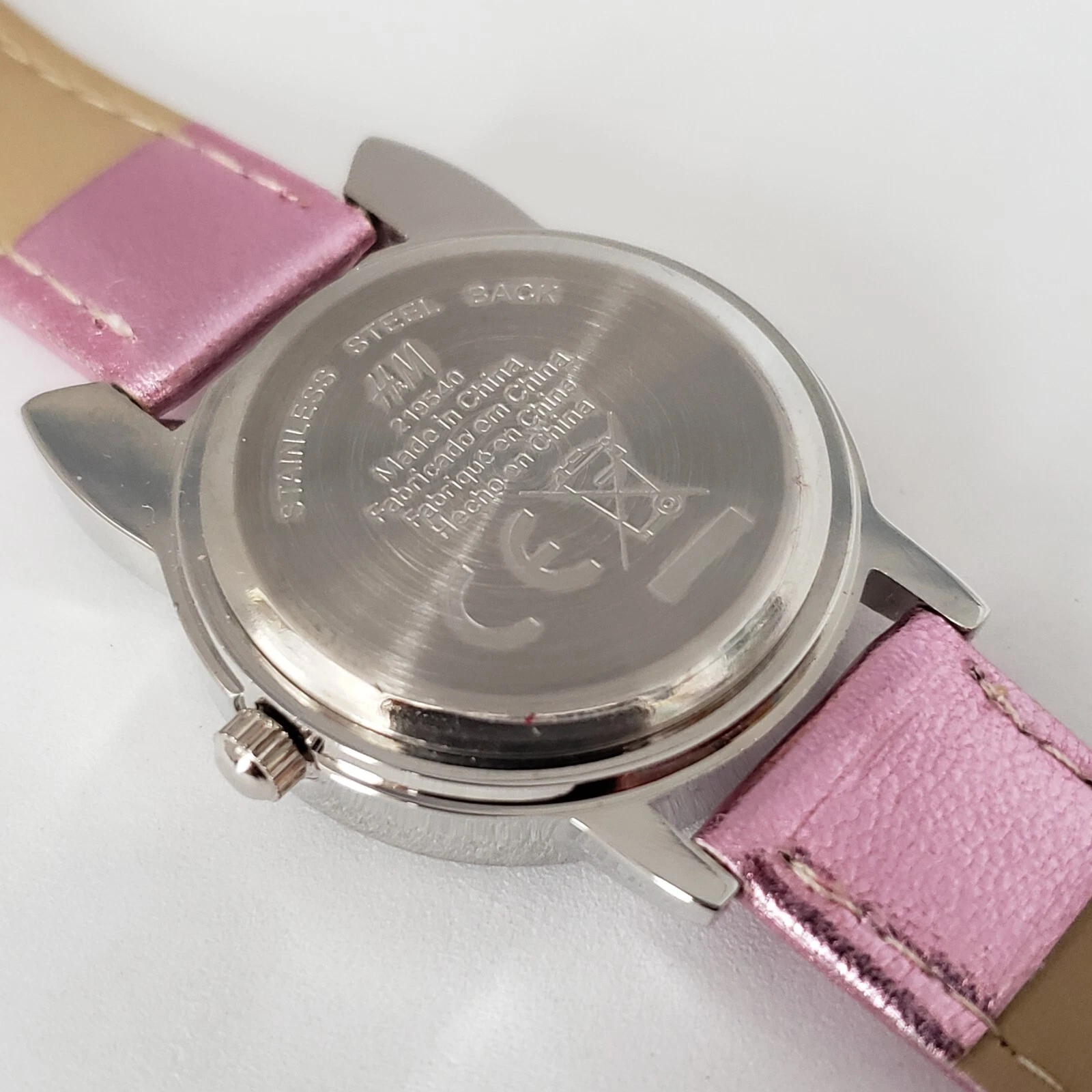 H&M Rhinestone Kitty Metallic Pink Band Watch