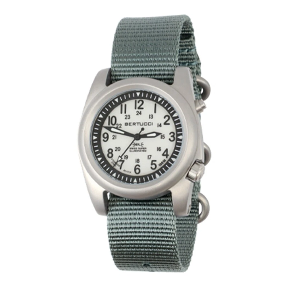 Bertucci Mens Ghost Gray Dial Vintage Drab Nylon Band Quartz Watch - 22033