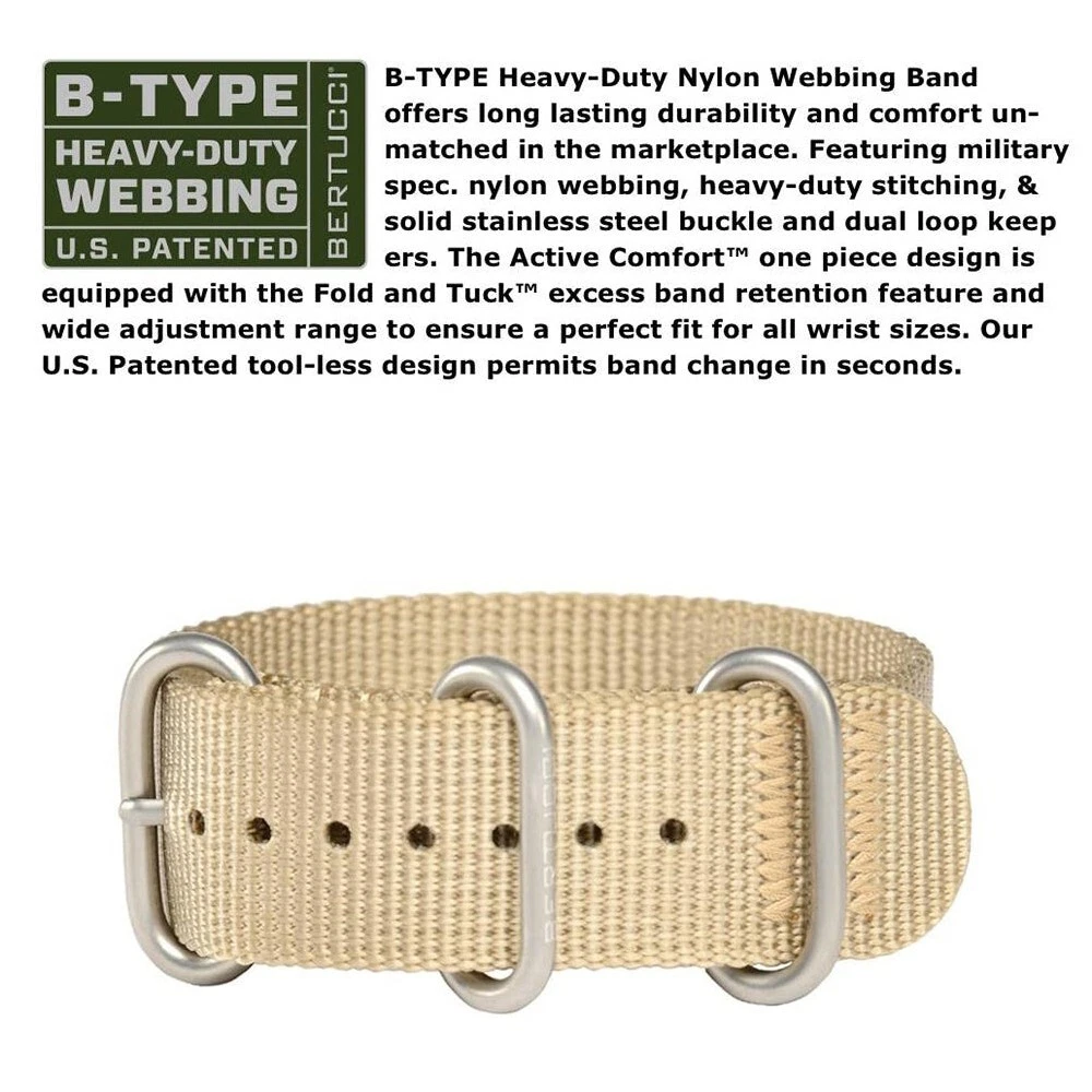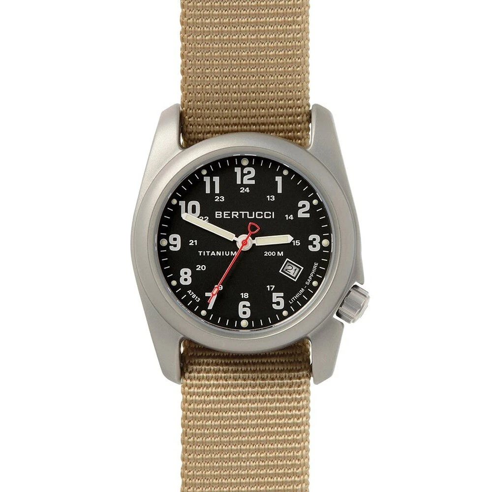 Bertucci Mens A-2t Titanium Original Classic Nylon Strap Black Dial Watch 12724