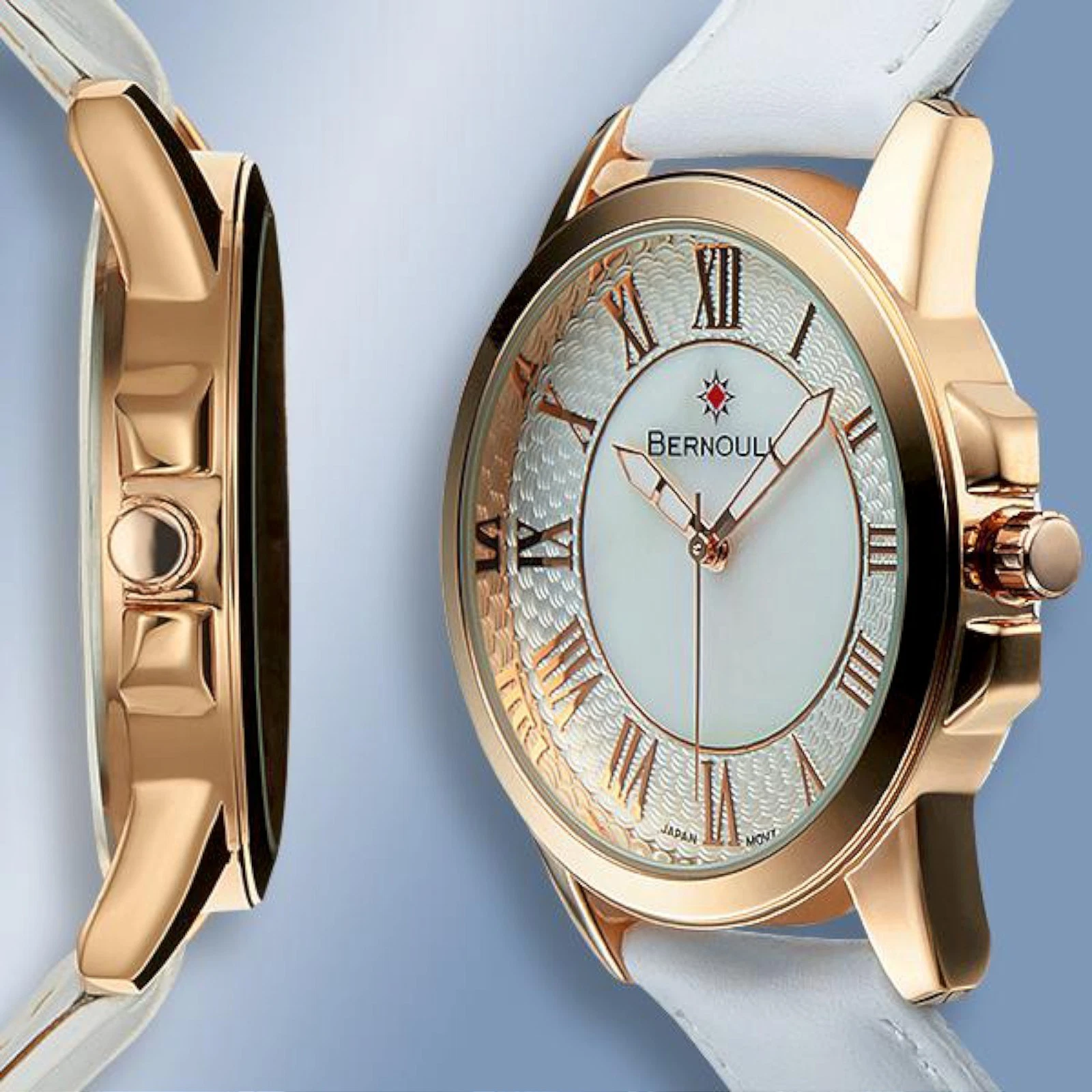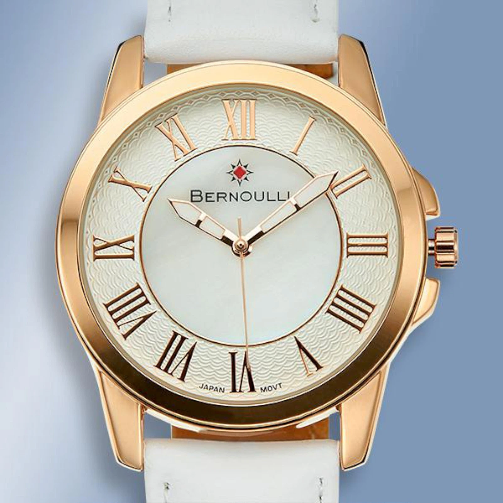 Bernoulli 9843 Faun Womens Fashion Rose Gold Bezel MOP Dial Leather Watch