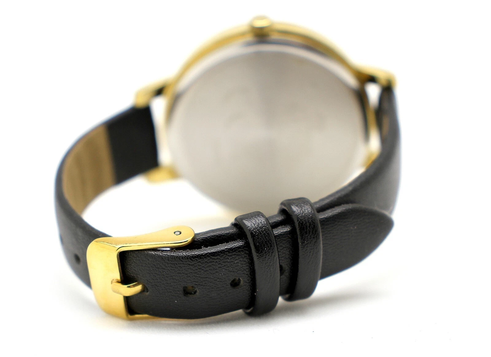 H&M Black Gold Tone Leather Band Women Watch NEEDS Battery