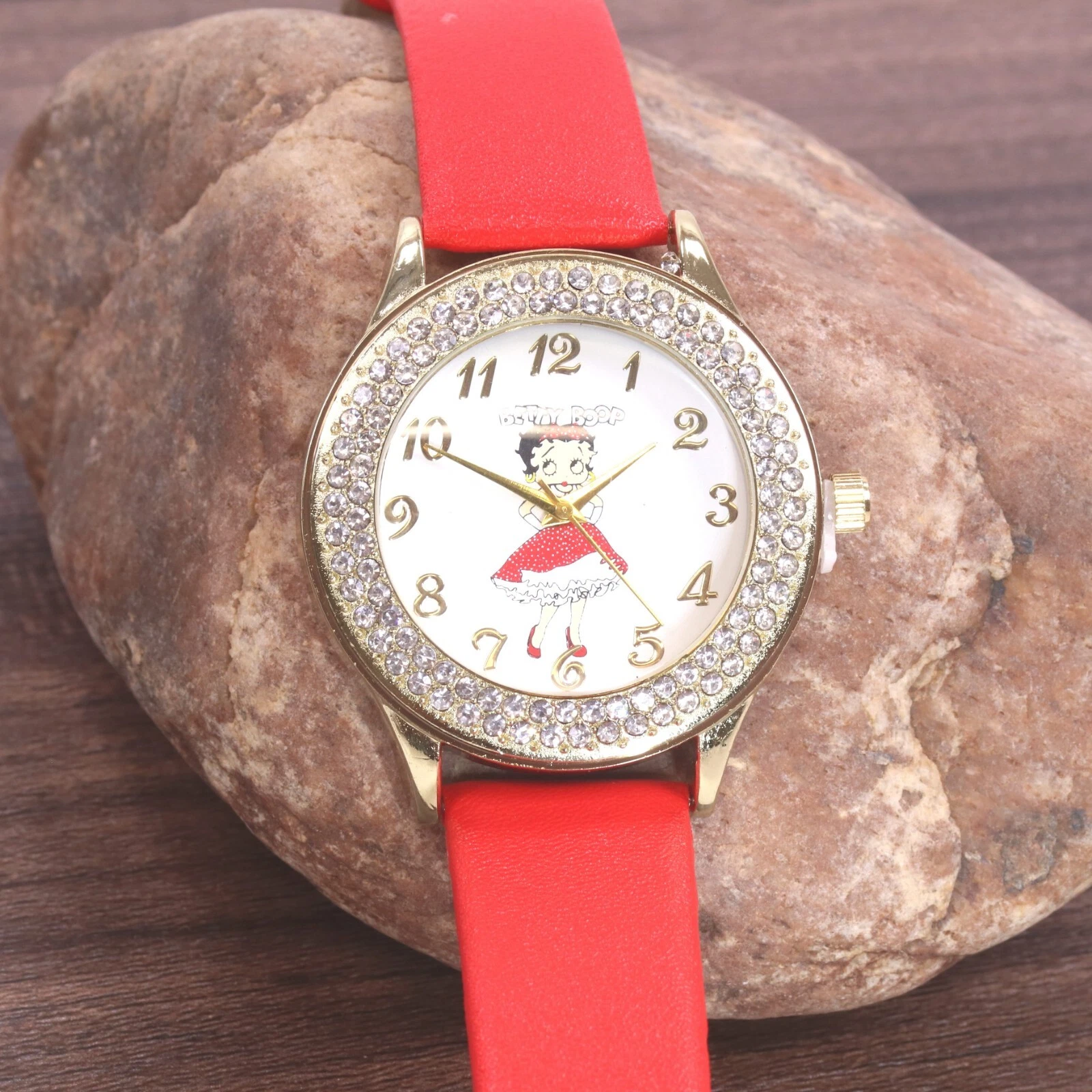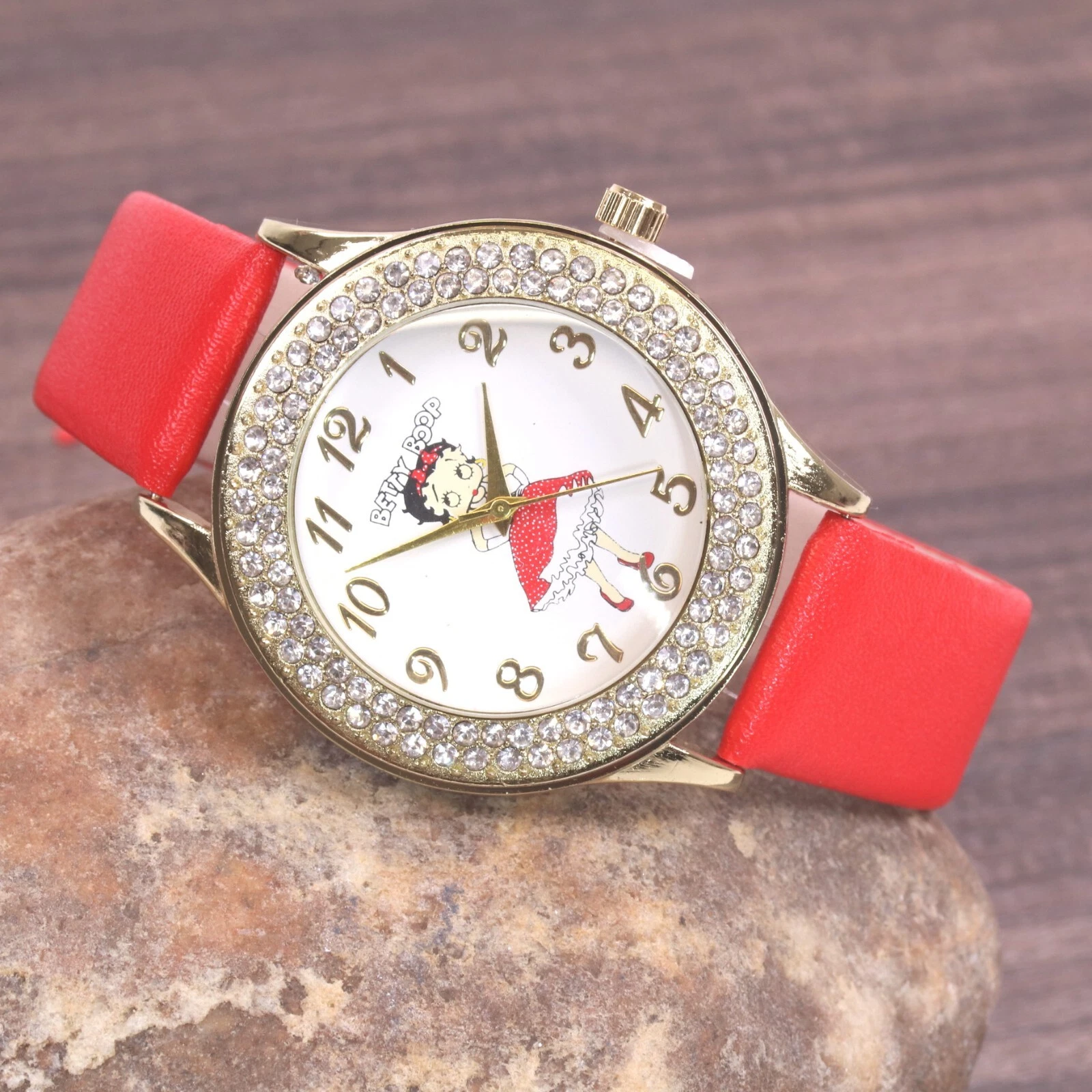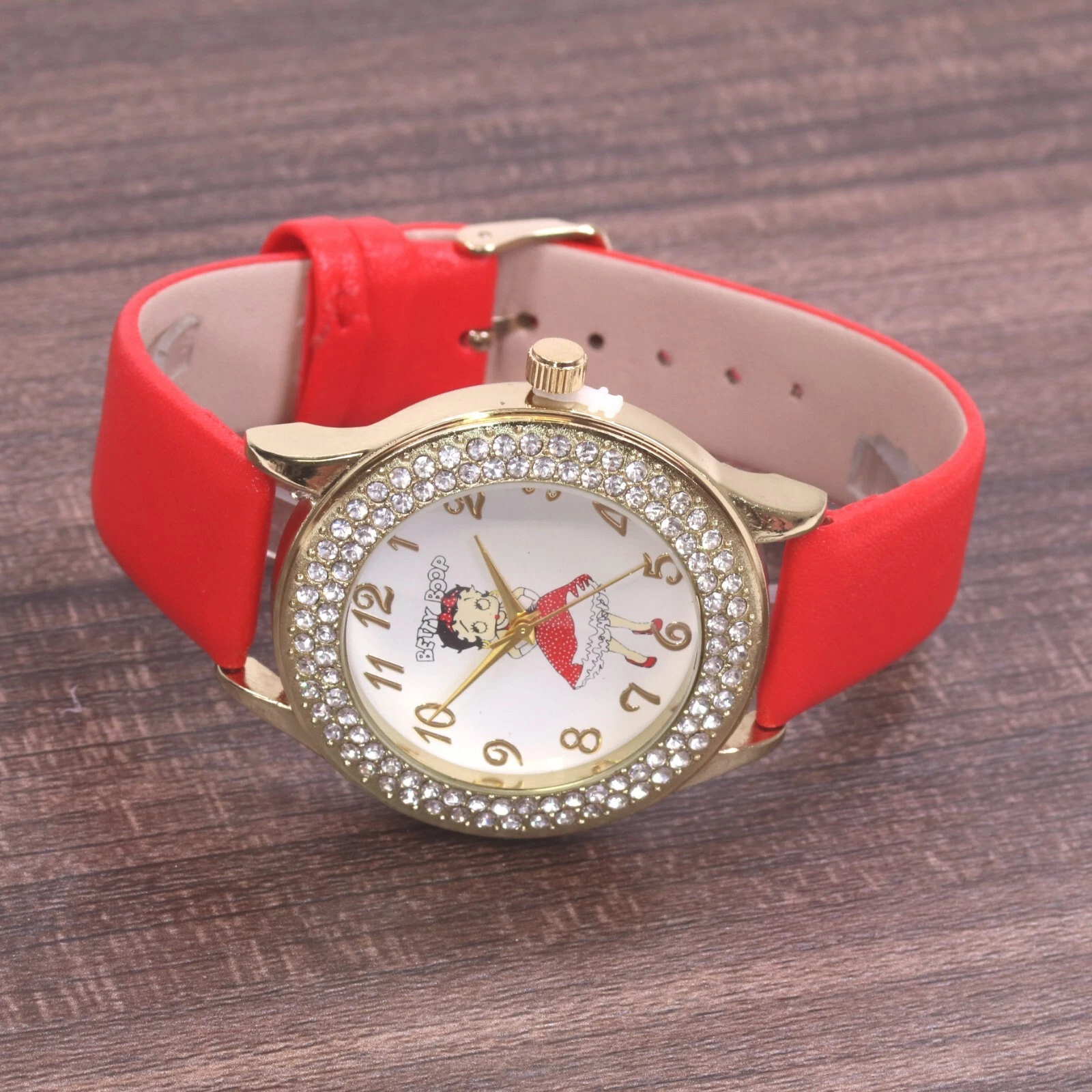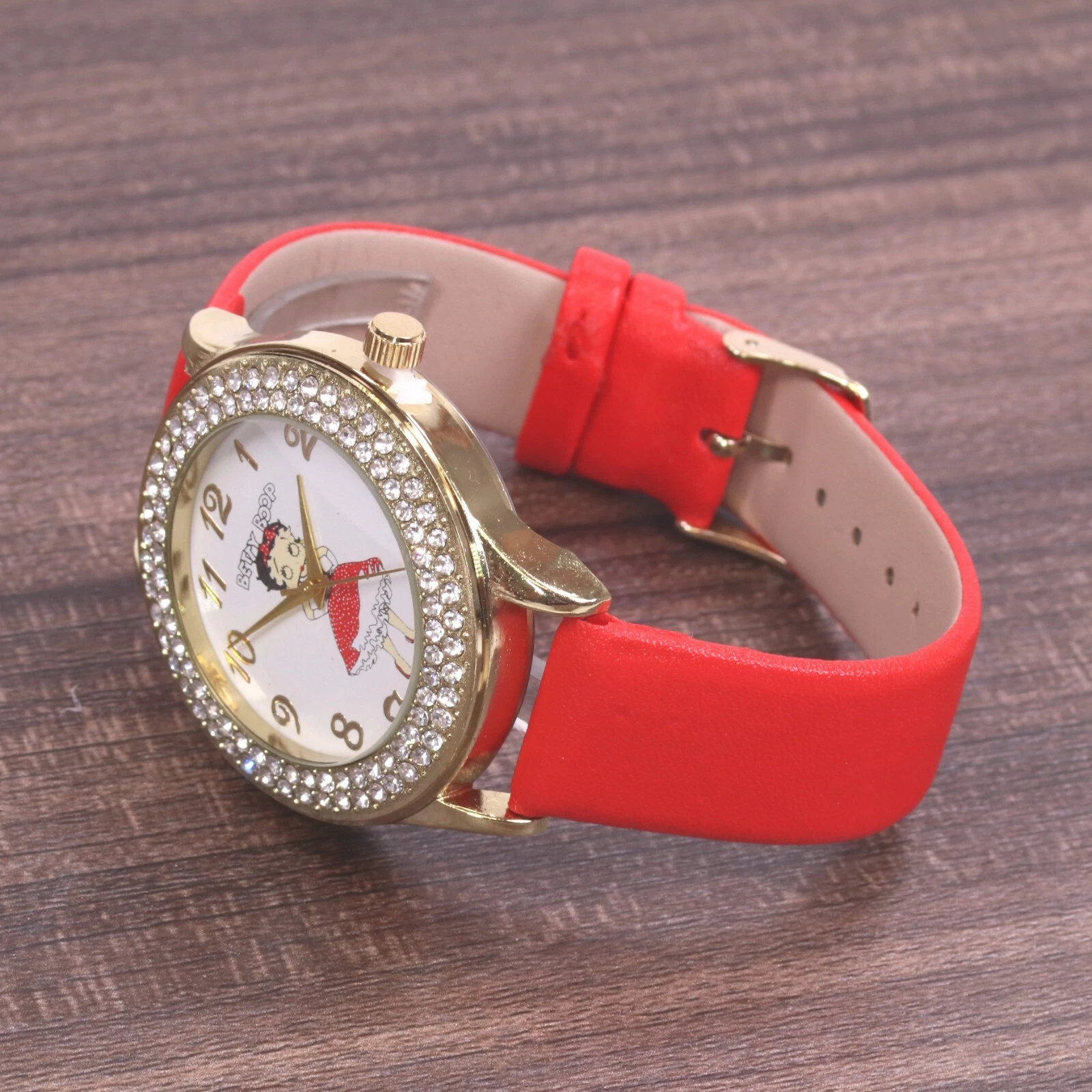 Betty Boop Women's Gold Finish Analog Wristwatch Metal Red Leather Band
