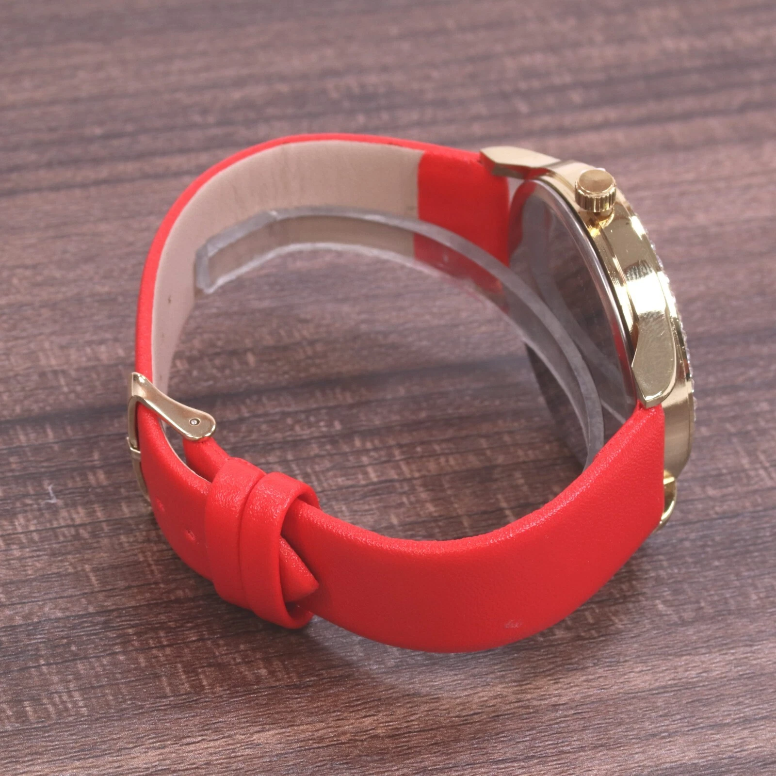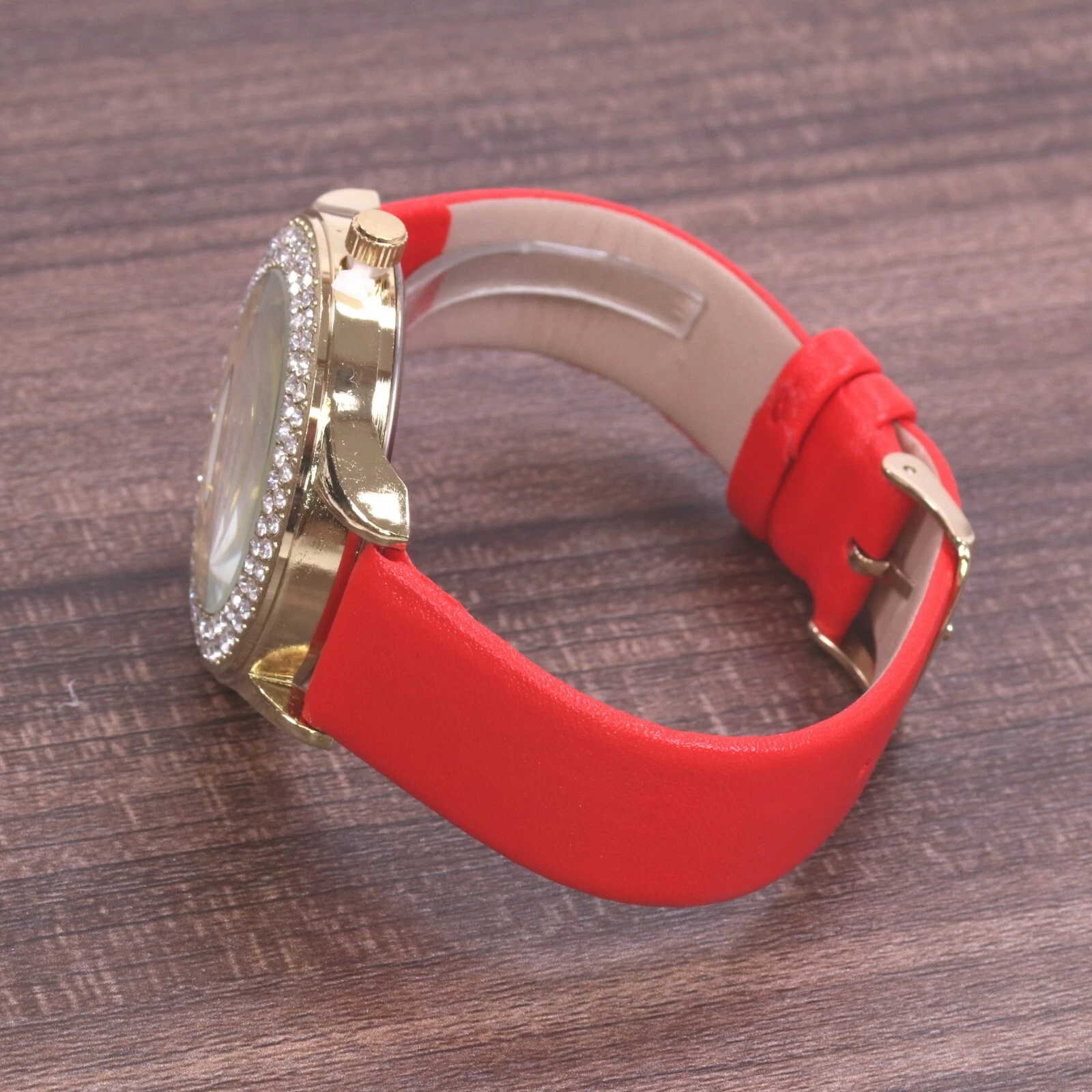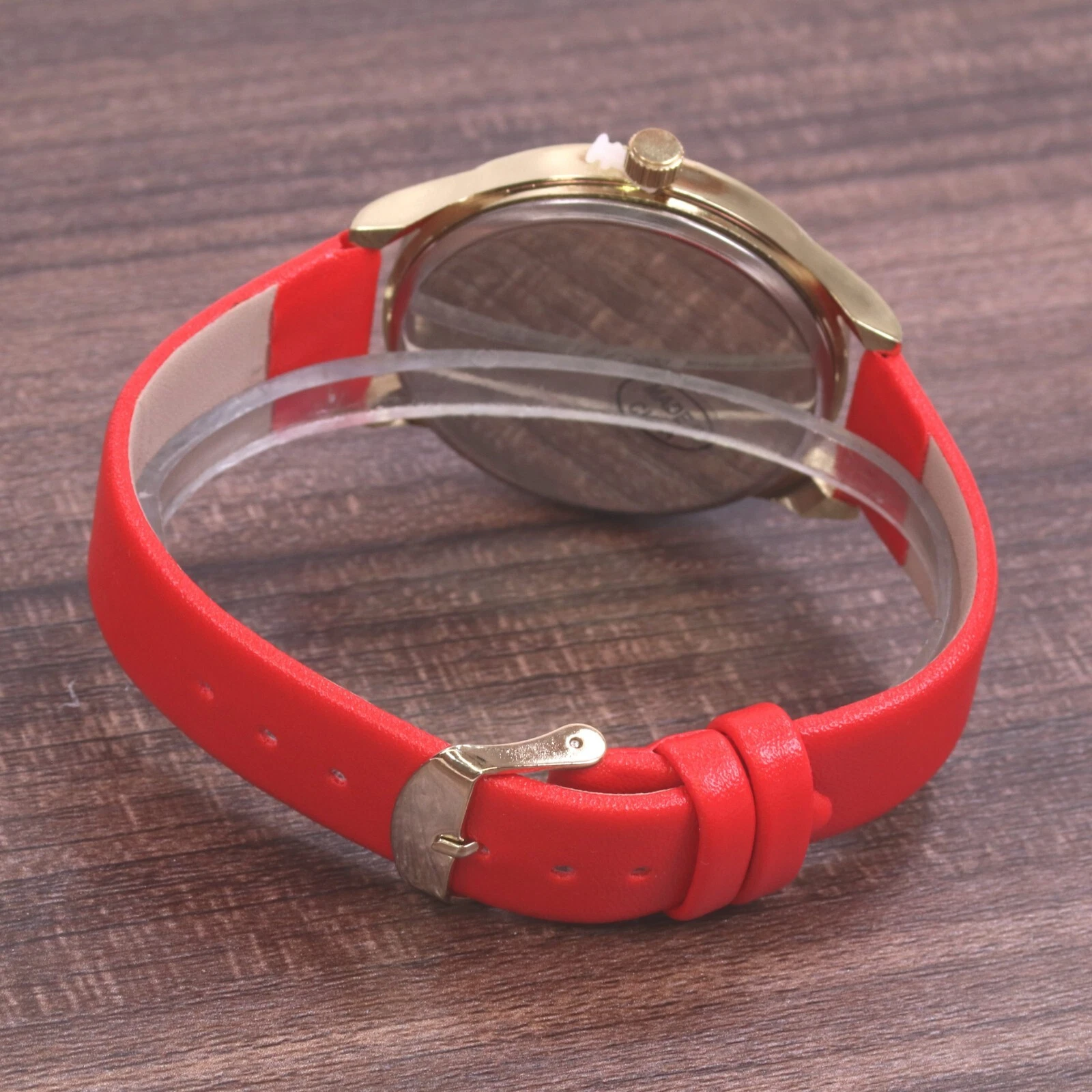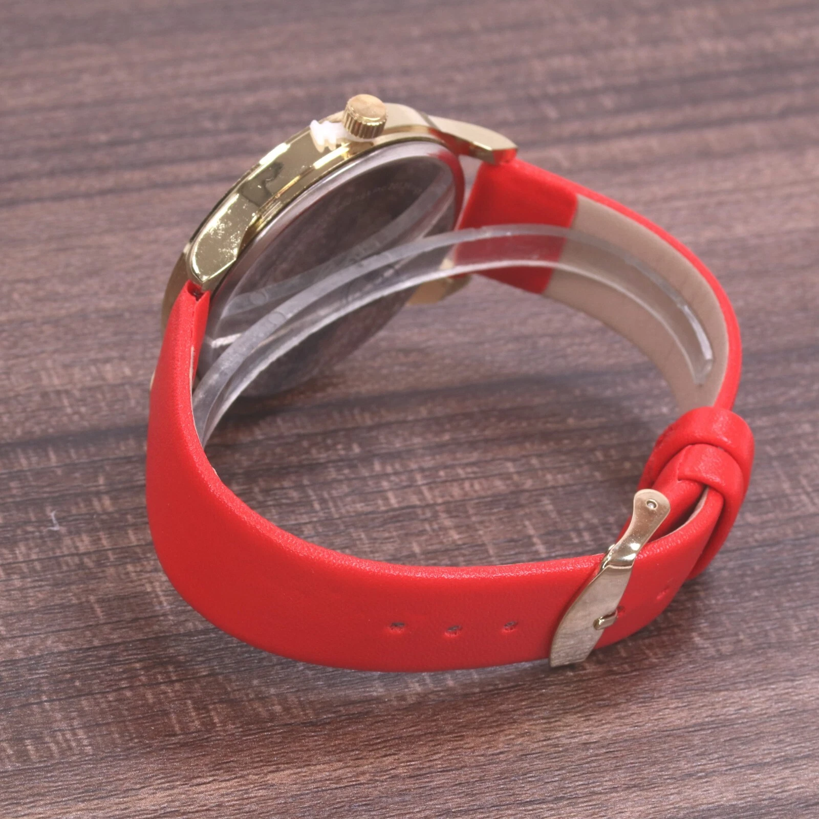 Betty Boop Women's Gold Finish Analog Wristwatch Metal Red Leather Band