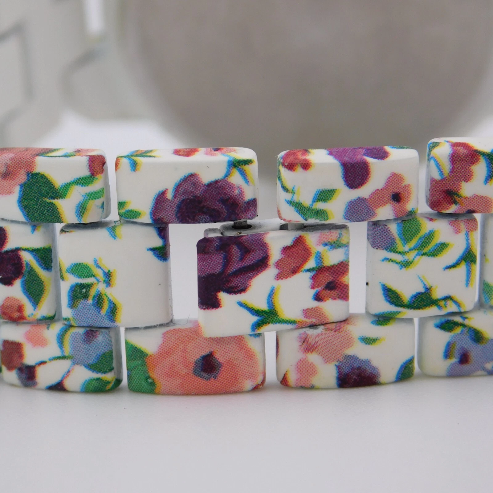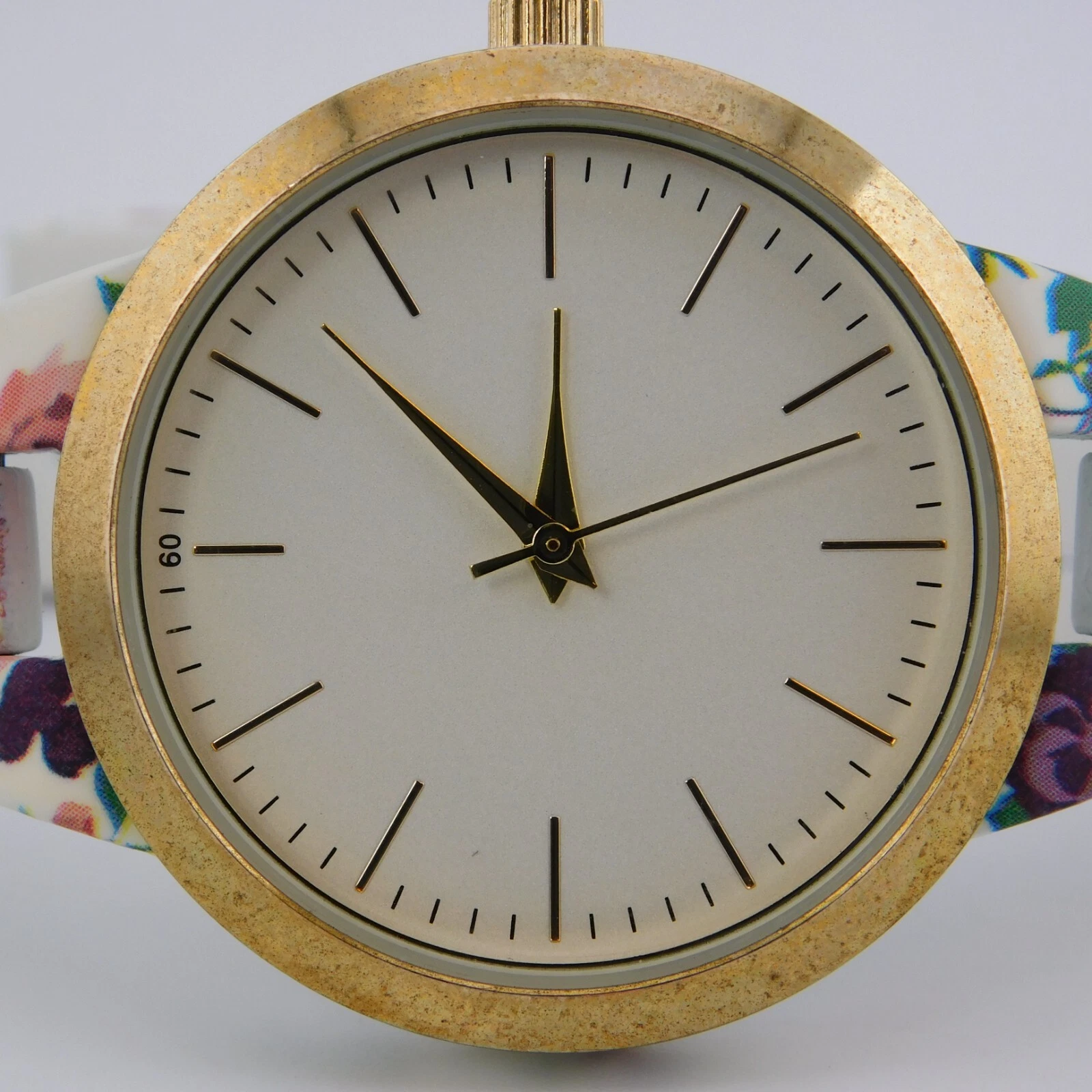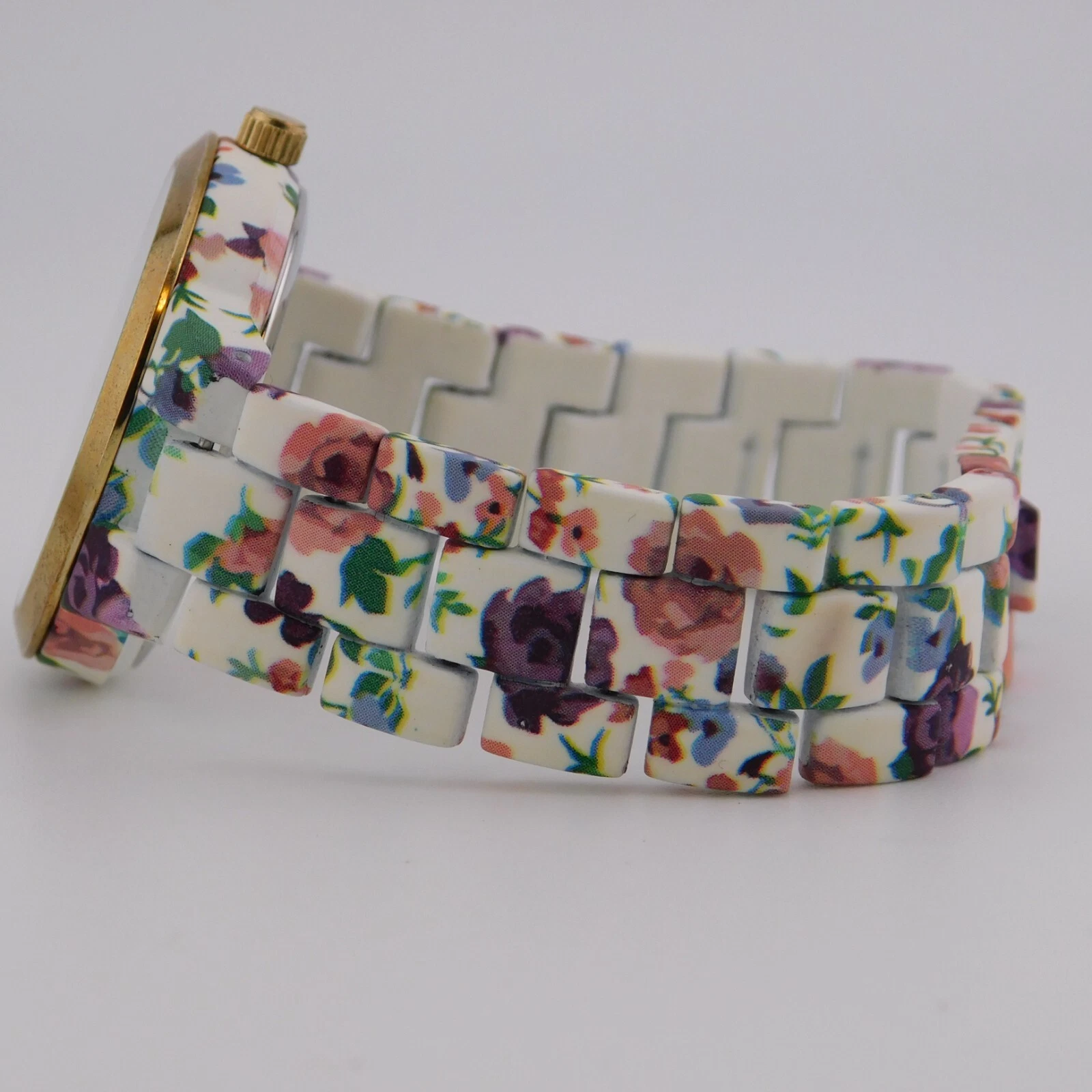 H&M 437740 Floral Pattern Quartz Analog Women's Watch Sz. 6 3/4" New Battery