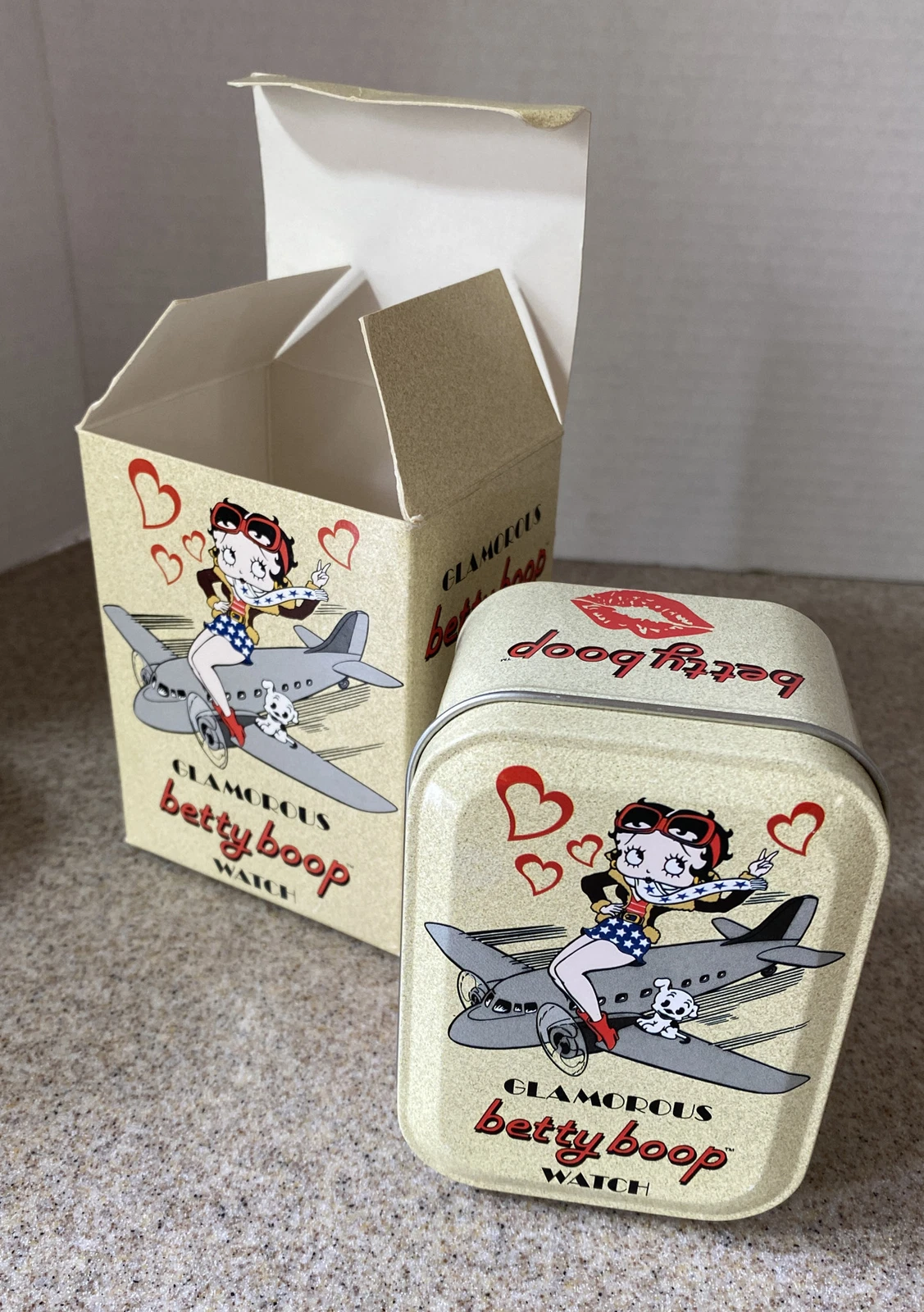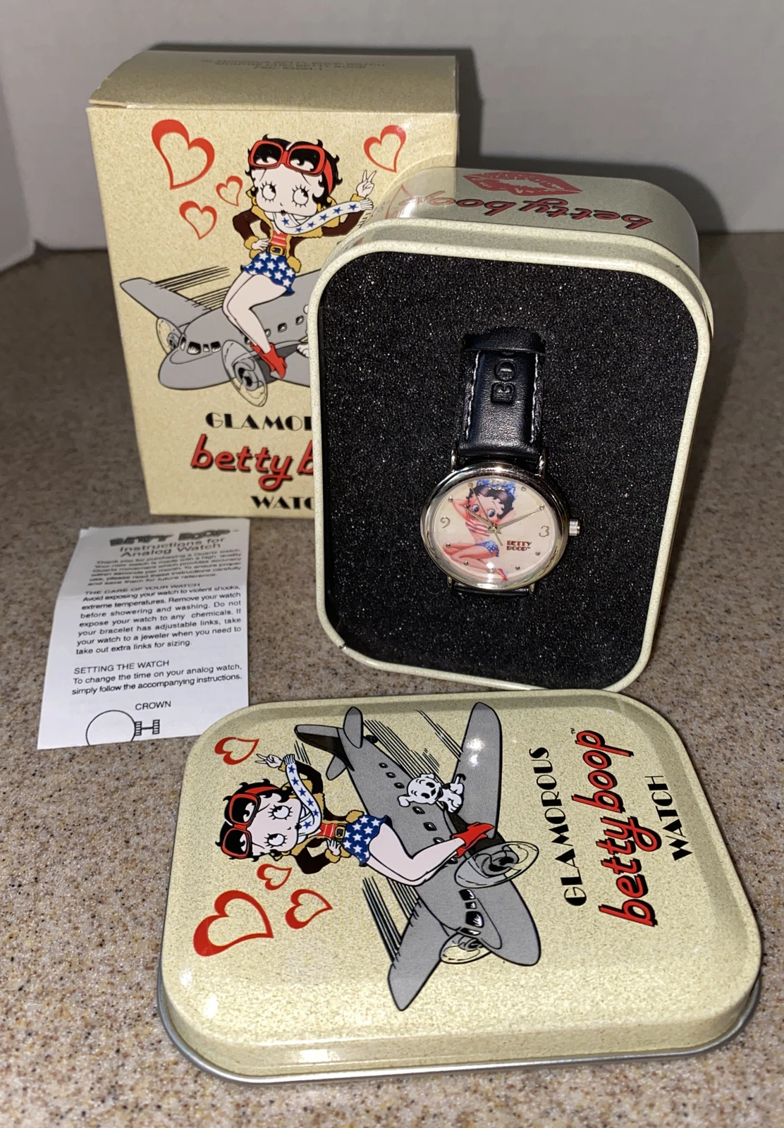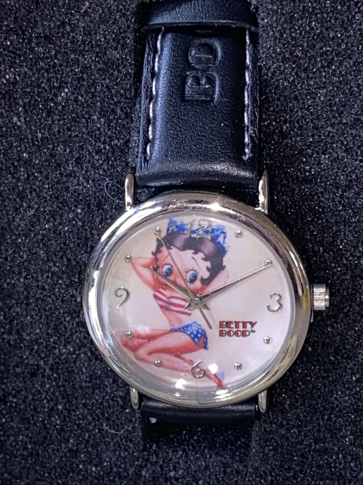 2004 Glamorous Betty Boop Fashion Watch Patriotic USA Flag, NIB, Leather, Japan