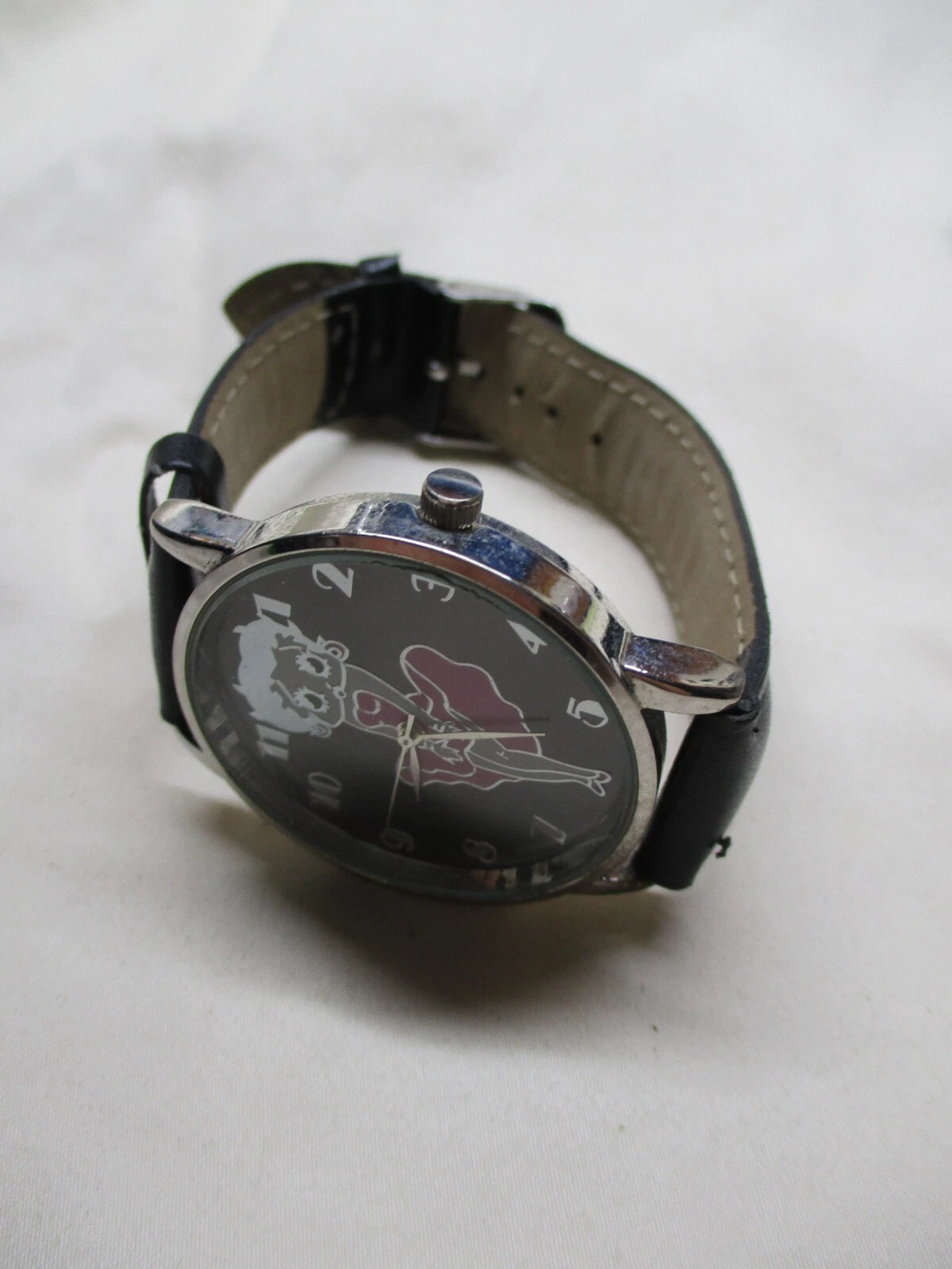 Betty Boop - Silver Tone - 38mm - Analog Watch - Faux Leather Band - New Battery