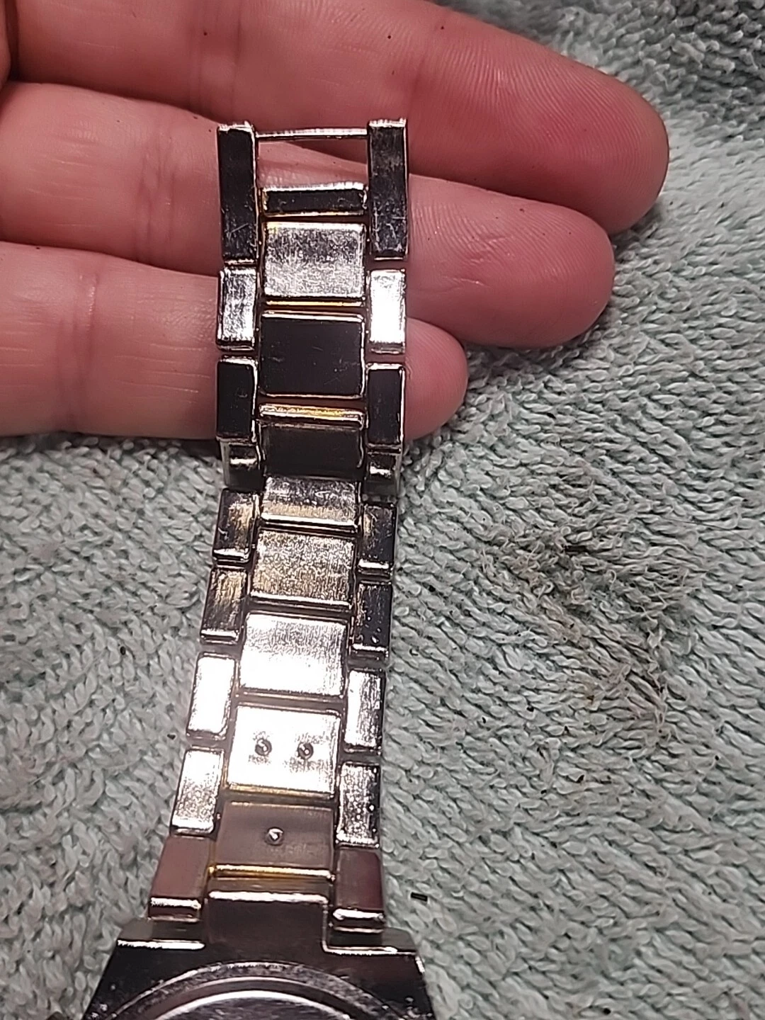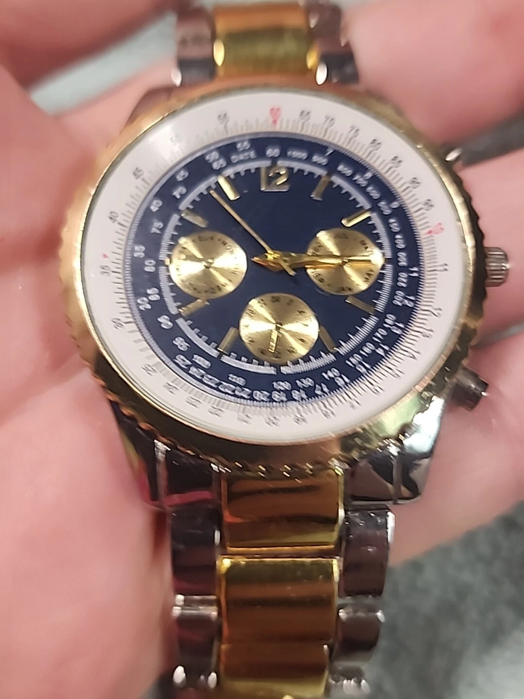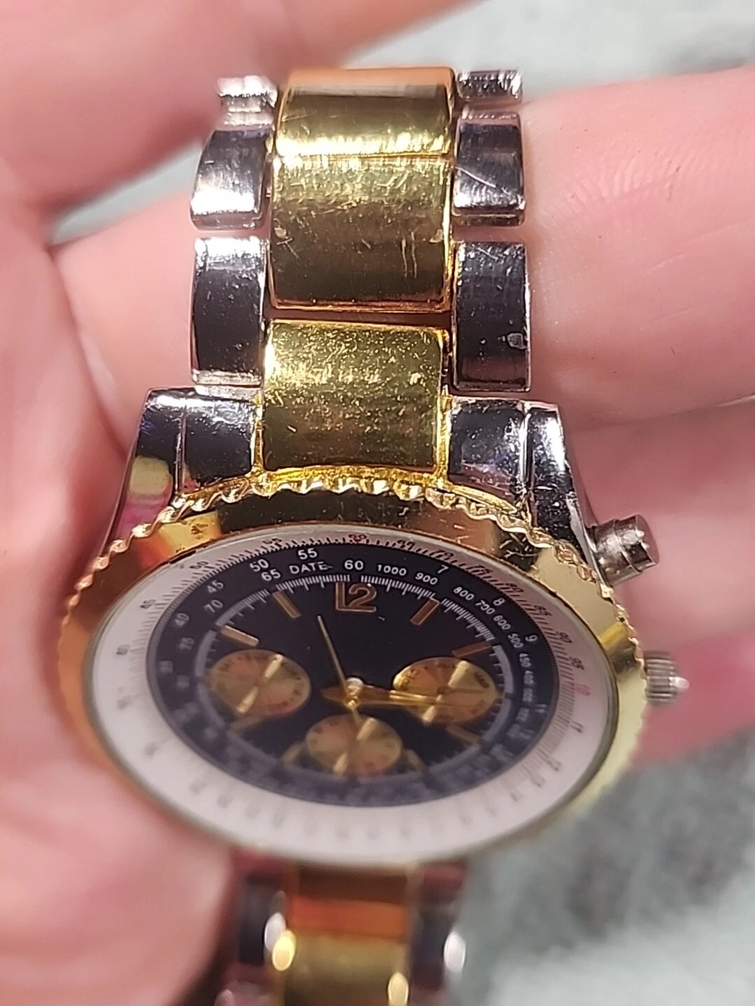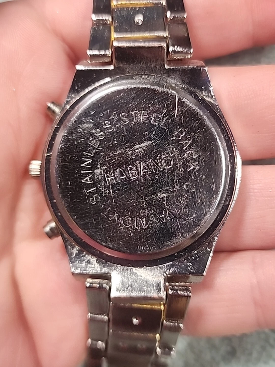 HABAND SILVER TONE CHRONOGRAPH WATCH NEW BATTERY Works Silver Gold Tones