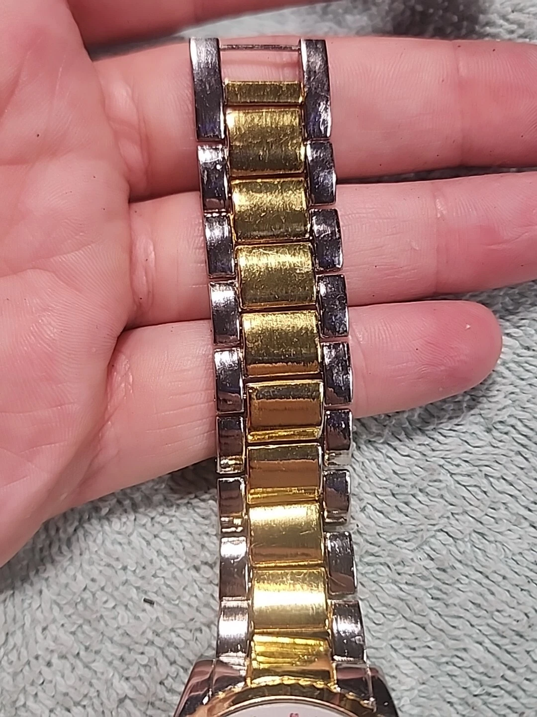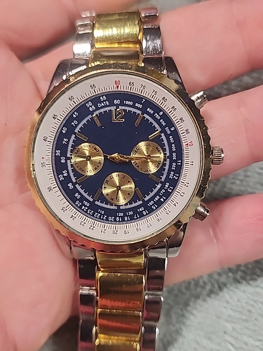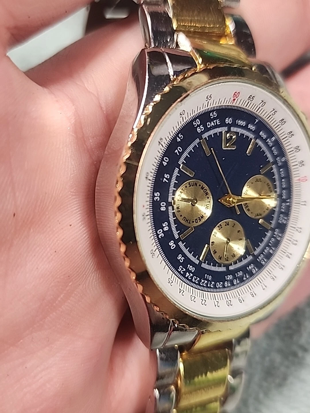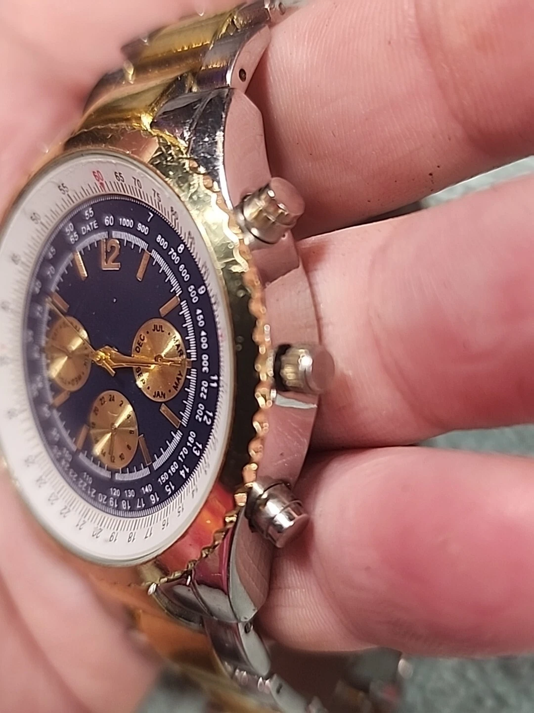 HABAND SILVER TONE CHRONOGRAPH WATCH NEW BATTERY Works Silver Gold Tones