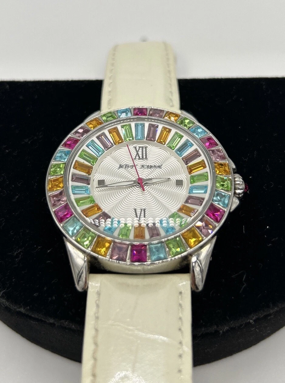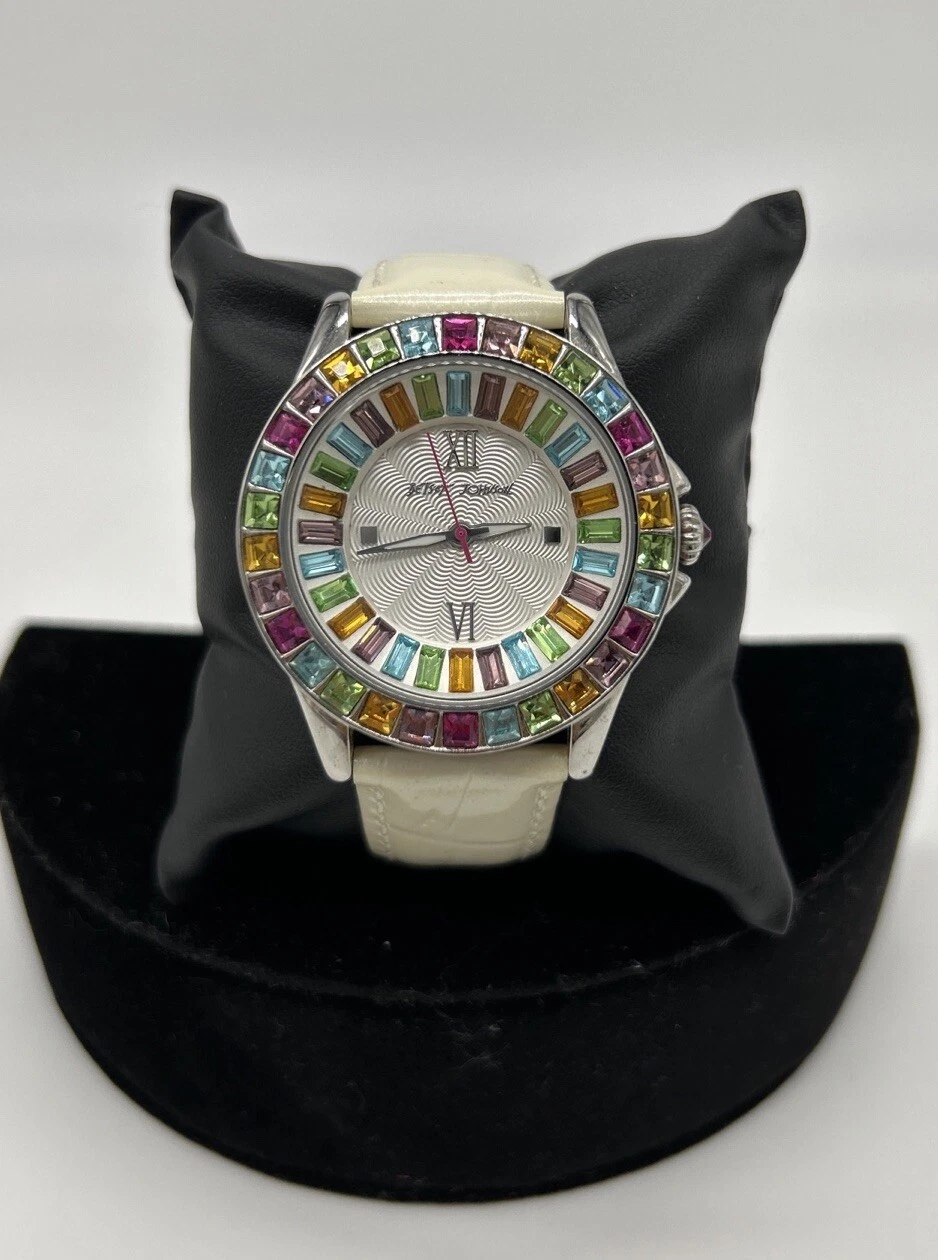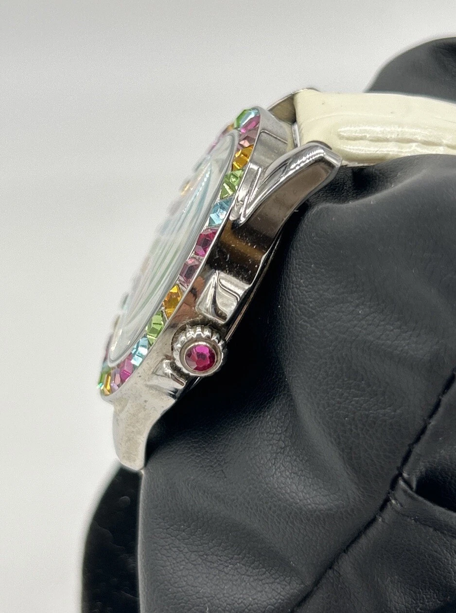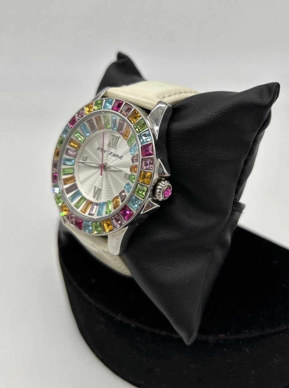 BETSY JOHNSON WOMEN MULTI COLOR SILVER WHITE LEATHER WATCH - BJ00004-18 - NICE!