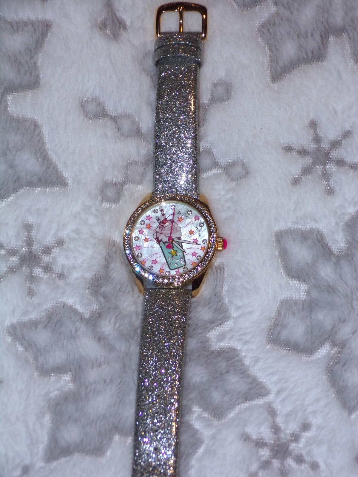 BETSEY JOHNSON Milkshake Women's Watch Silver Glitter Rhinestones RARE HTF
