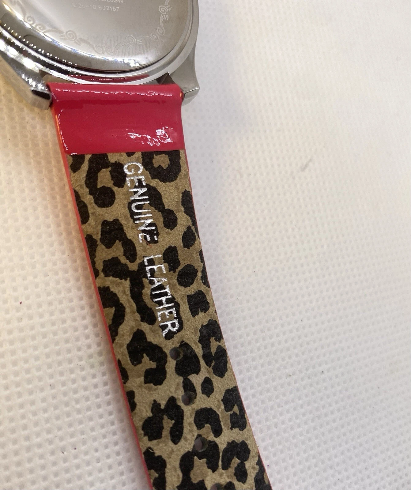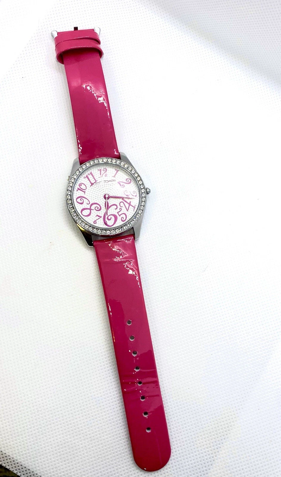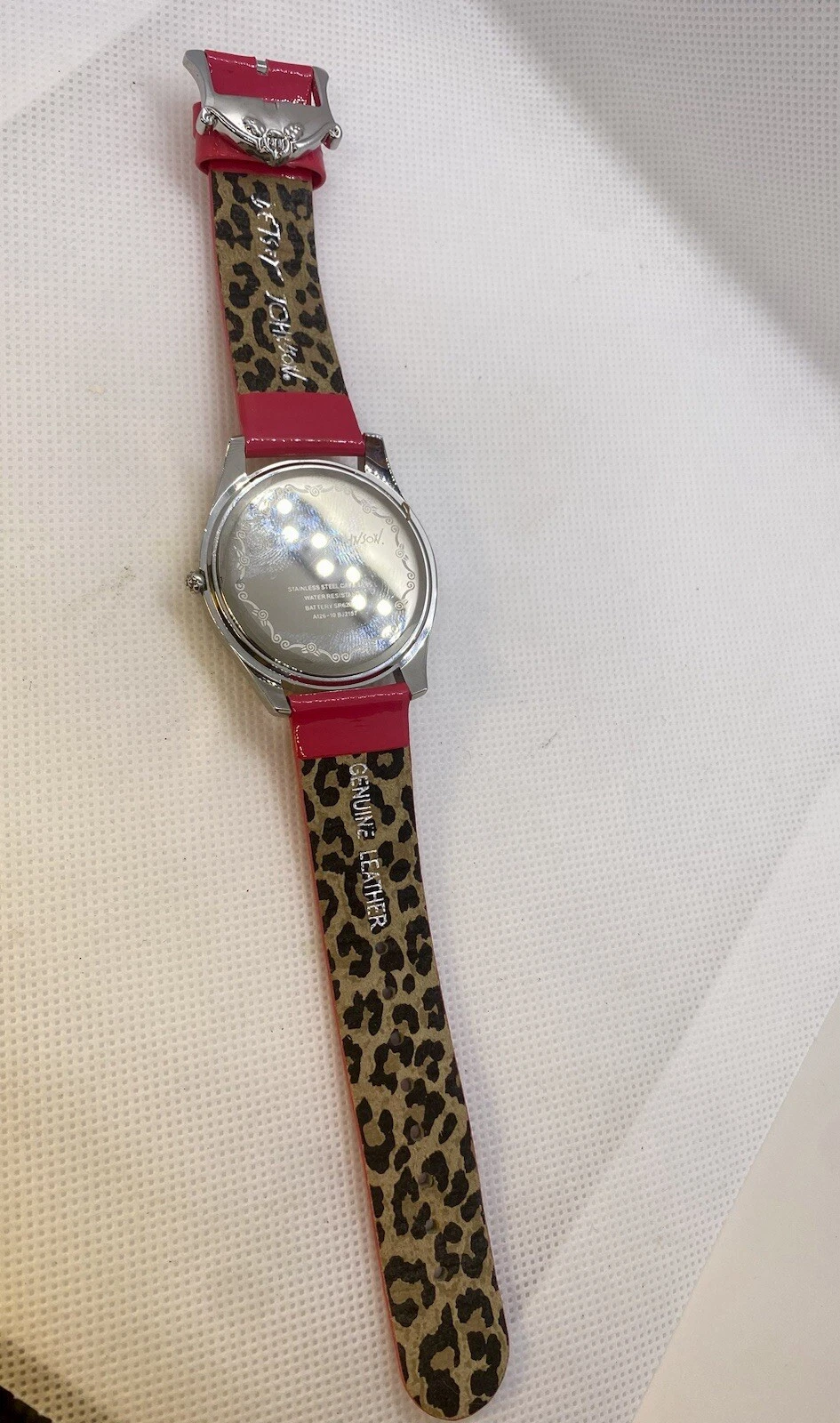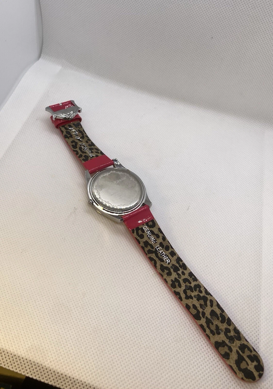 Betsey Johnson Watch Hot Pink Leather Band Rhinestone & Heart Accented Face