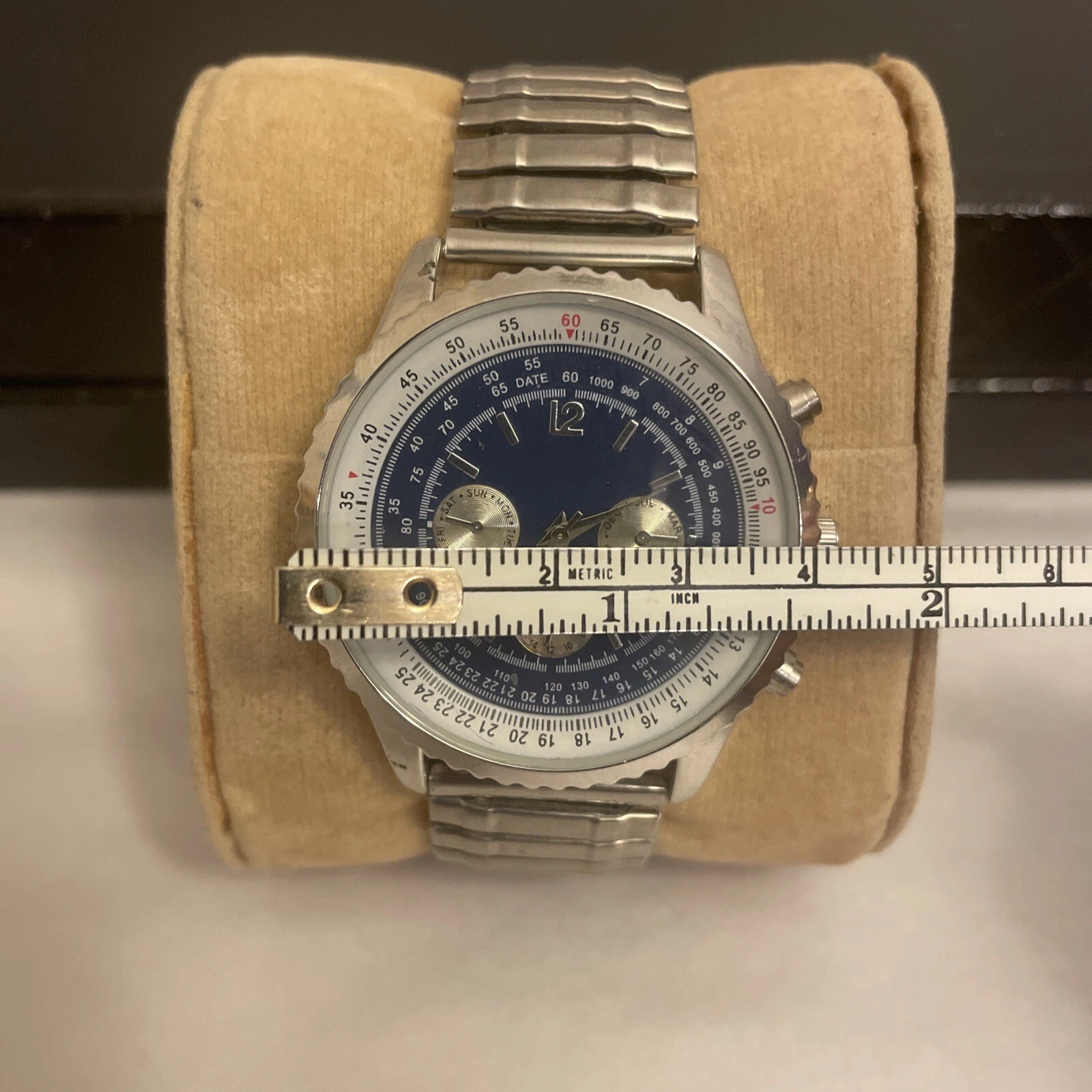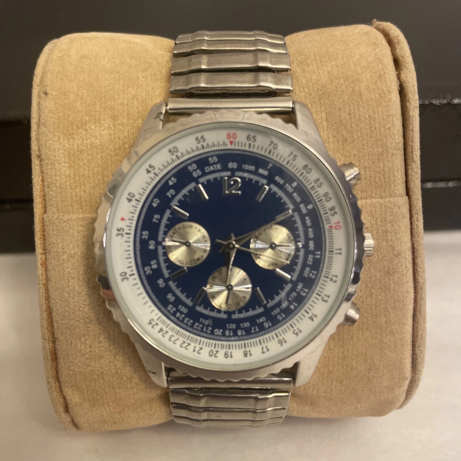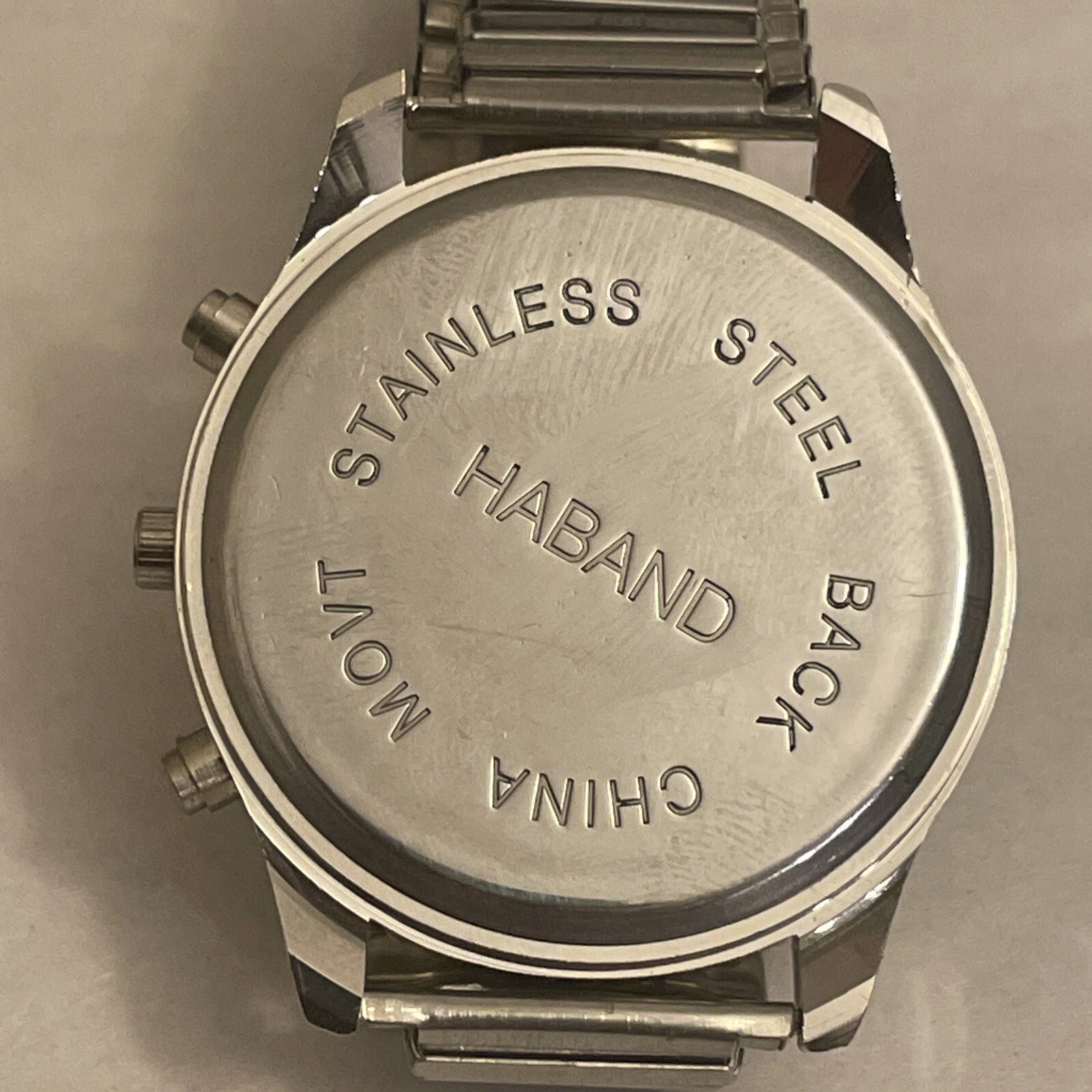HABAND SILVER TONE CHRONOGRAPH WATCH WRISTWATCH NEW BATTERY