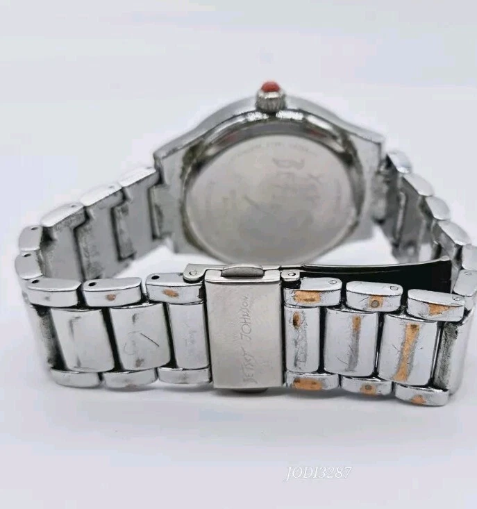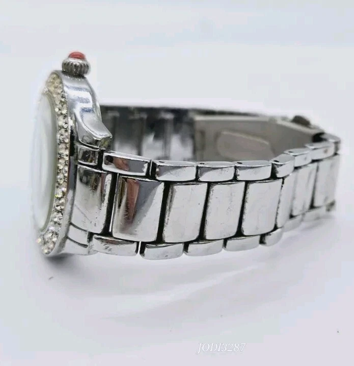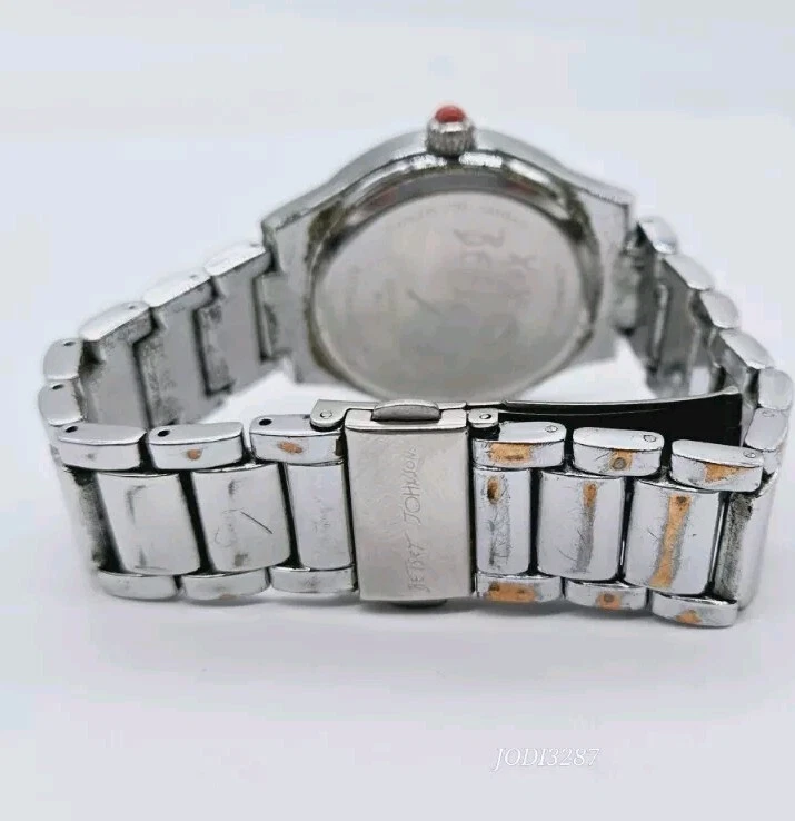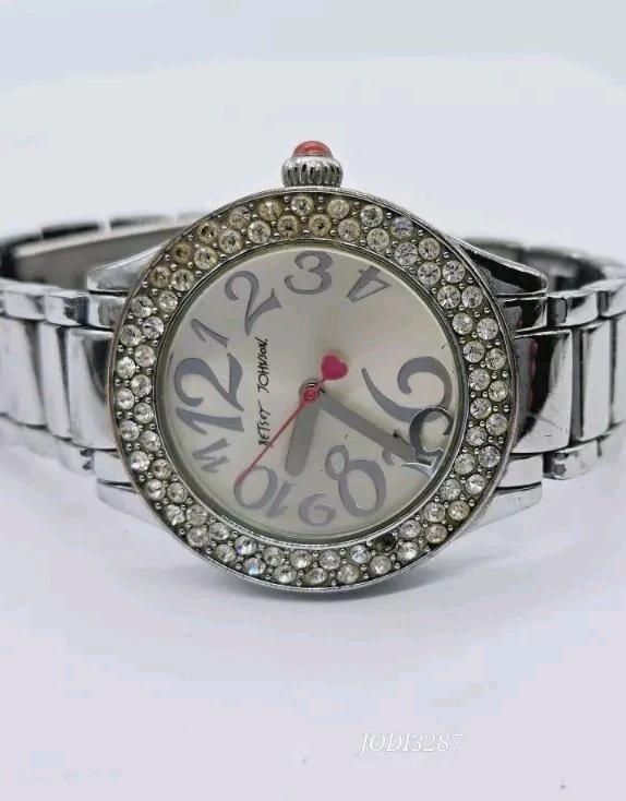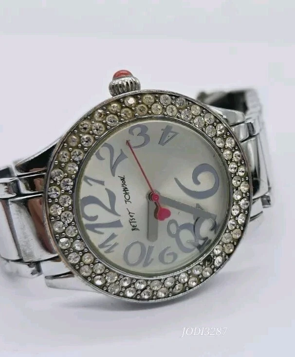 Betsey Johnson Silver Tone Band Crystal Watch New Battery LARGE Numbers BJ00191