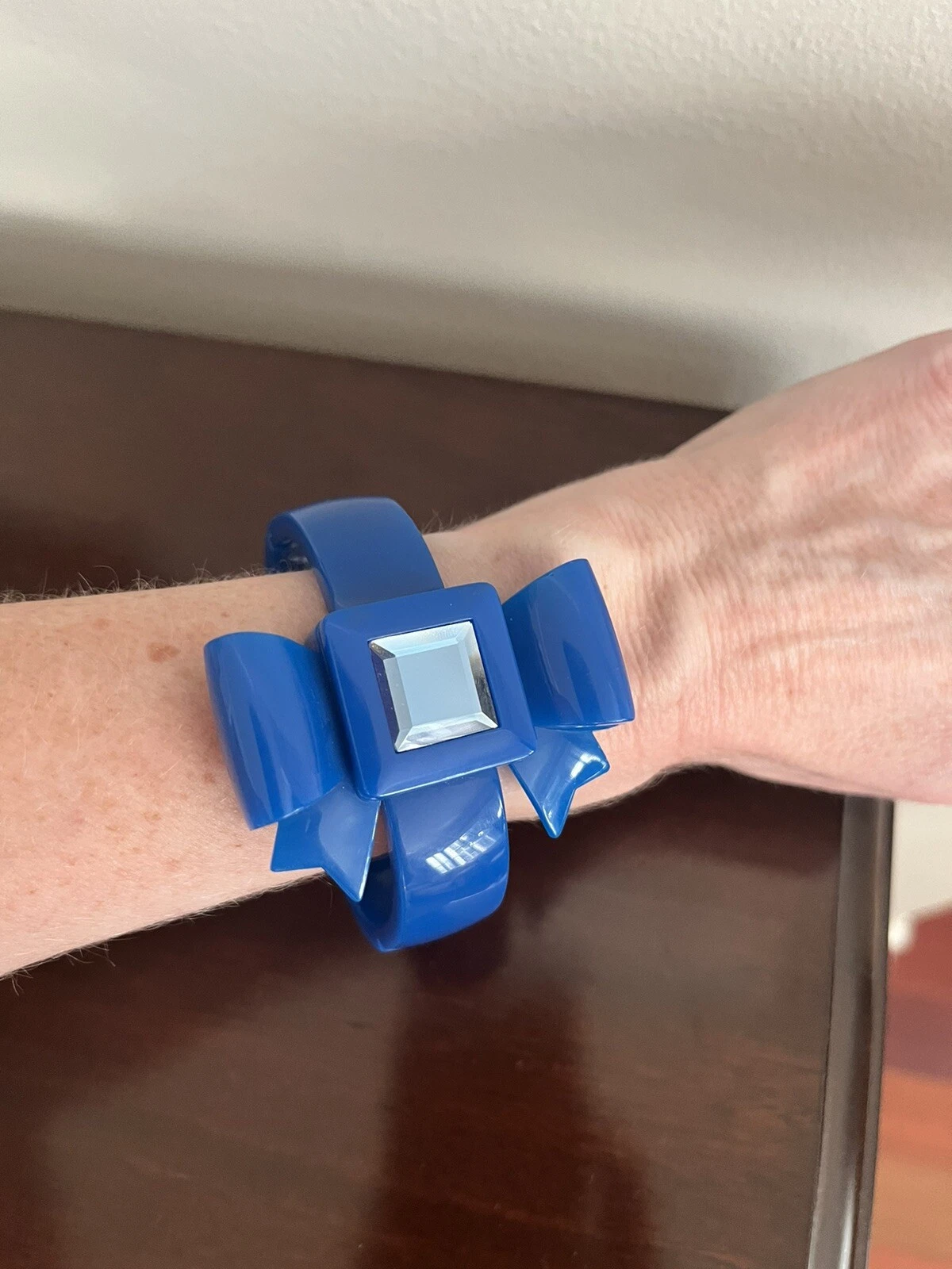 Rare!  Betsey Johnson Lucite Bow Candy Watch Blue Bracelet Bangle Crystal