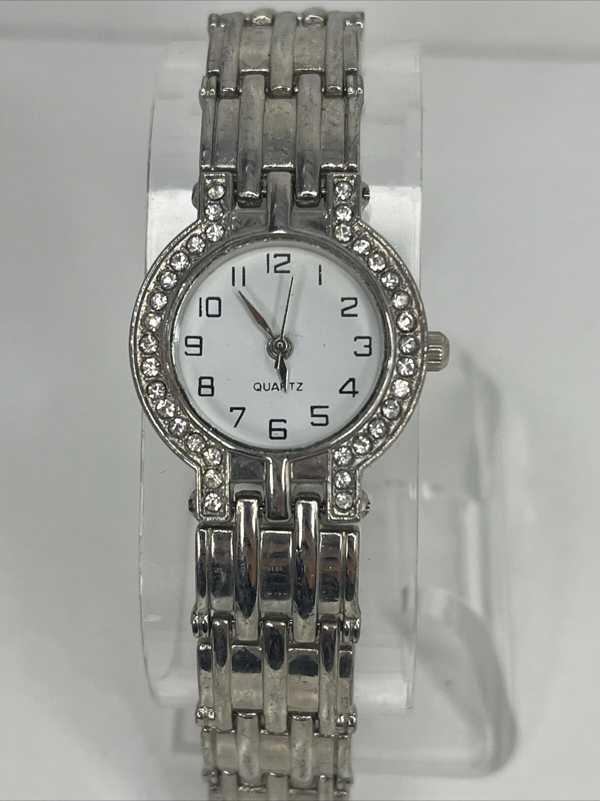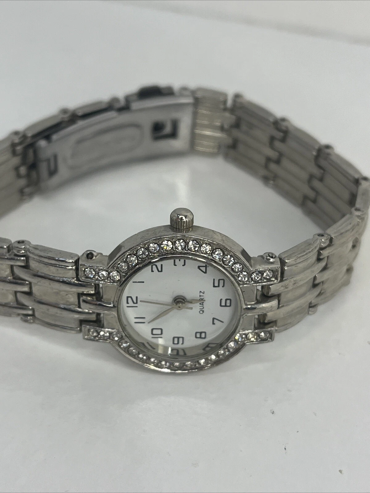 Haband Women's Quartz Watch Silver Tone Band Rhinestone Bezel- New Battery