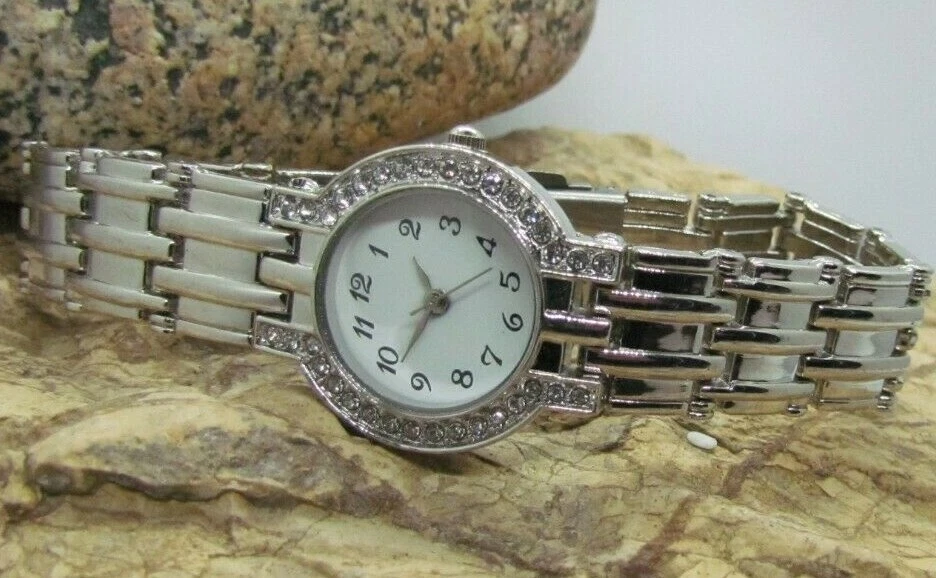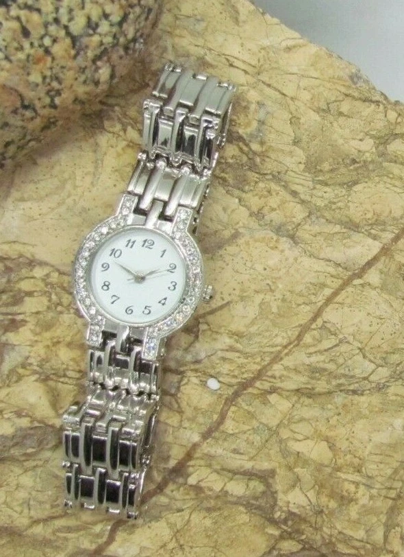 HABAND Rhinestone Bracelet Watch Women's Silver tone NEW BATTERY