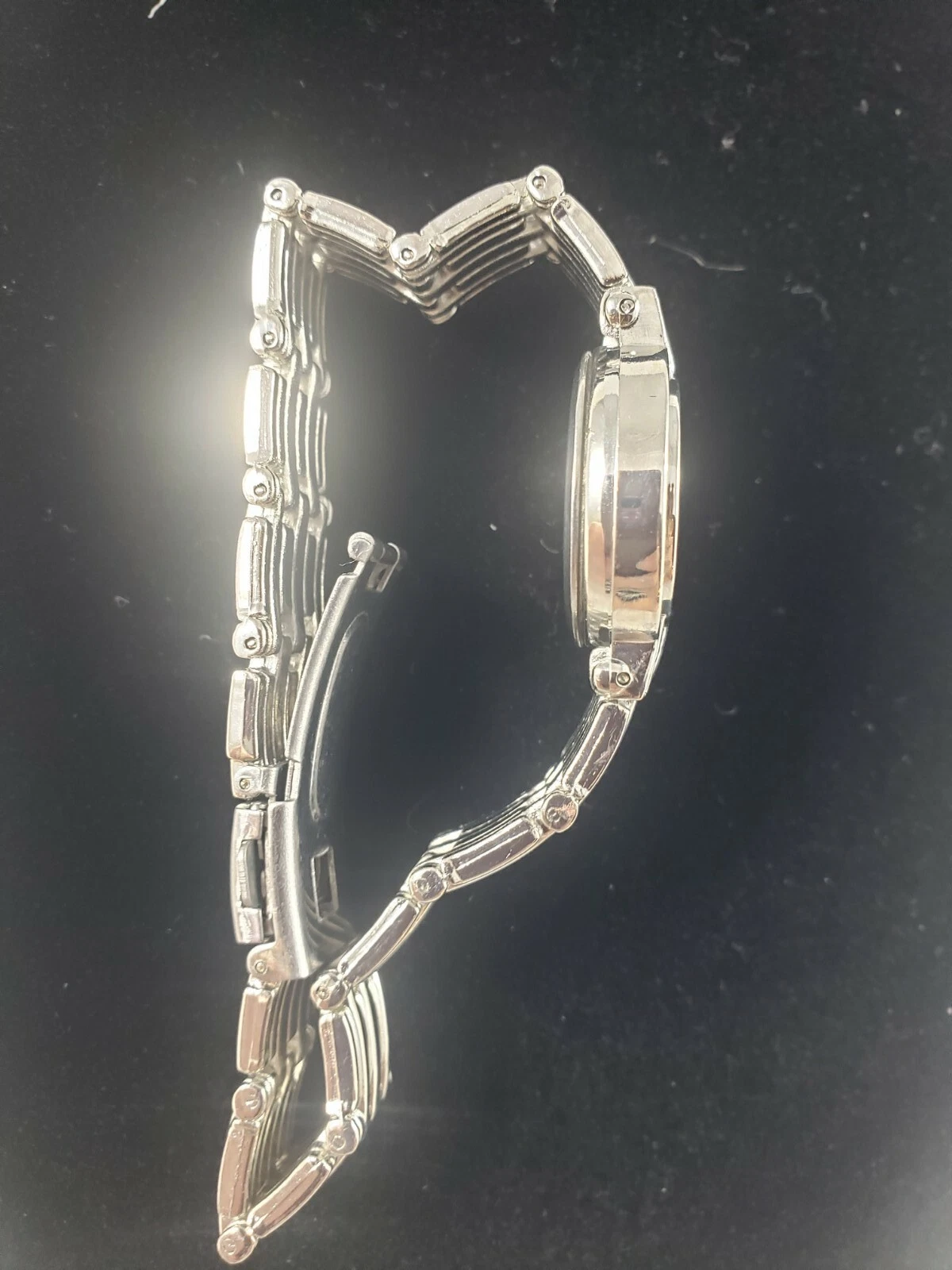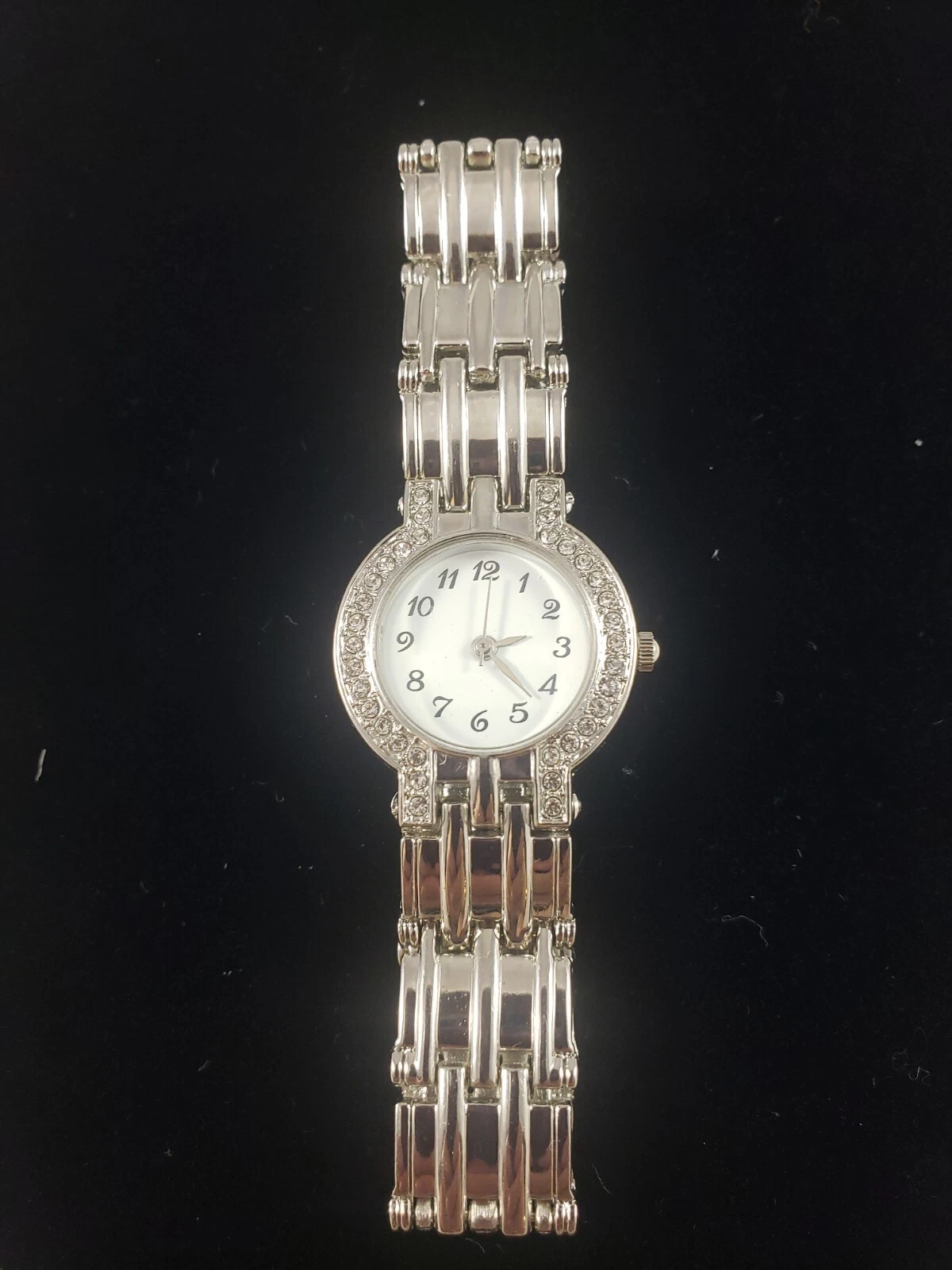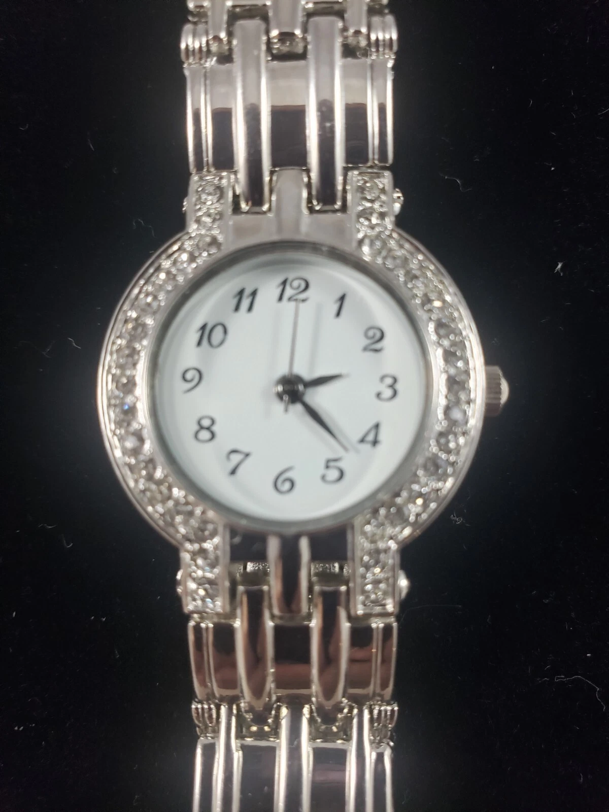 HABAND Rhinestone Bracelet Watch Womens Silver Tone BATTERY Not Tested