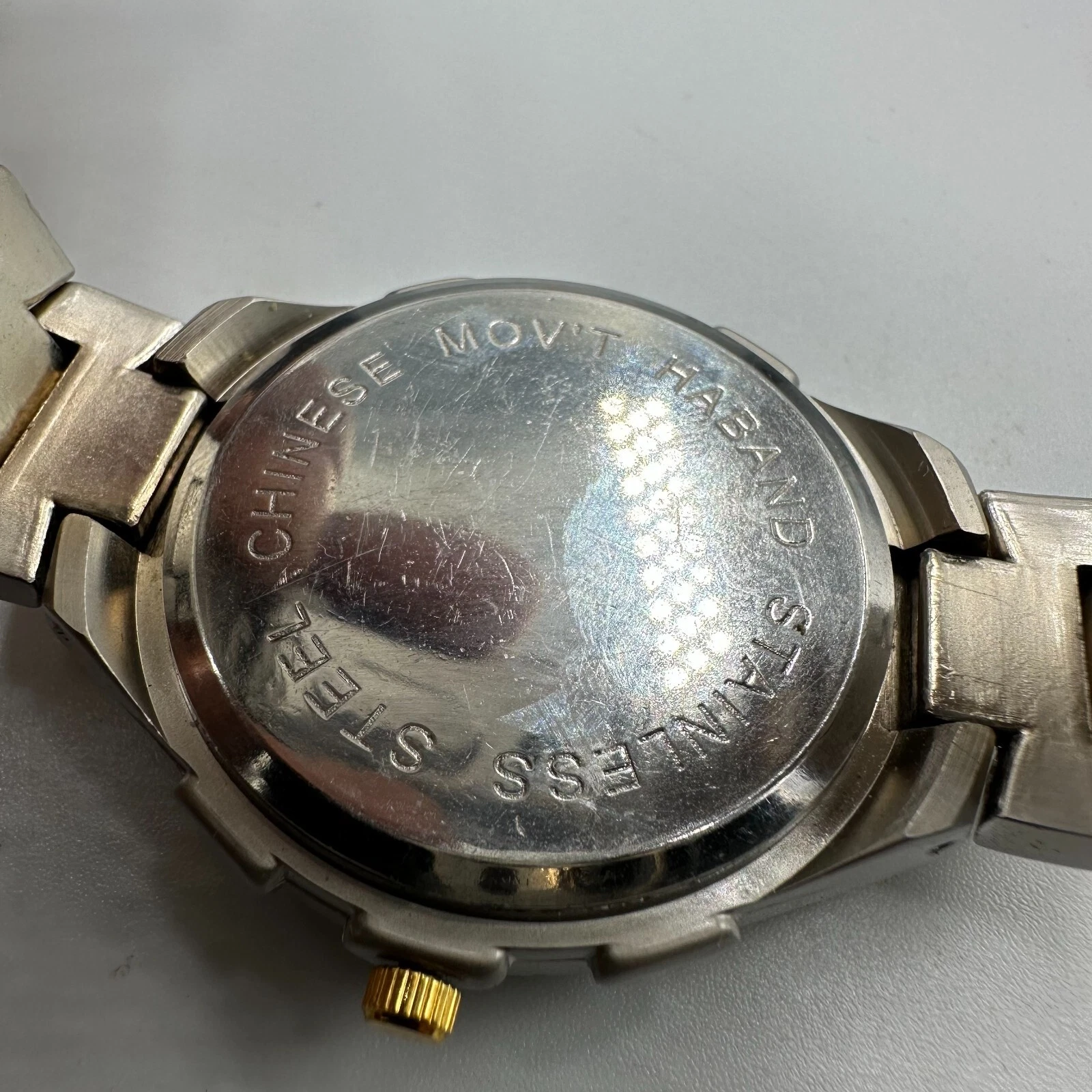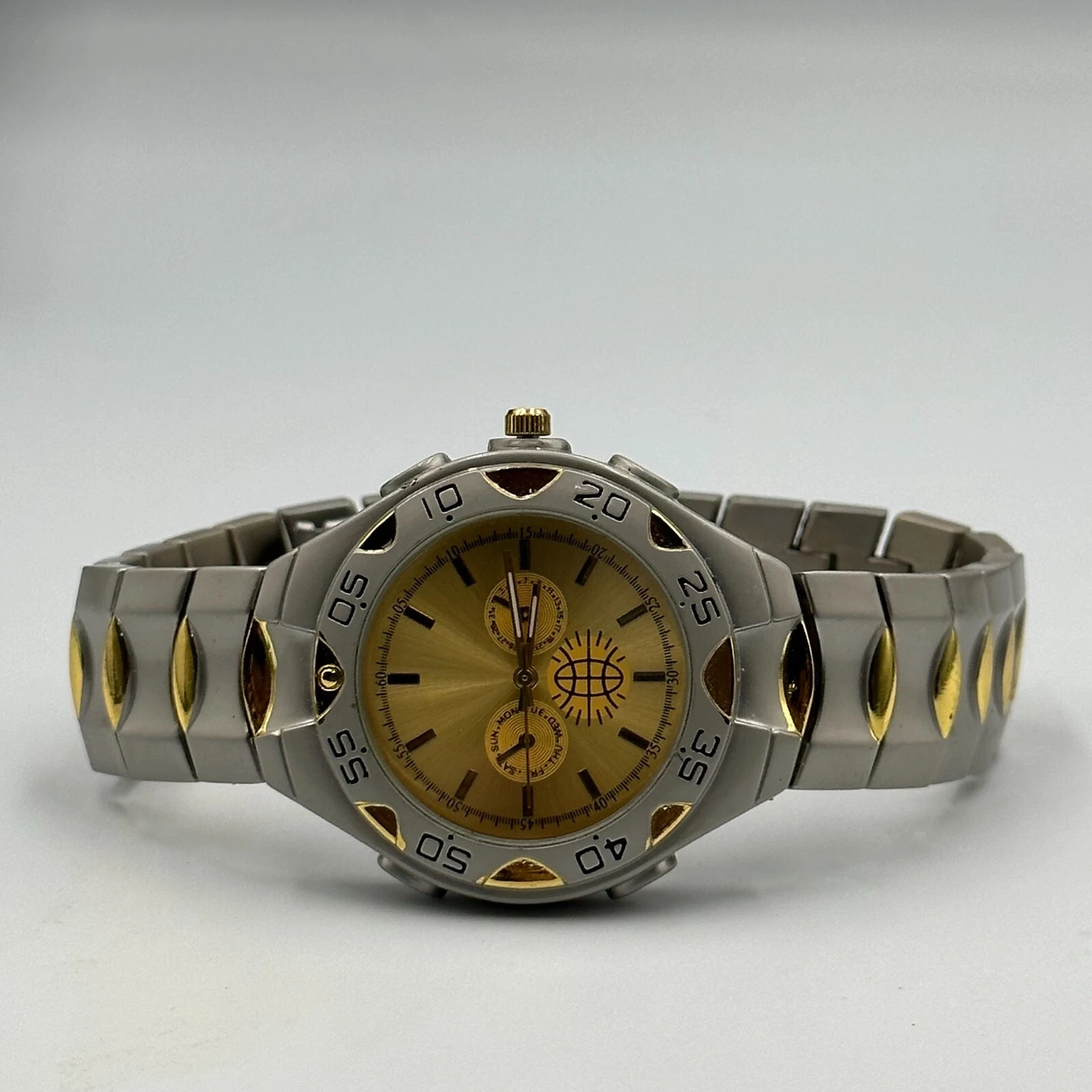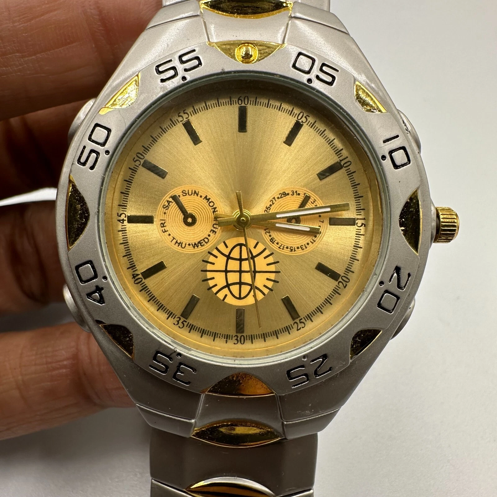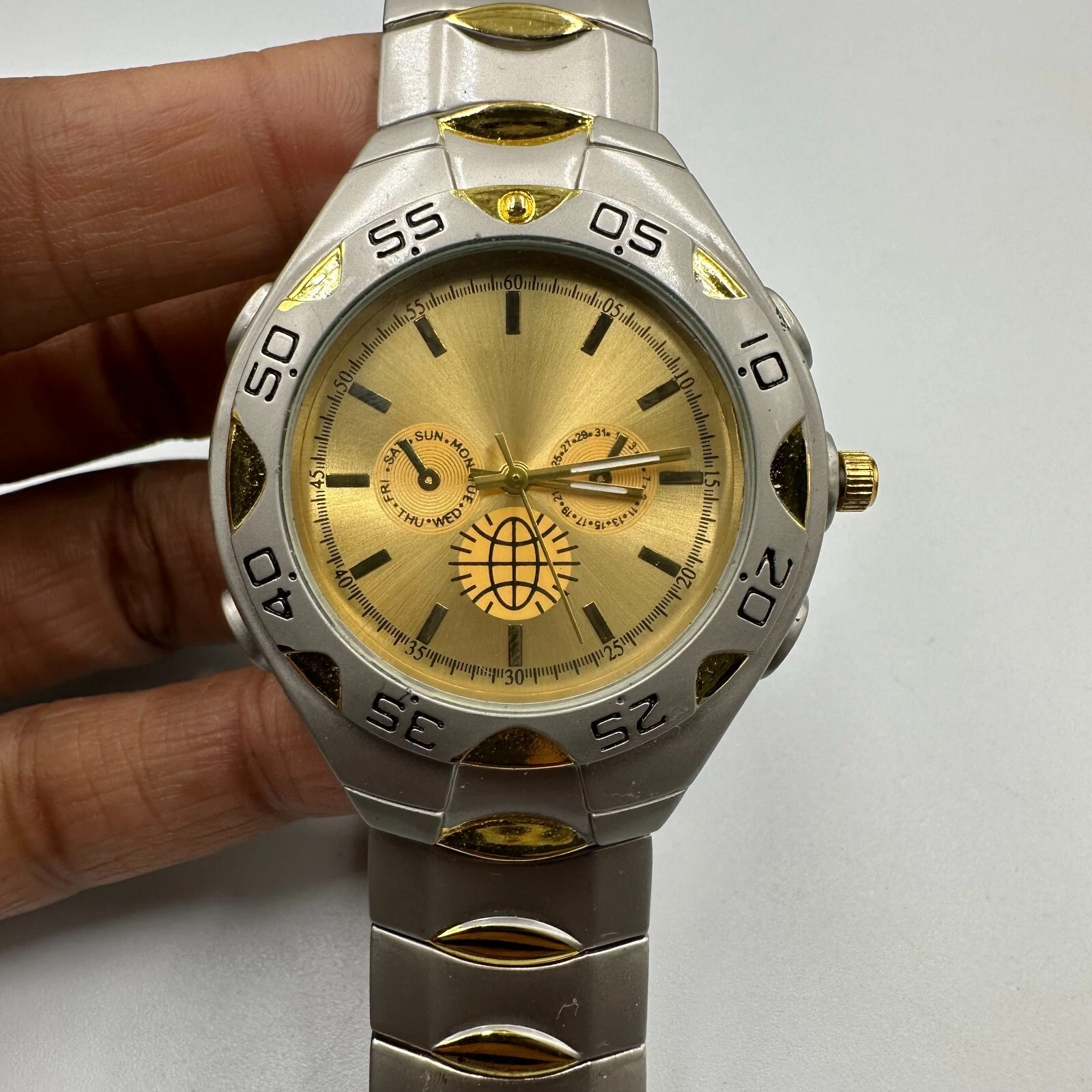Haband Watch Men Silver Gold Two Tone Round 39MM New Battery 8.5”