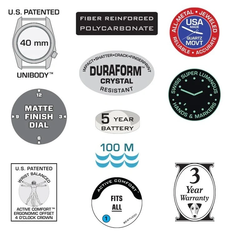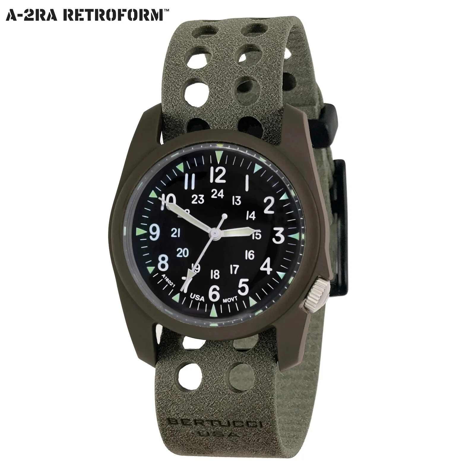 BERTUCCI A-2RA Retroform Watch #11606 Black Dial - Foliage Tridura Vtech Band