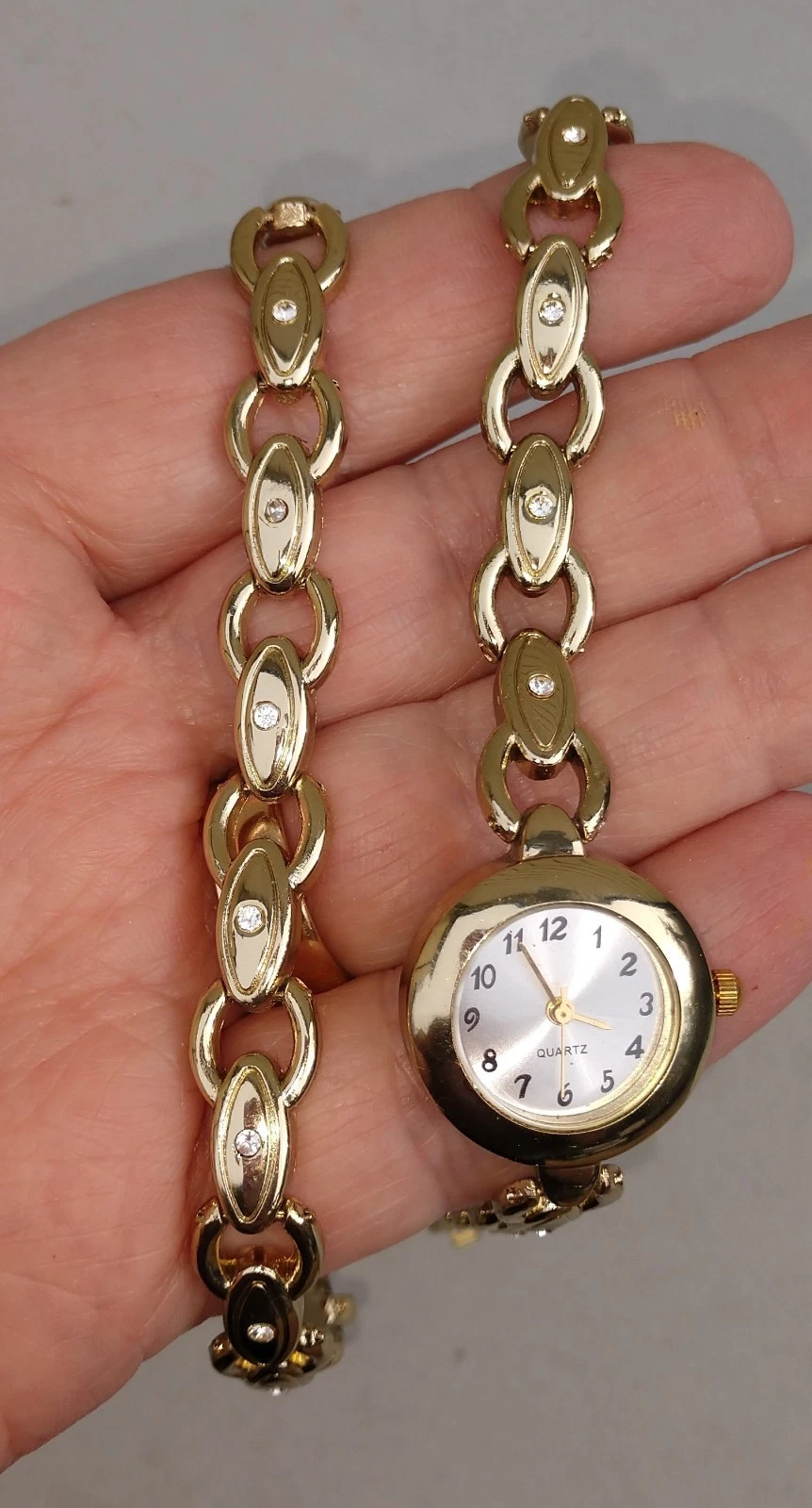 HABAND WOMENS GOLDTONE Chain LInk Crystal Accented Watch & Bracelet 2 PC SET
