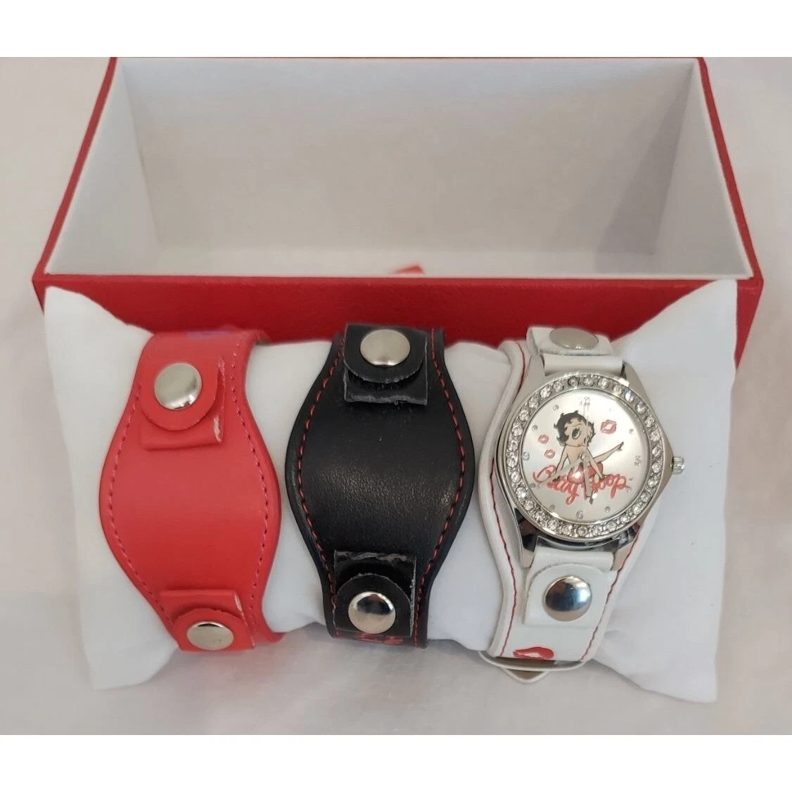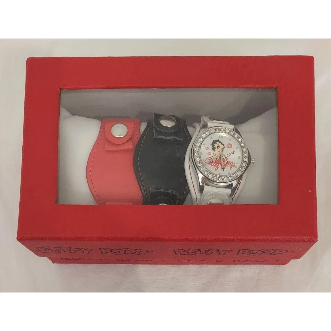 Vinatge Betty Boop Watch W/ Leather Band Set of 3 - Red, White And Black