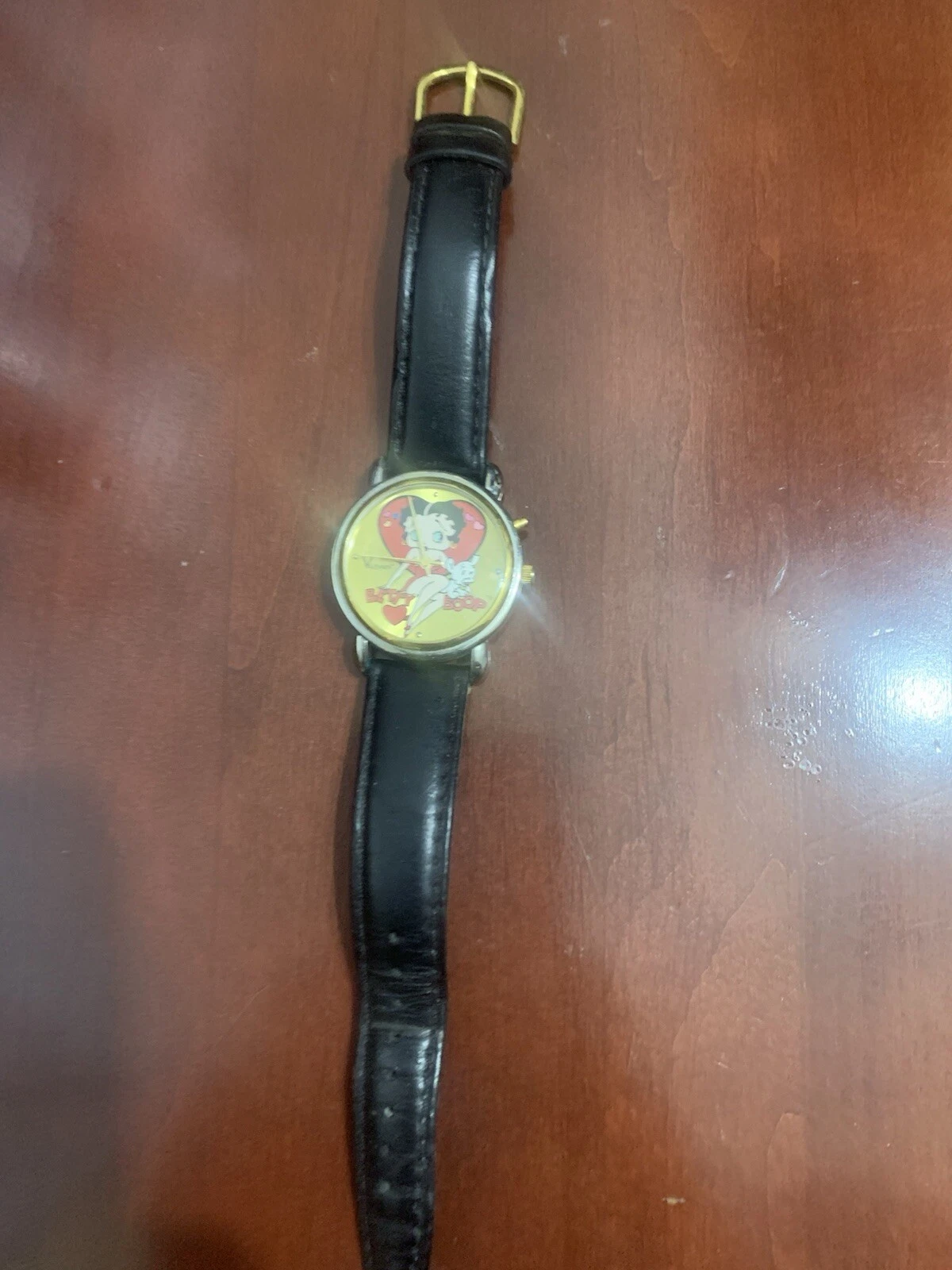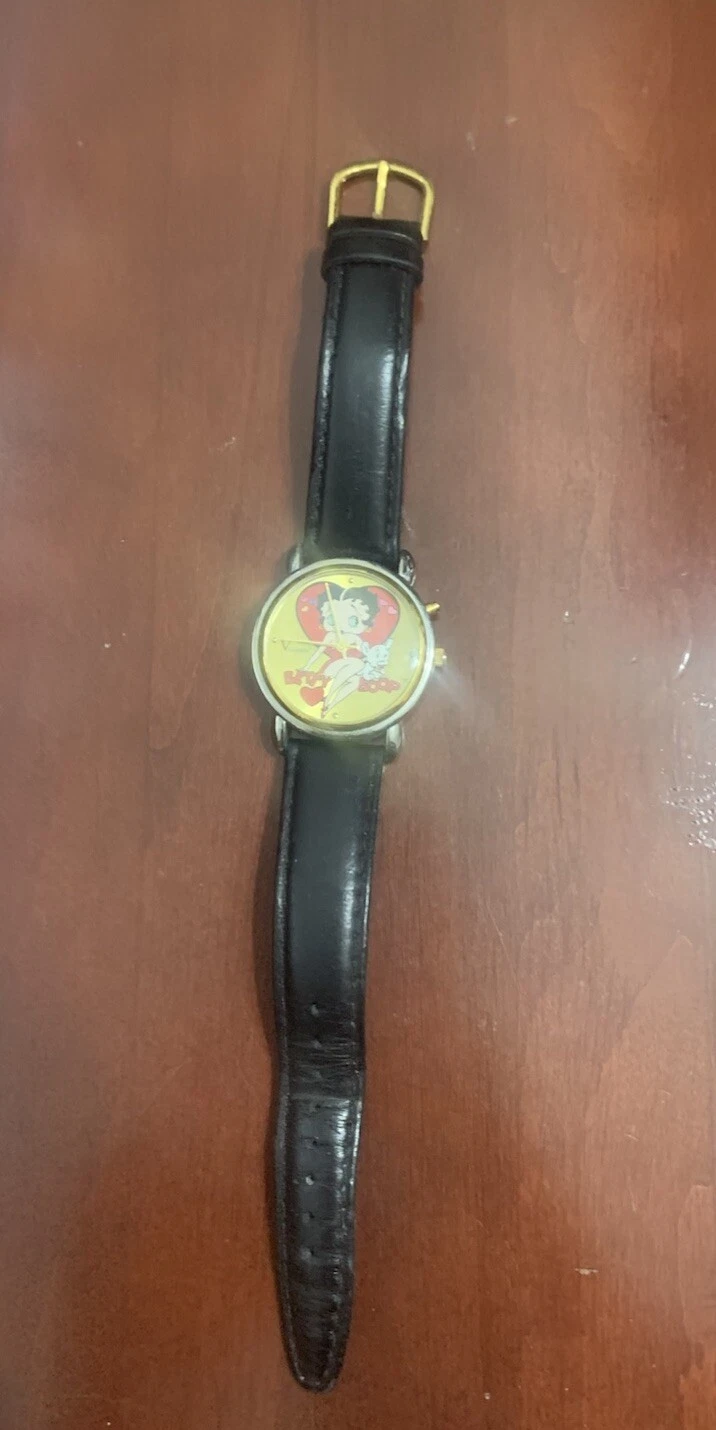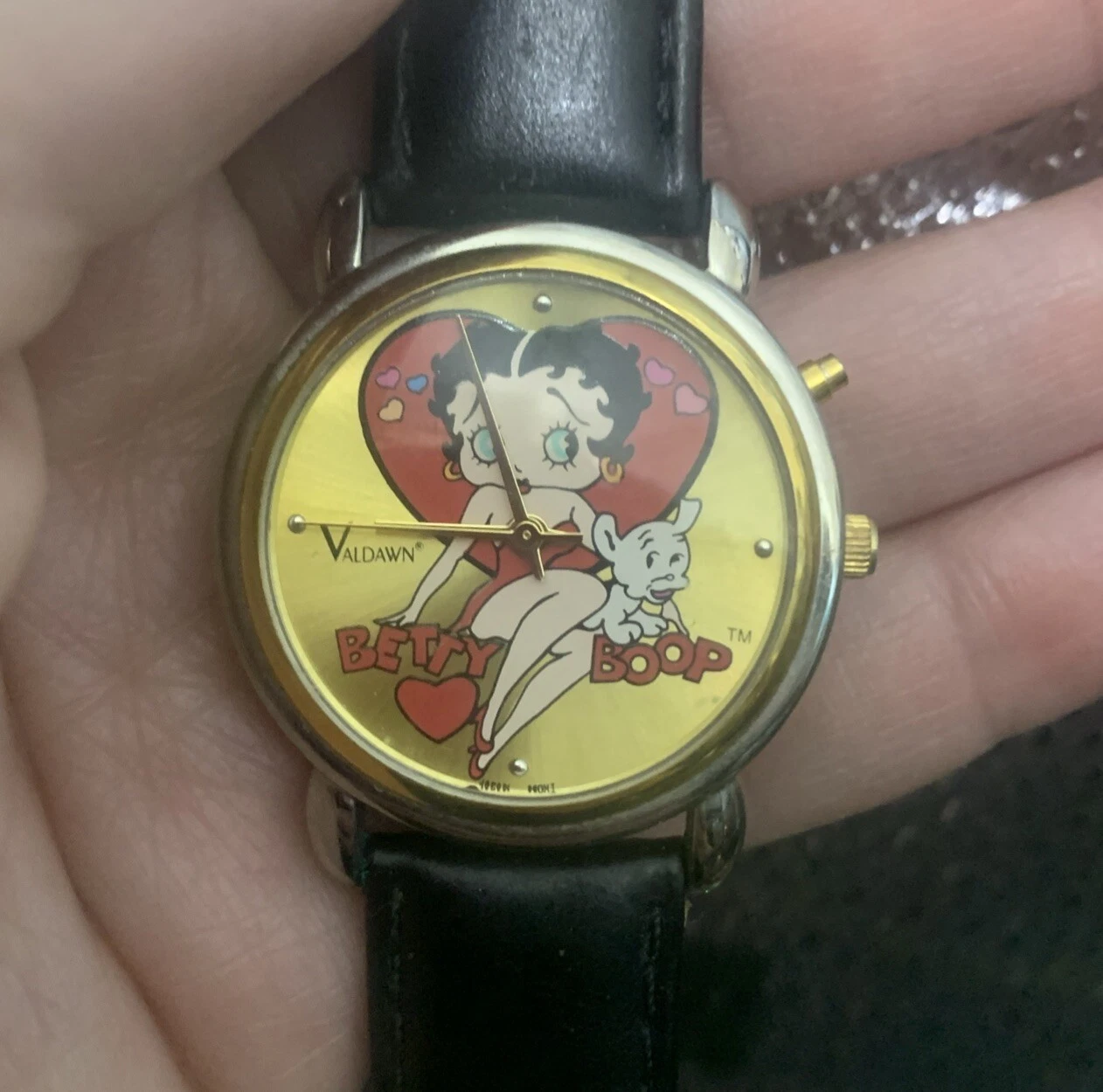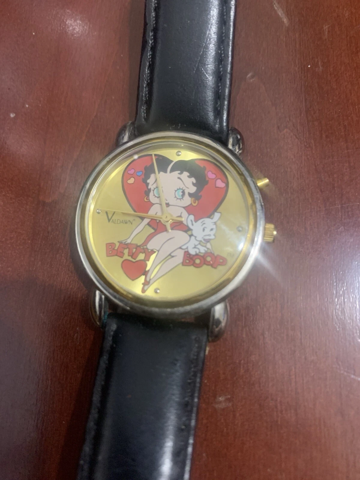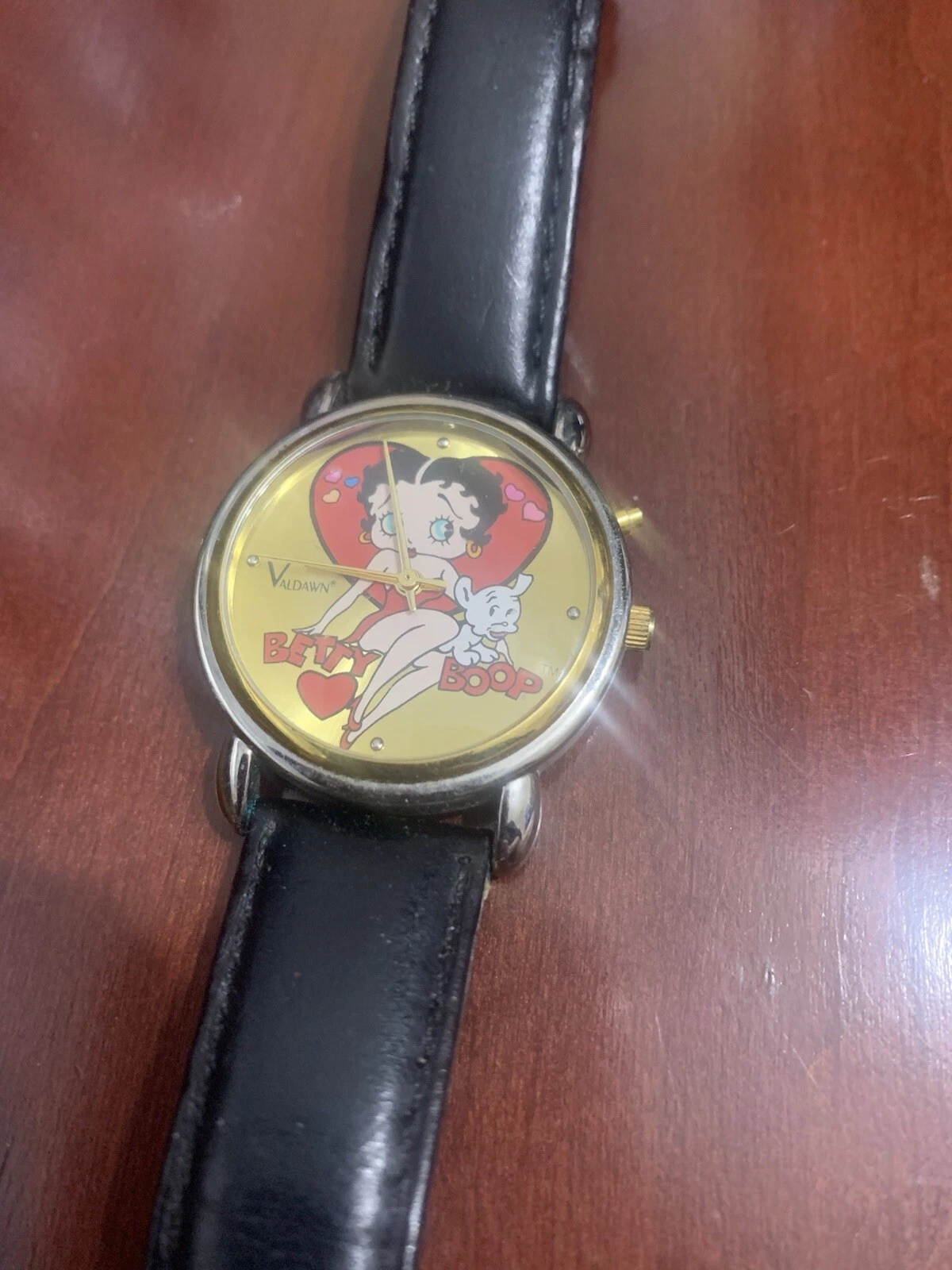 Vintage Valdawn Betty Boop Quartz Watch  Gold & Silver Tone Leather Musical