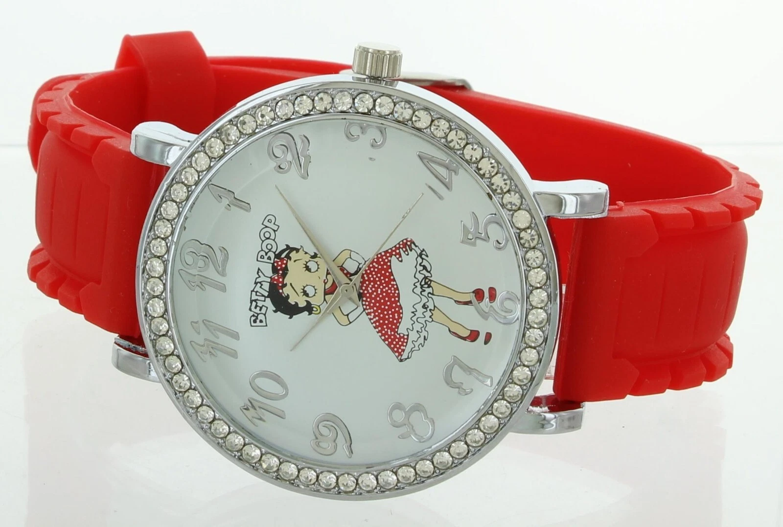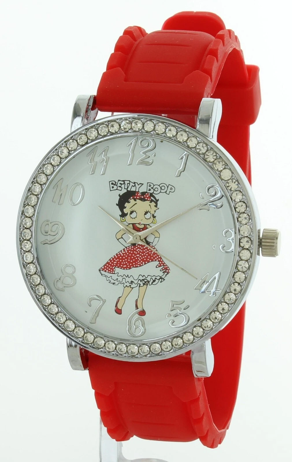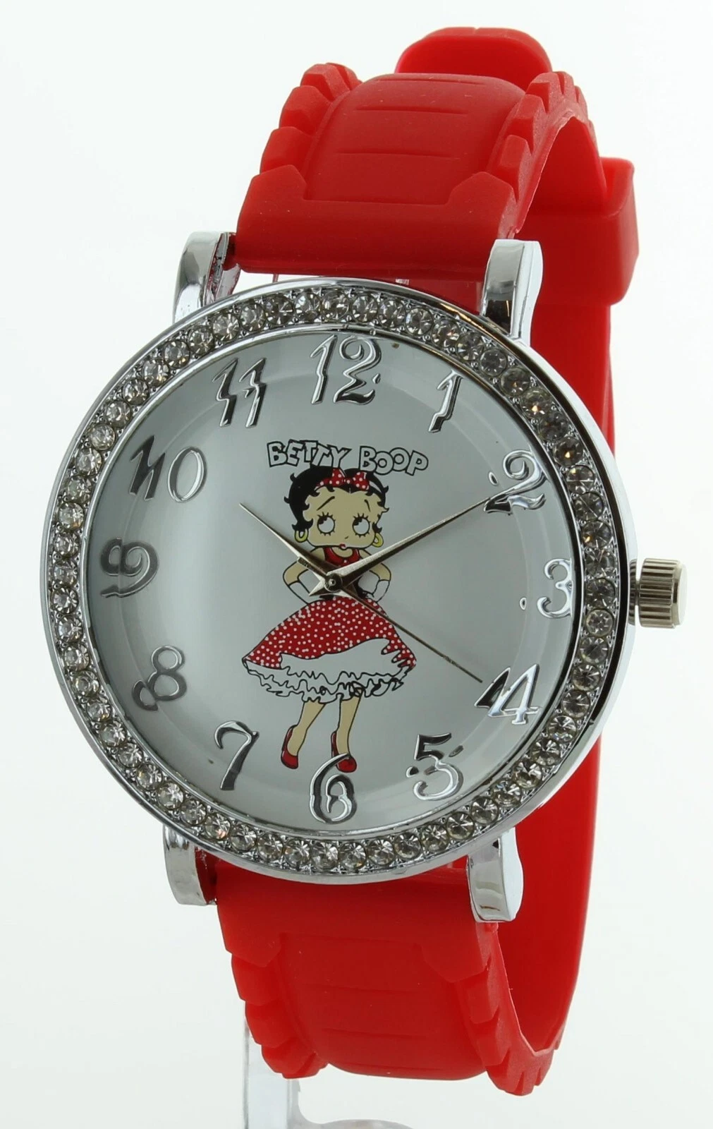 Ladies Betty Boop Watch RED Silicon Band Stone Bazel Easy to Read BBSSIL36